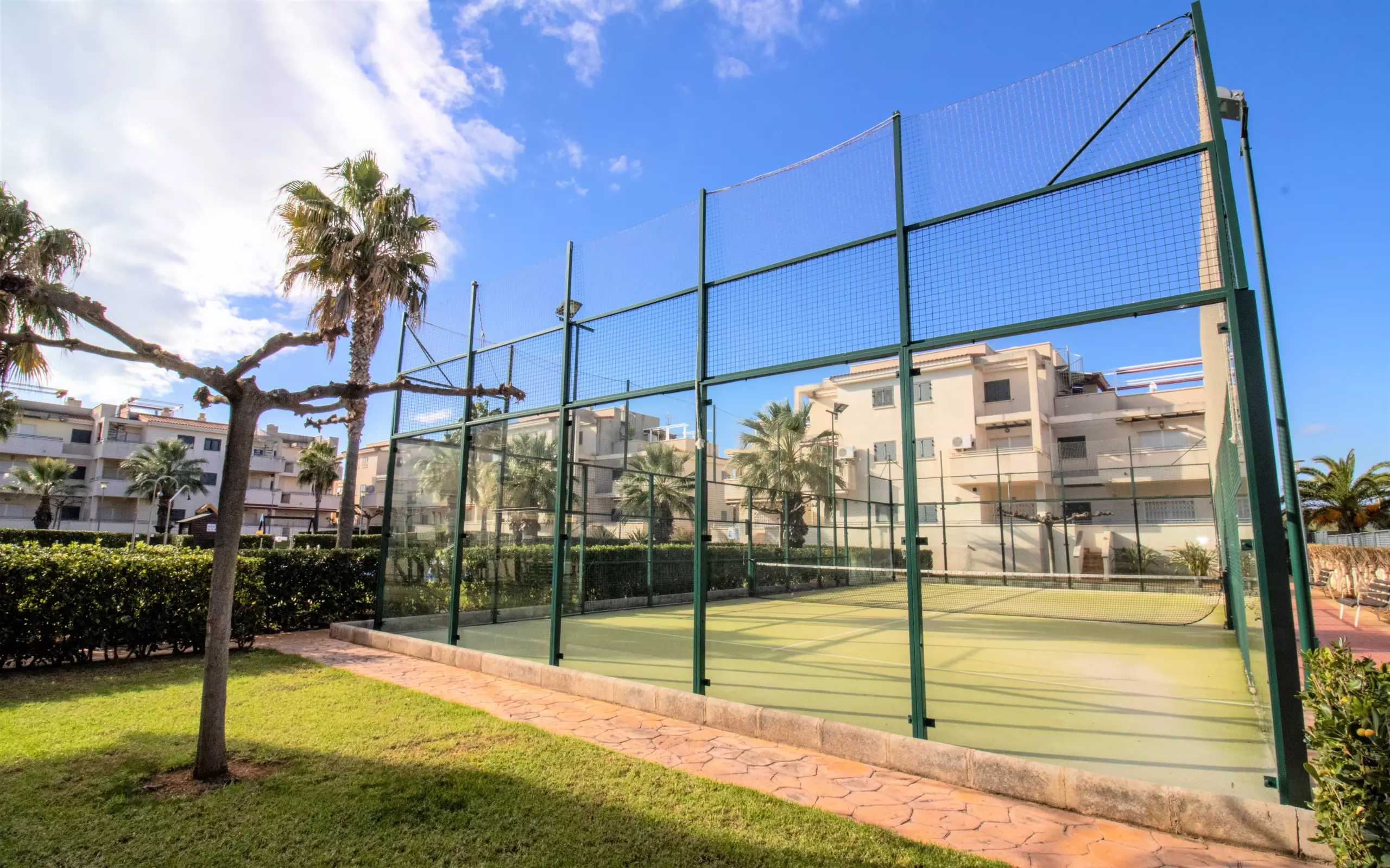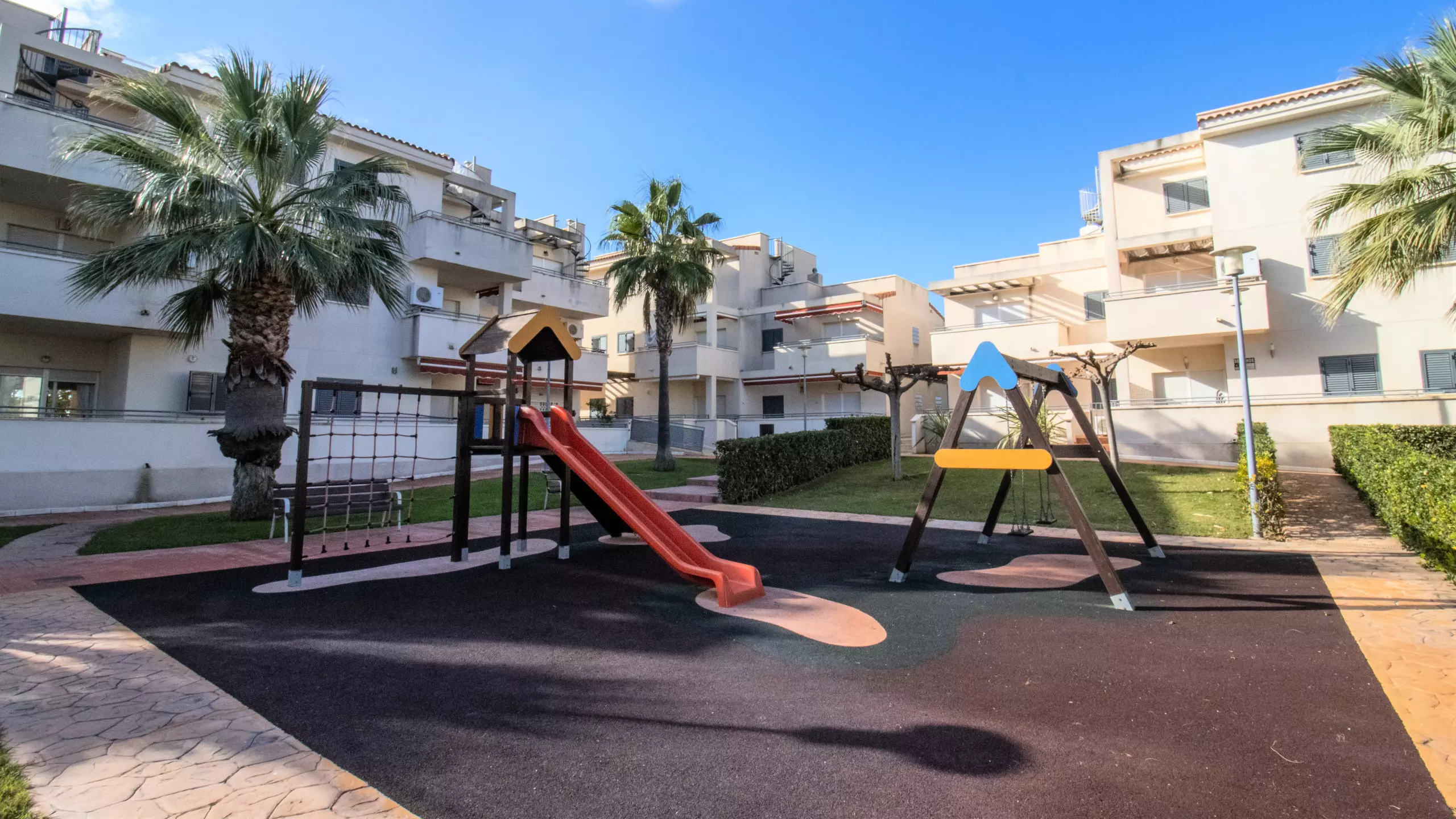It has elevator, garden, garden furniture, terrace, washing machine, internet access (wifi), heat pump heating, air conditioning in the living room and some bedrooms, communal swimming pool + children's pool, garage in the same building, TV, satellite TV (Languages: Spanish).