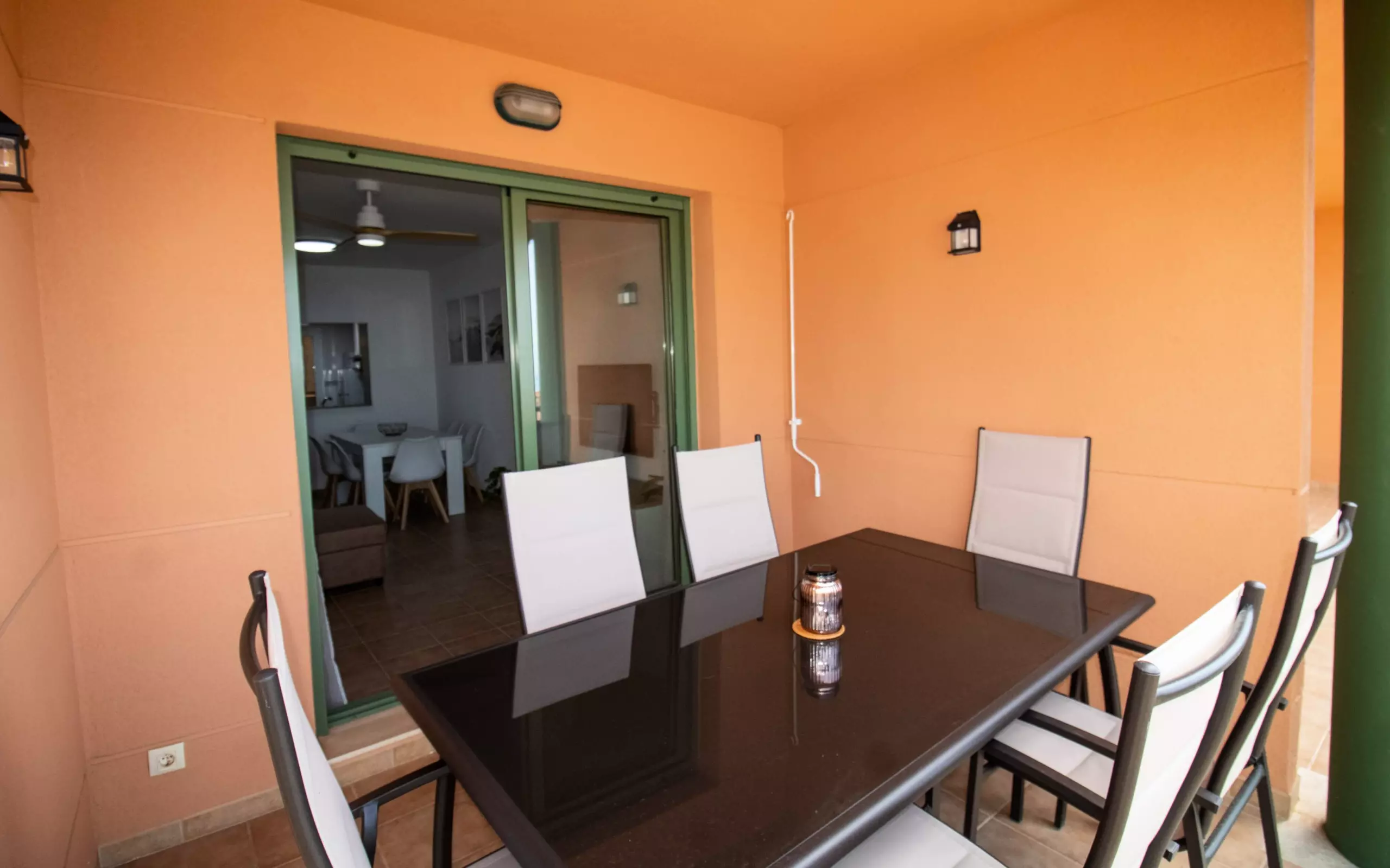 It has an elevator, terrace, air conditioning throughout, communal swimming pool + children's pool, outdoor parking in the same building, 1 TV.