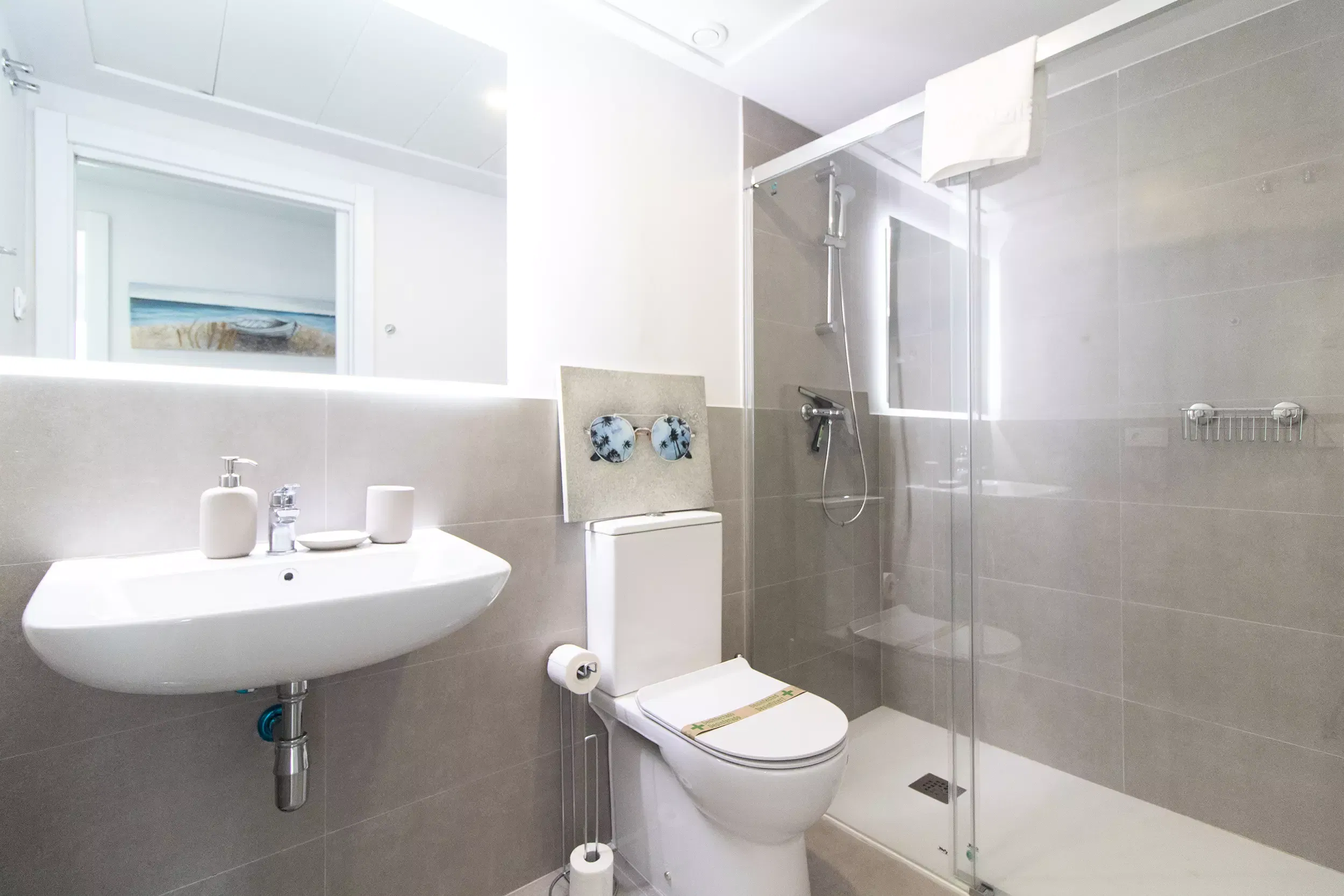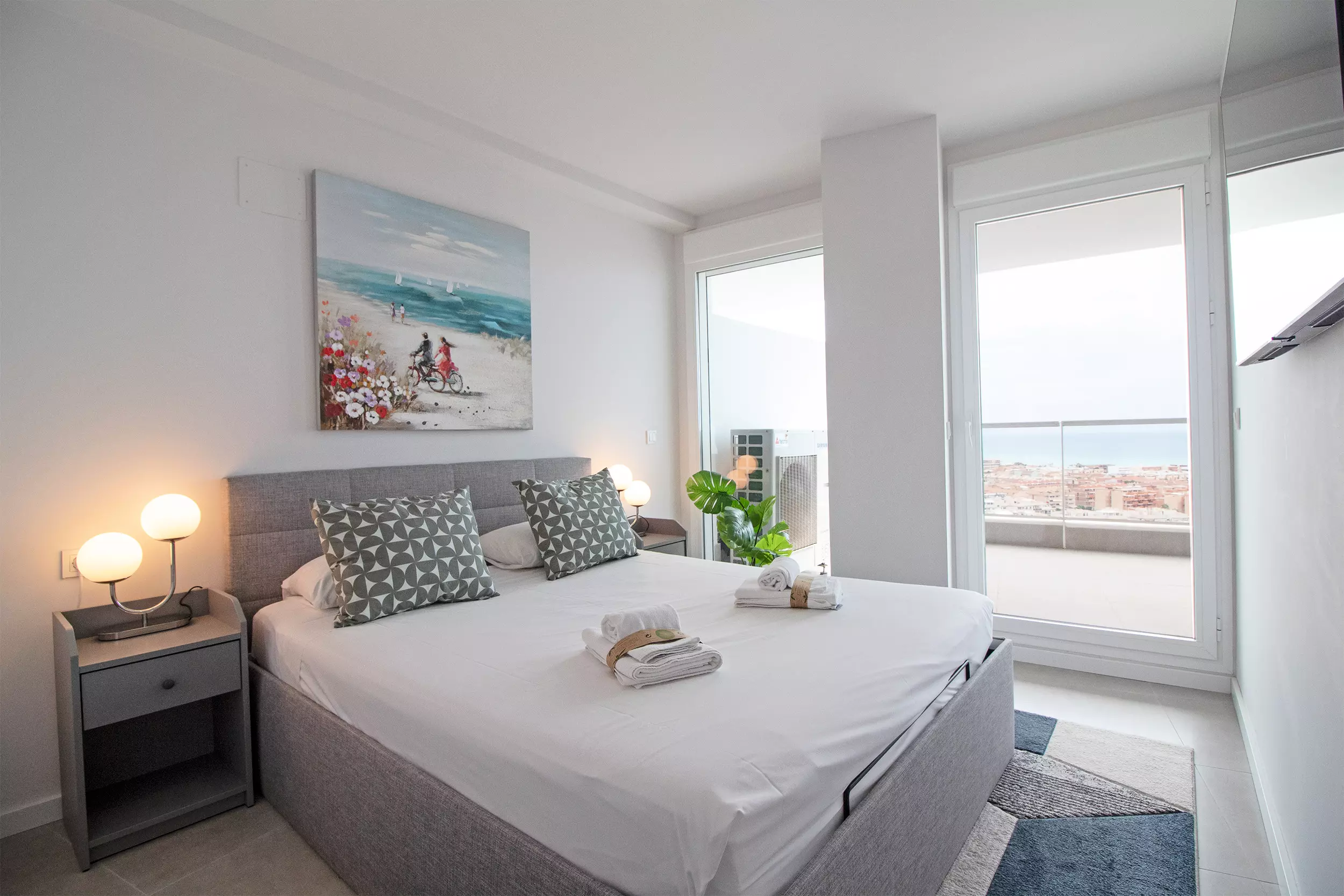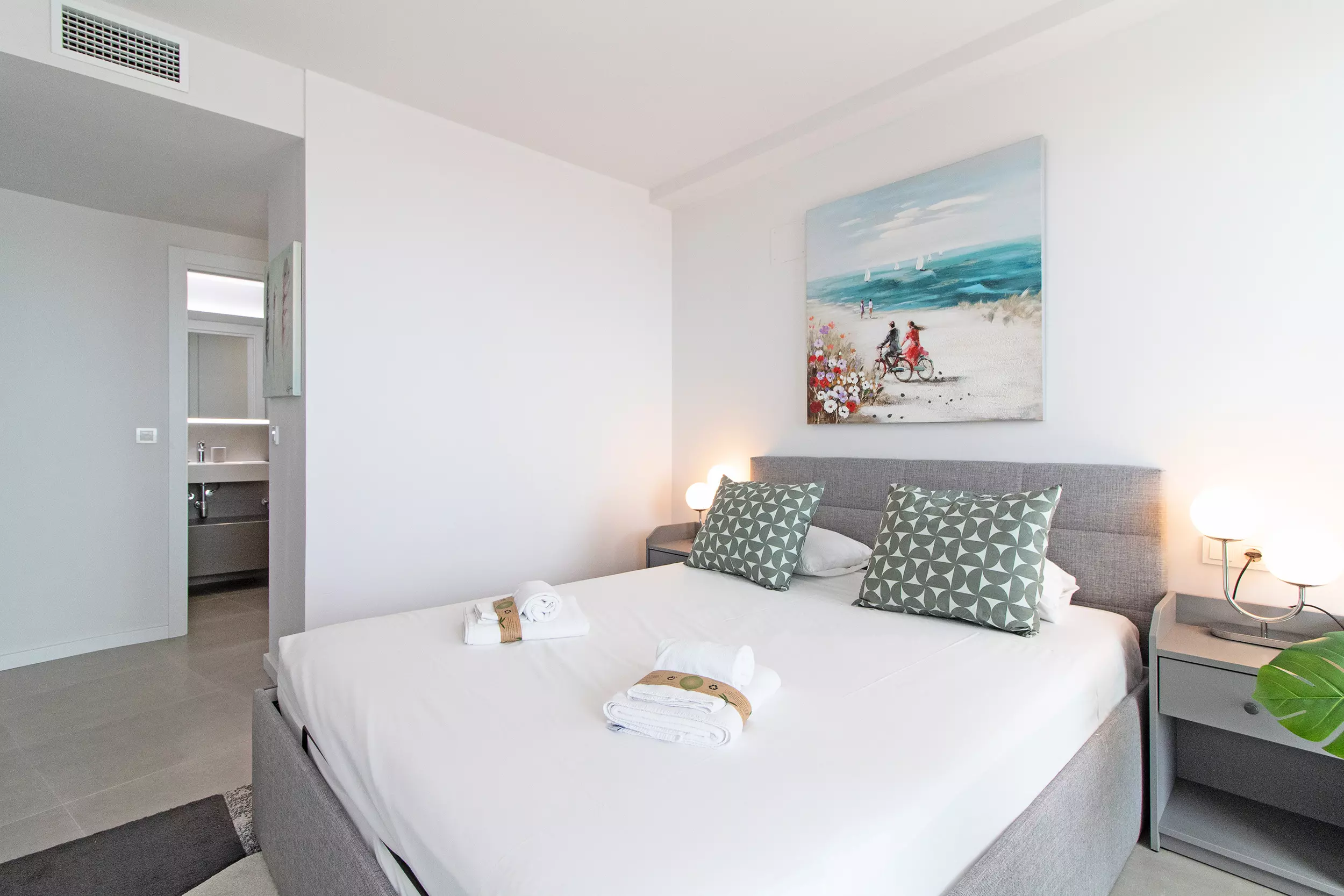 Want to know more about this property? It's located in the Residencial Gran Canet, with over 7,600 m² of common areas and 800 m² of swimming pools. It features landscaped areas, a large pool with beach access (supervised by a lifeguard) and a solarium area, a children's pool and a park for younger guests, a gym, a spa with a sauna, paddle courts, and sports areas. The property also has a private pool with sea views from its magnificent terrace.