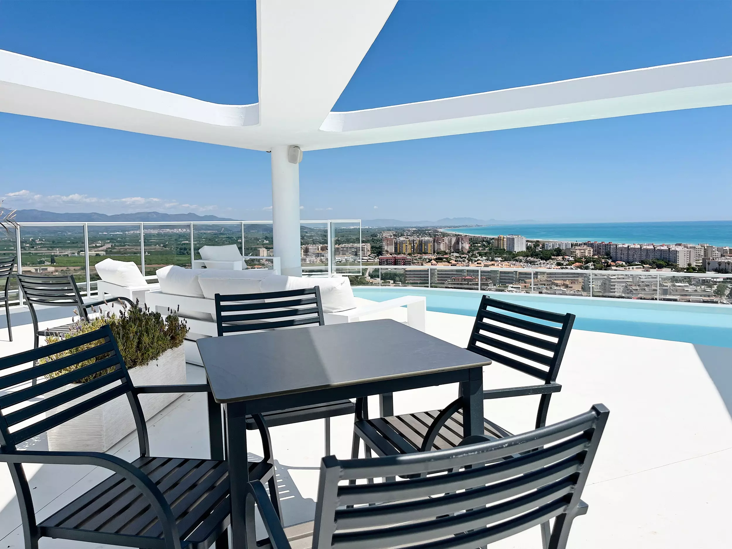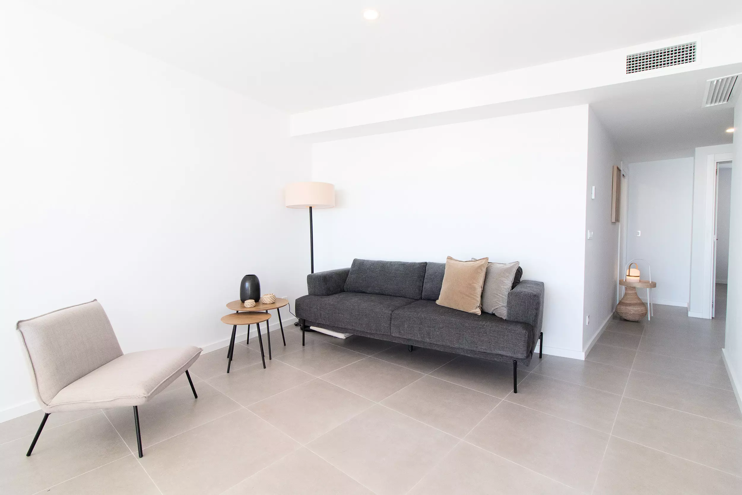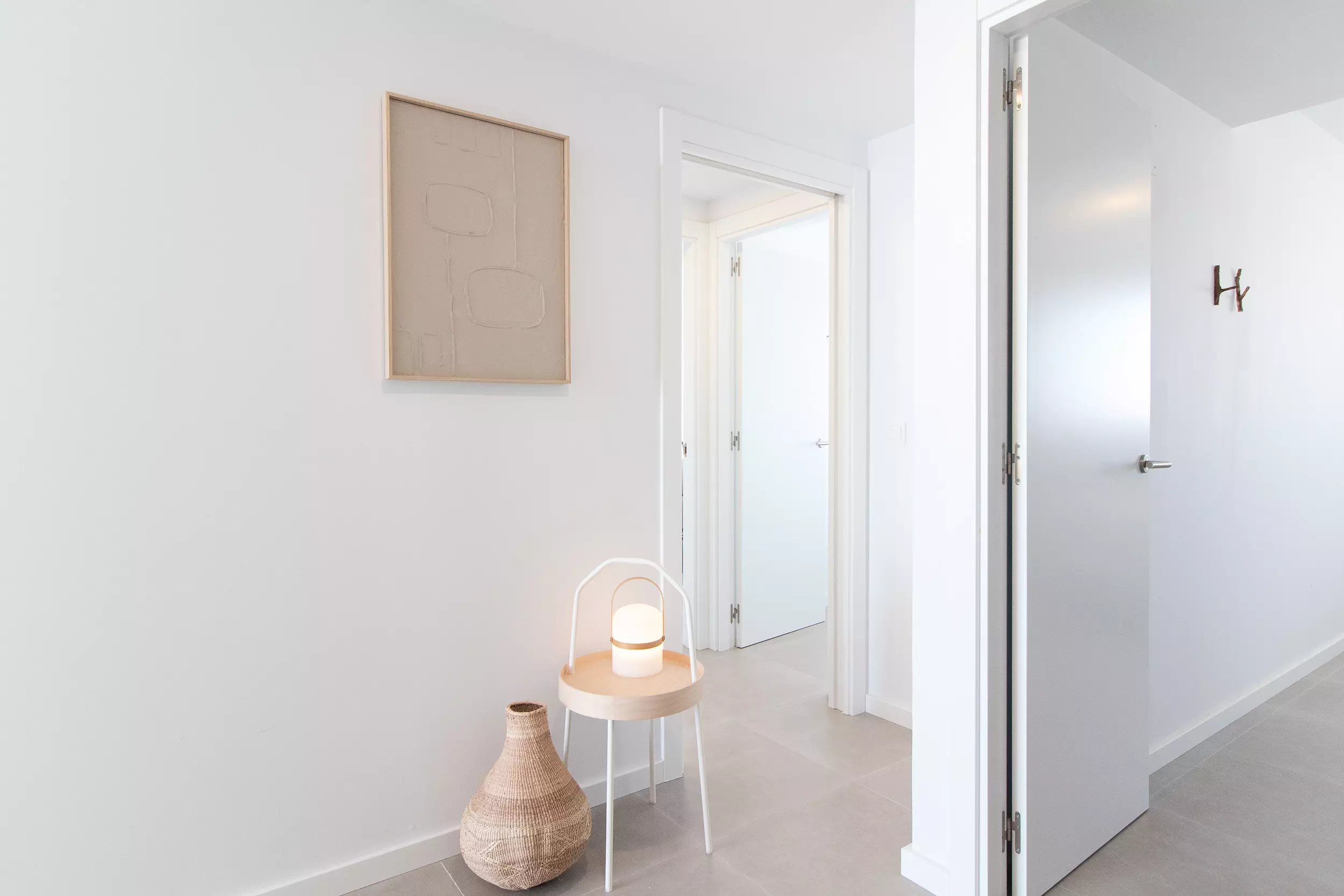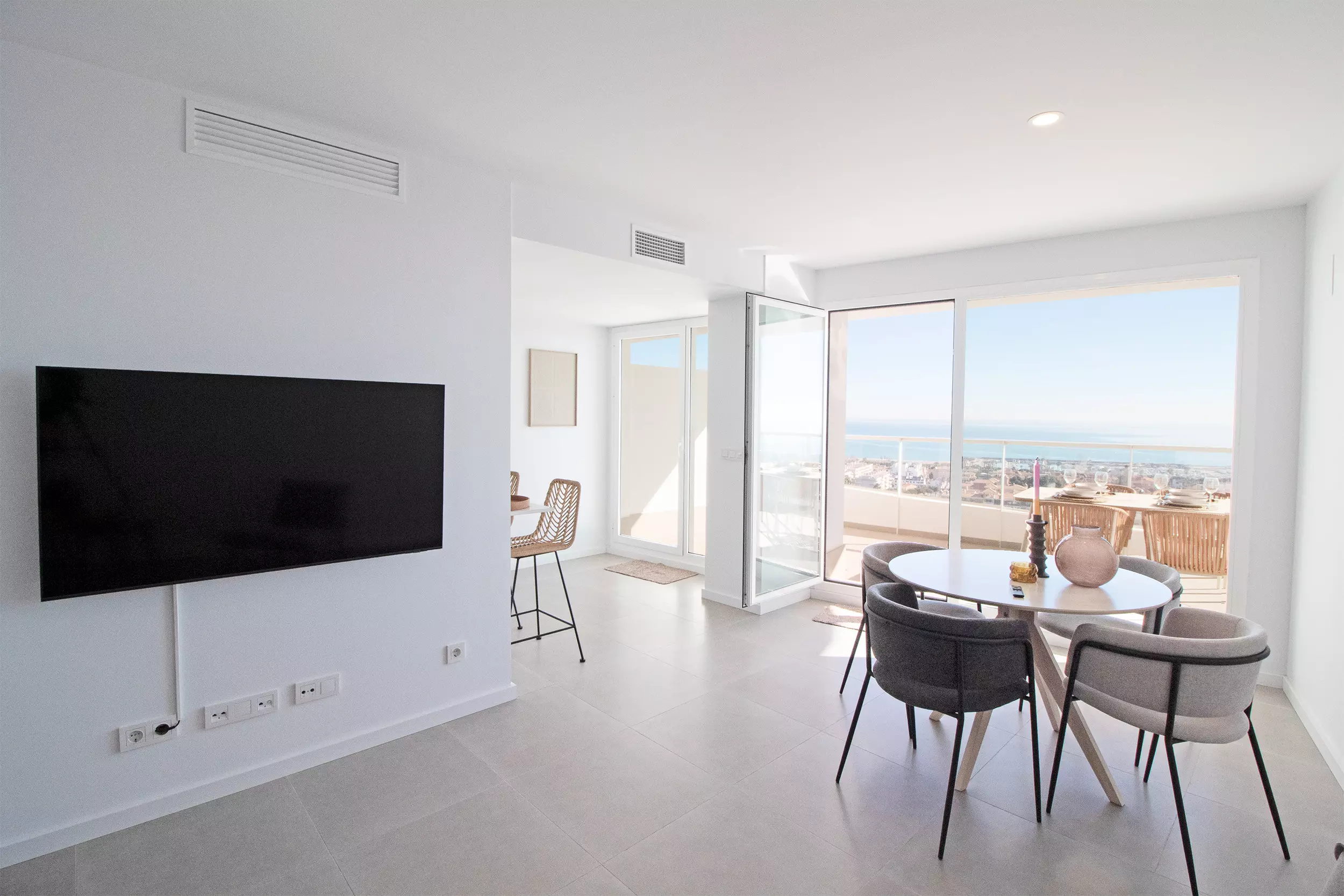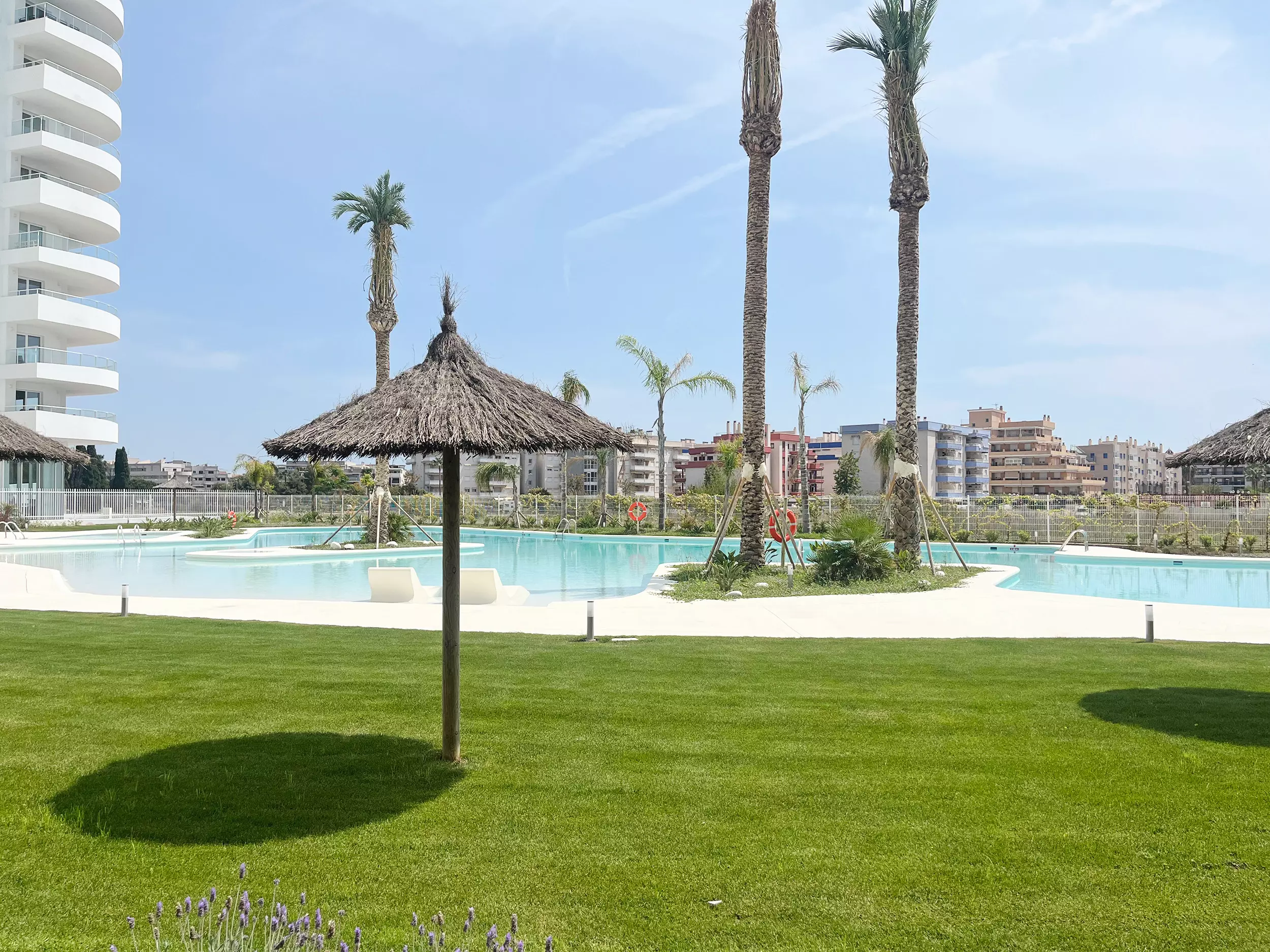 It has elevator, garden furniture, terrace, washing machine, iron, internet access (wifi), hair dryer, paddle court, gym, spa, electric heating, air conditioning in the living room, communal + children's swimming pool, covered parking in the same building, TV.