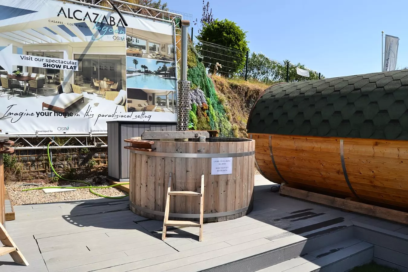 Alcazaba Lagoon Features: Accommodation in Casares / Estepona, with a private beach area, 2 on-site restaurants with excellent food and drinks, Gym, children's climbing wall, changing rooms, showers, 2 wooden hot tubs, surfboards, Kayak, Sauna, Gym and more.