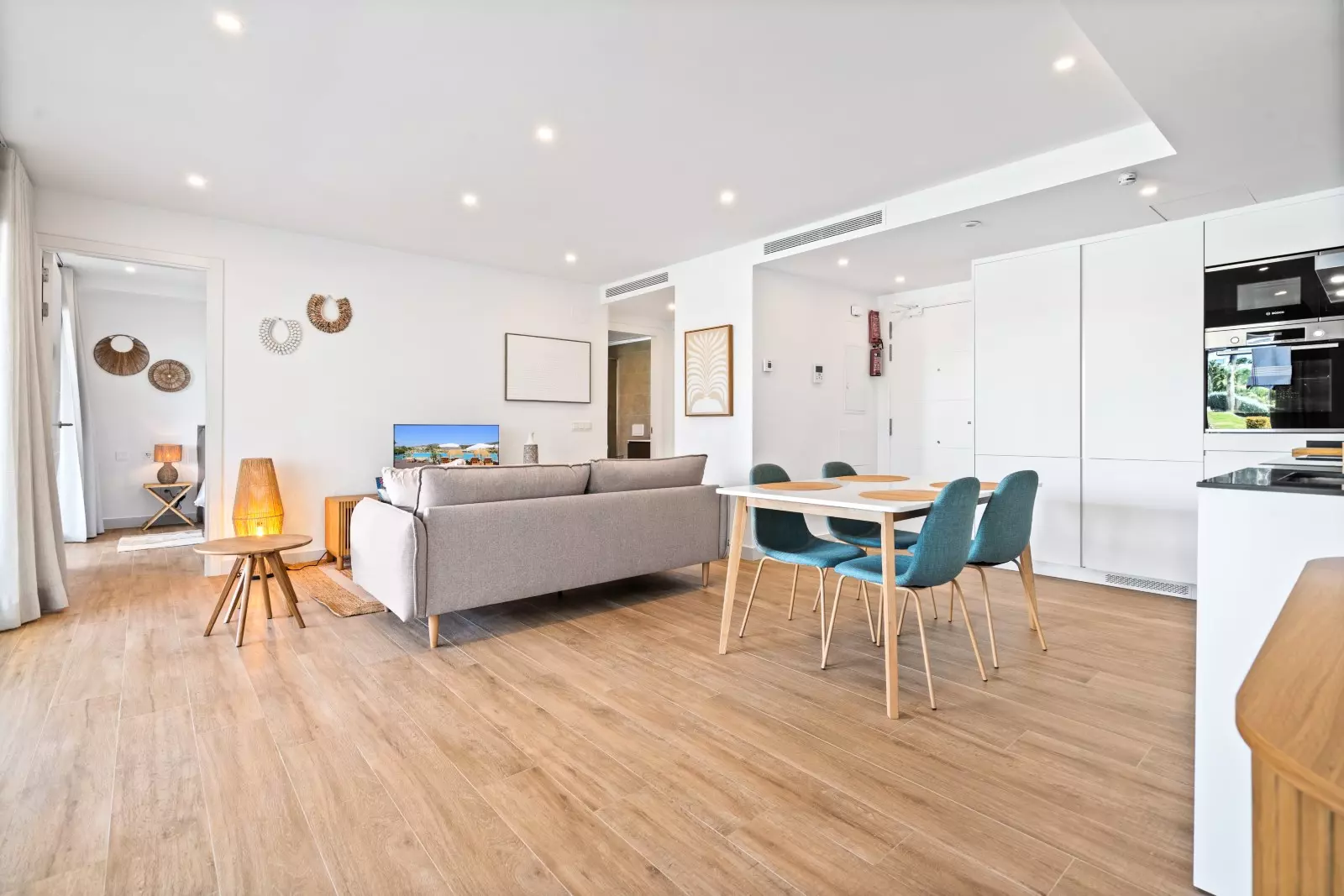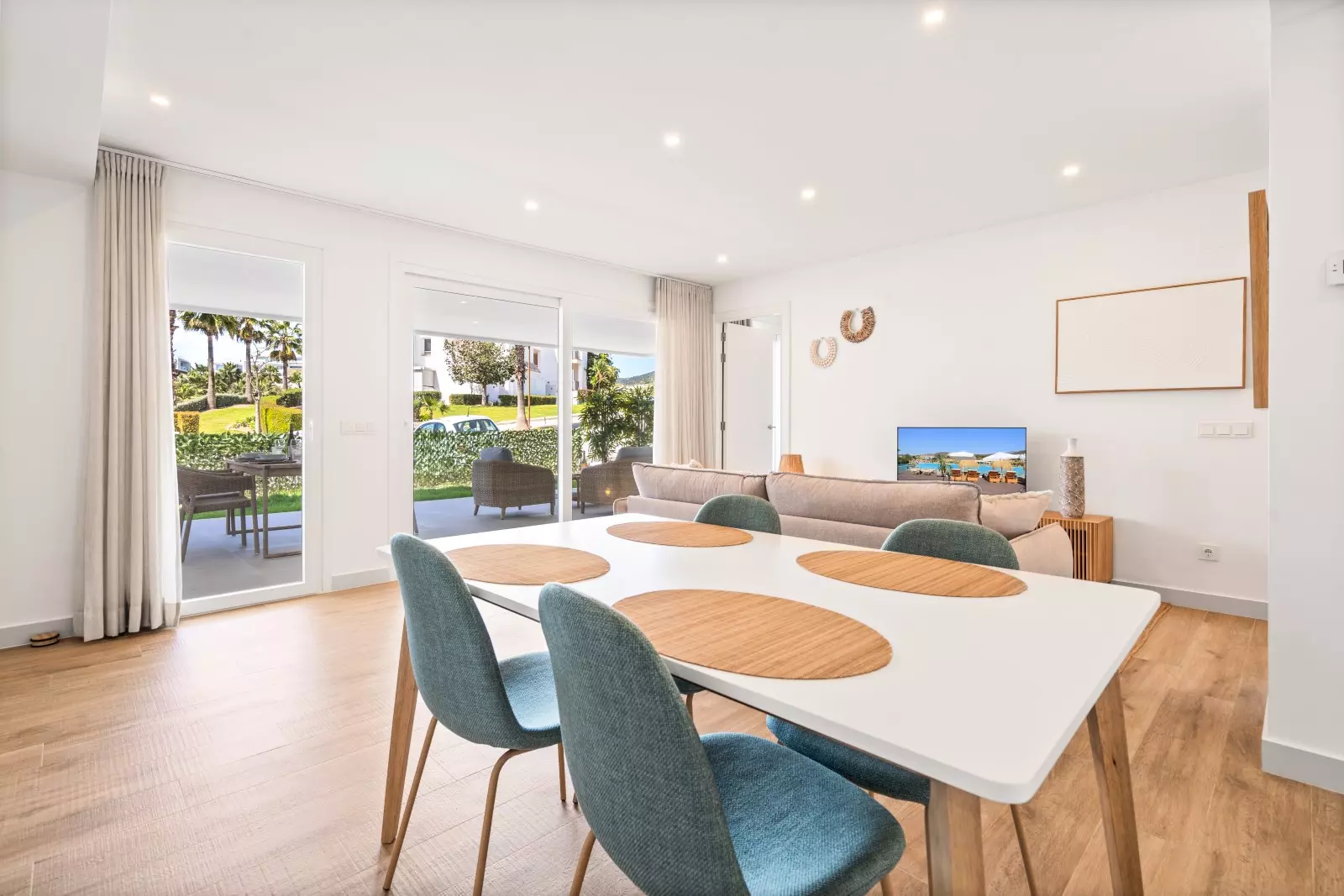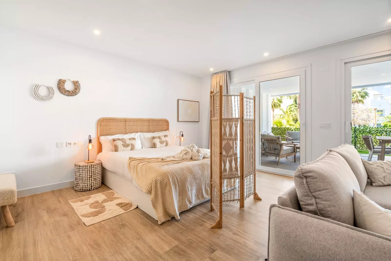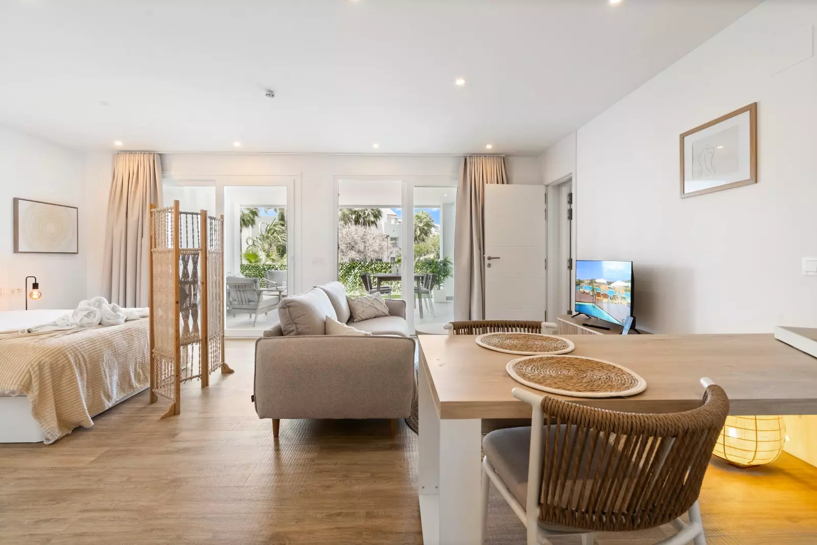 The apartment: 2 bedrooms and can accommodate 4 people. 2 bedrooms (2 x 1 bedroom with the possibility of separating the 2 bedrooms). It is fully equipped to relax and enjoy your stay: elevator, garden, garden furniture, terrace, iron, internet (Wi-Fi), children's area, air conditioning (hot/cold), shared swimming pool + children's pool, outdoor parking for 1 car in the same building, 1 SMART satellite TV (Languages: Spanish, English, German, Dutch, French, Swedish, Norwegian)