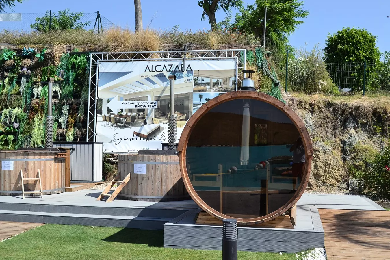 Alcazaba Lagoon Features: Accommodation in Casares / Estepona, with a private beach area, 2 on-site restaurants with excellent food and drinks, Gym, children's climbing wall, changing rooms, showers, 2 wooden hot tubs, surfboards, Kayak, Sauna, Gym and more.