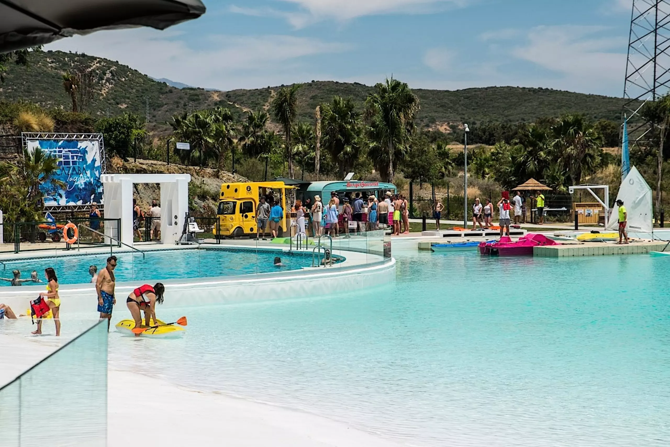 Alcazaba Lagoon Features: Accommodation in Casares / Estepona, with a private beach area, 2 on-site restaurants with excellent food and drinks, Gym, children's climbing wall, changing rooms, showers, 2 wooden hot tubs, surfboards, Kayak, Sauna, Gym and more.