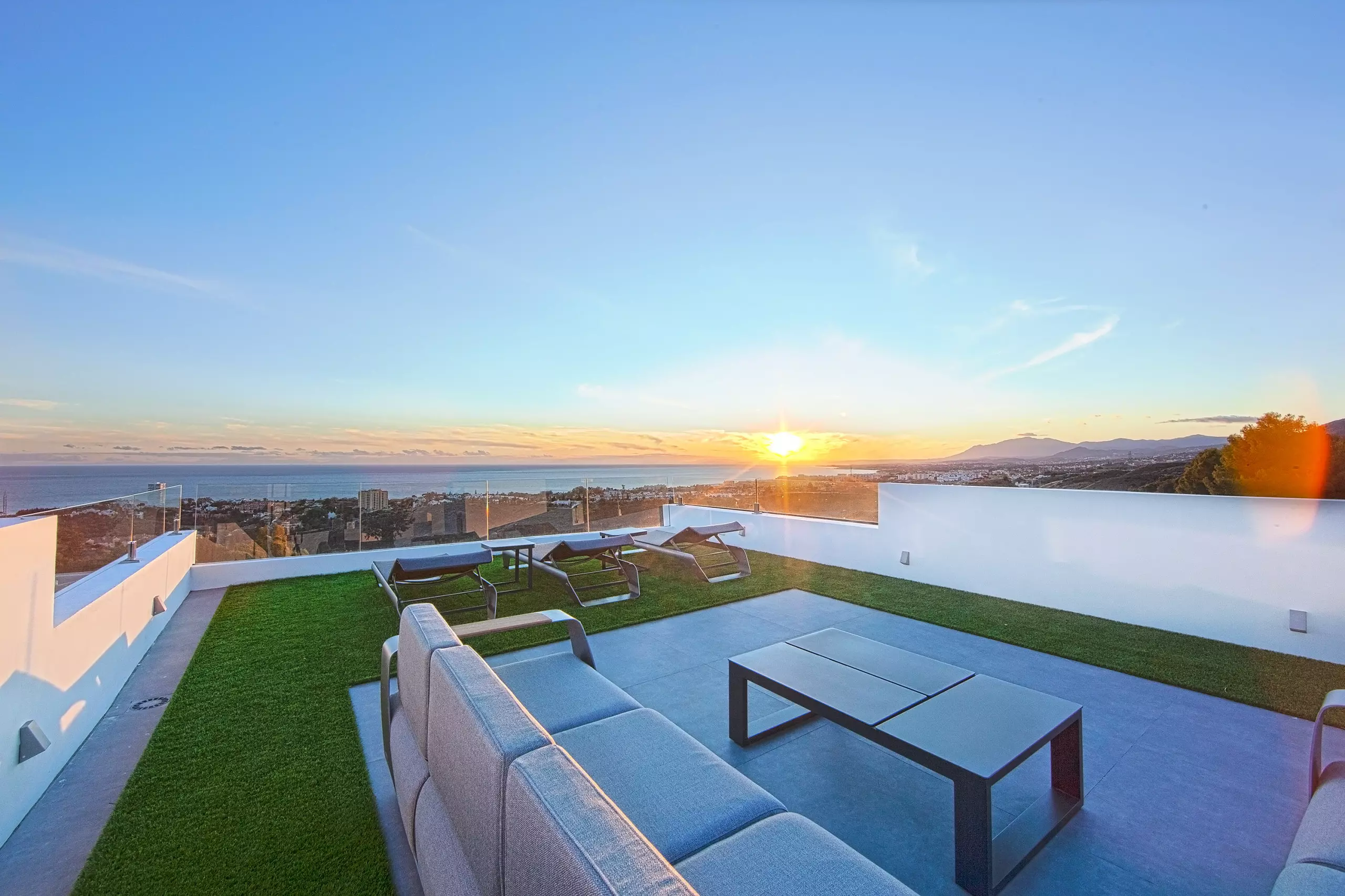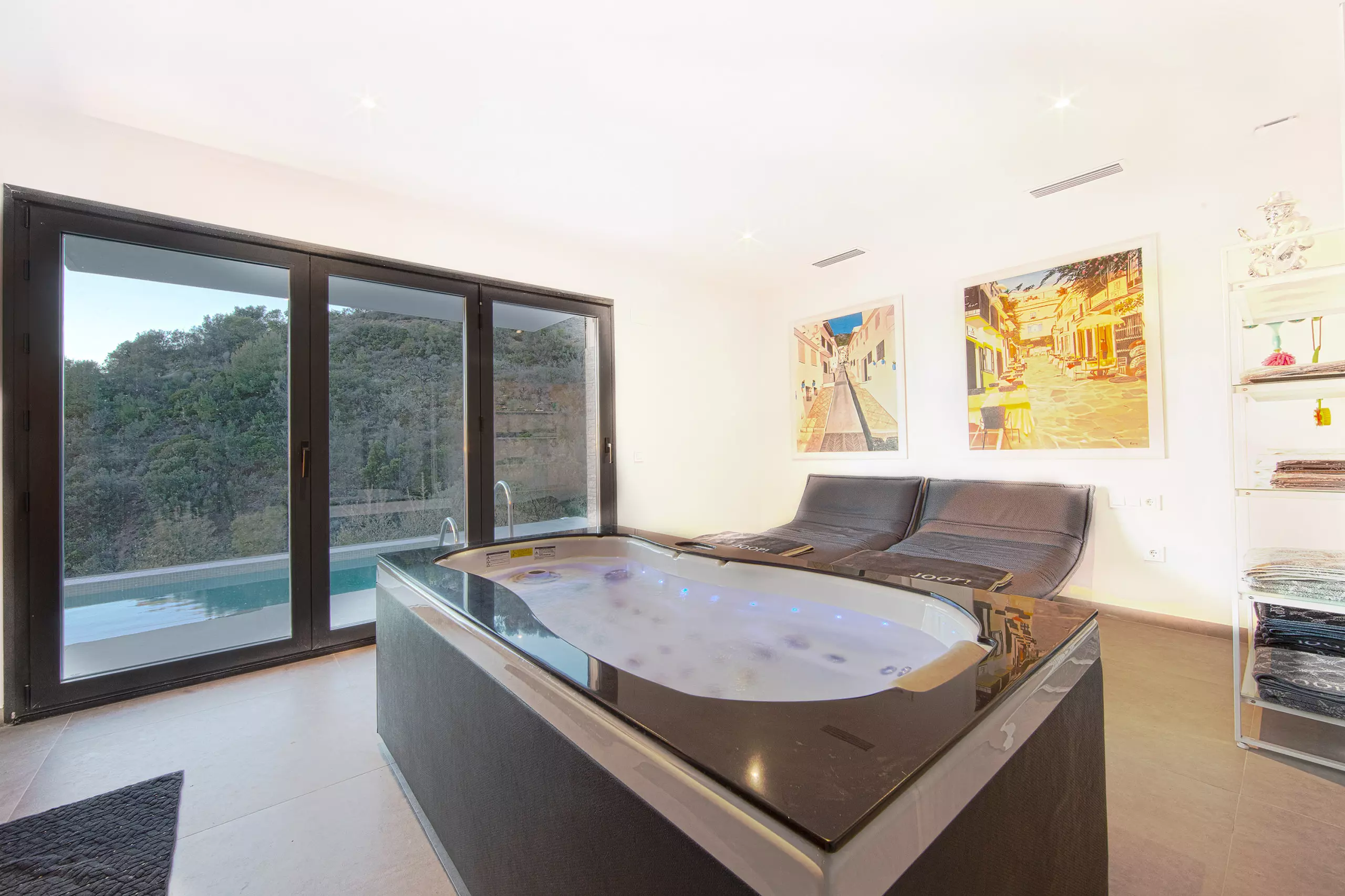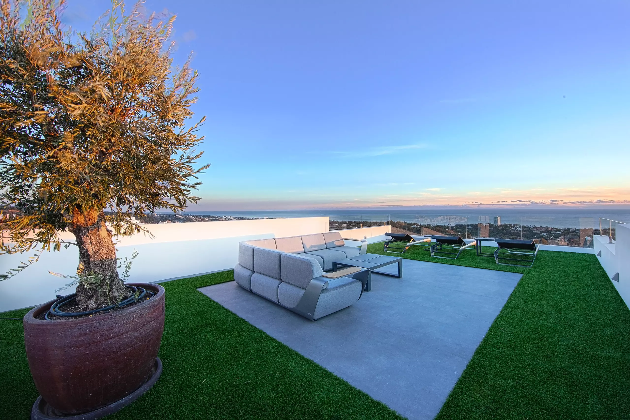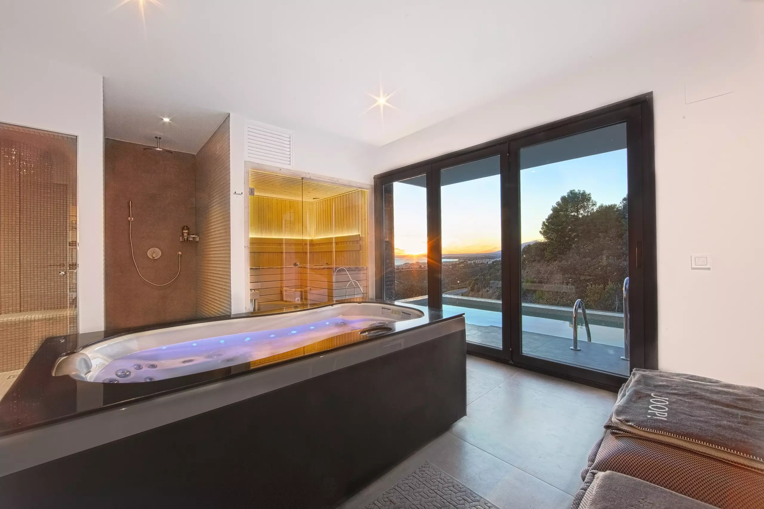 It has garden, garden furniture, fence, 225 m² terrace, washing machine, dryer, barbecue, iron, internet access (wifi), hair dryer, balcony, gym, alarm, spa, central heating, air conditioning throughout the accommodation, private swimming pool, private heated swimming pool, garage in the same building, TV, satellite TV (Languages: Spanish, English, German, Russian).
