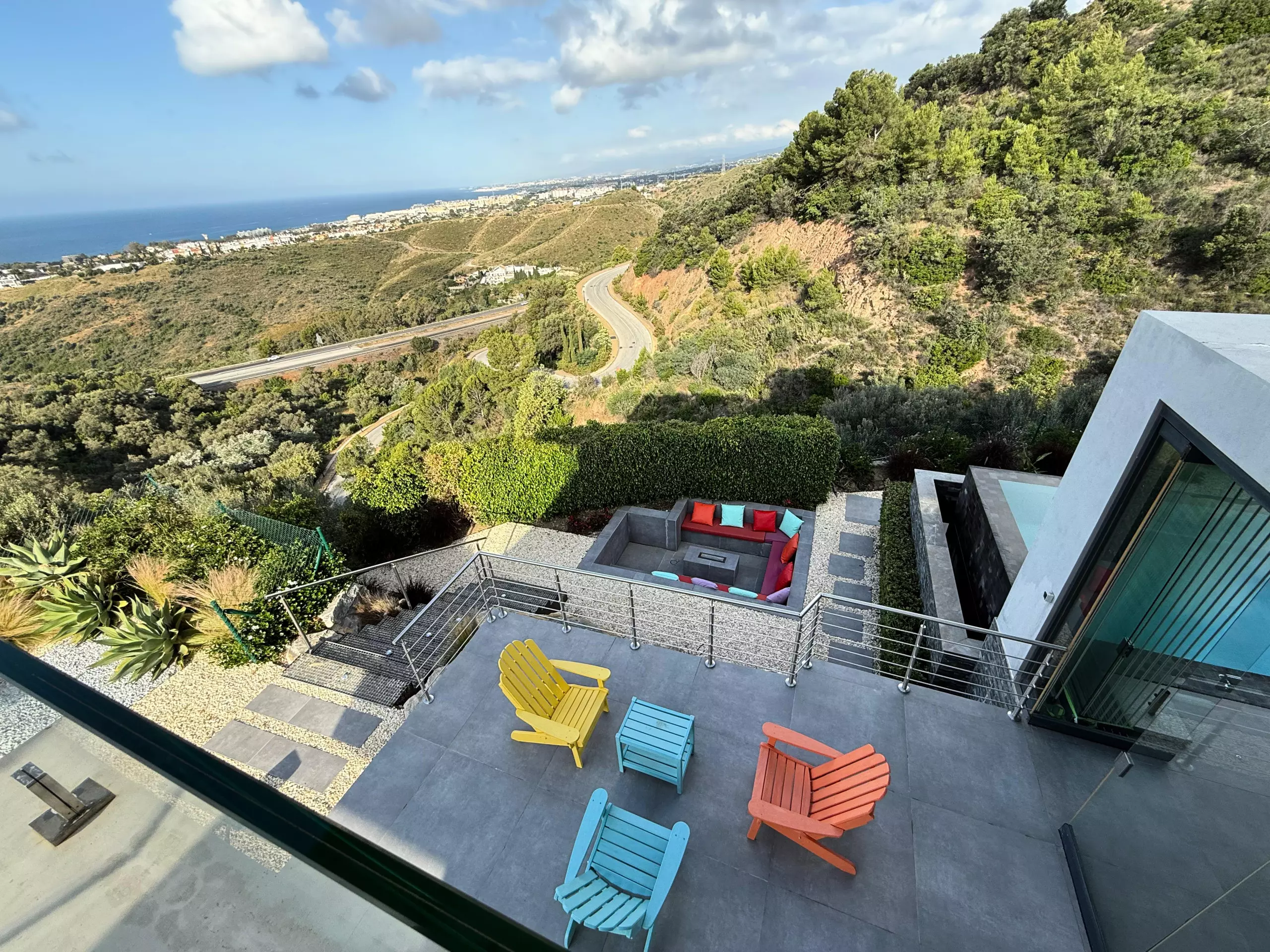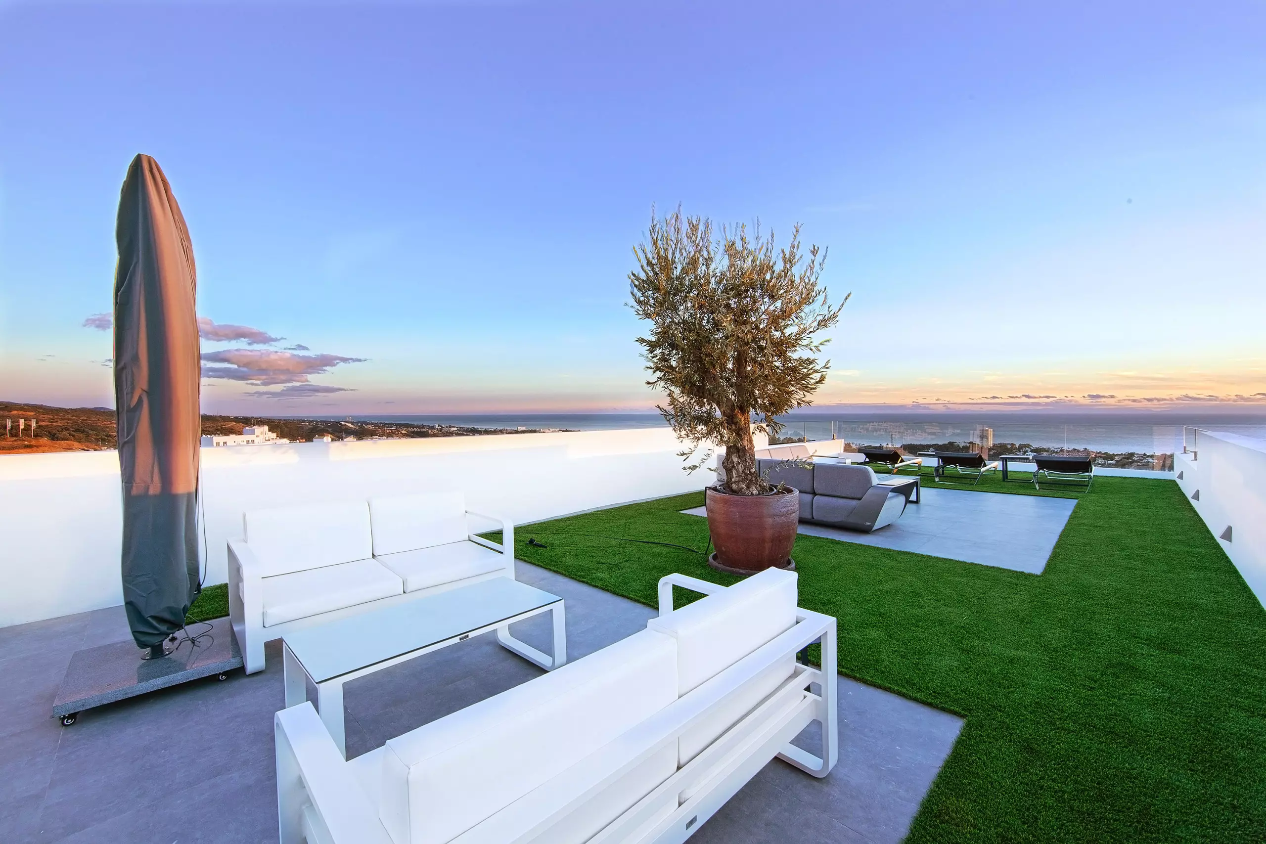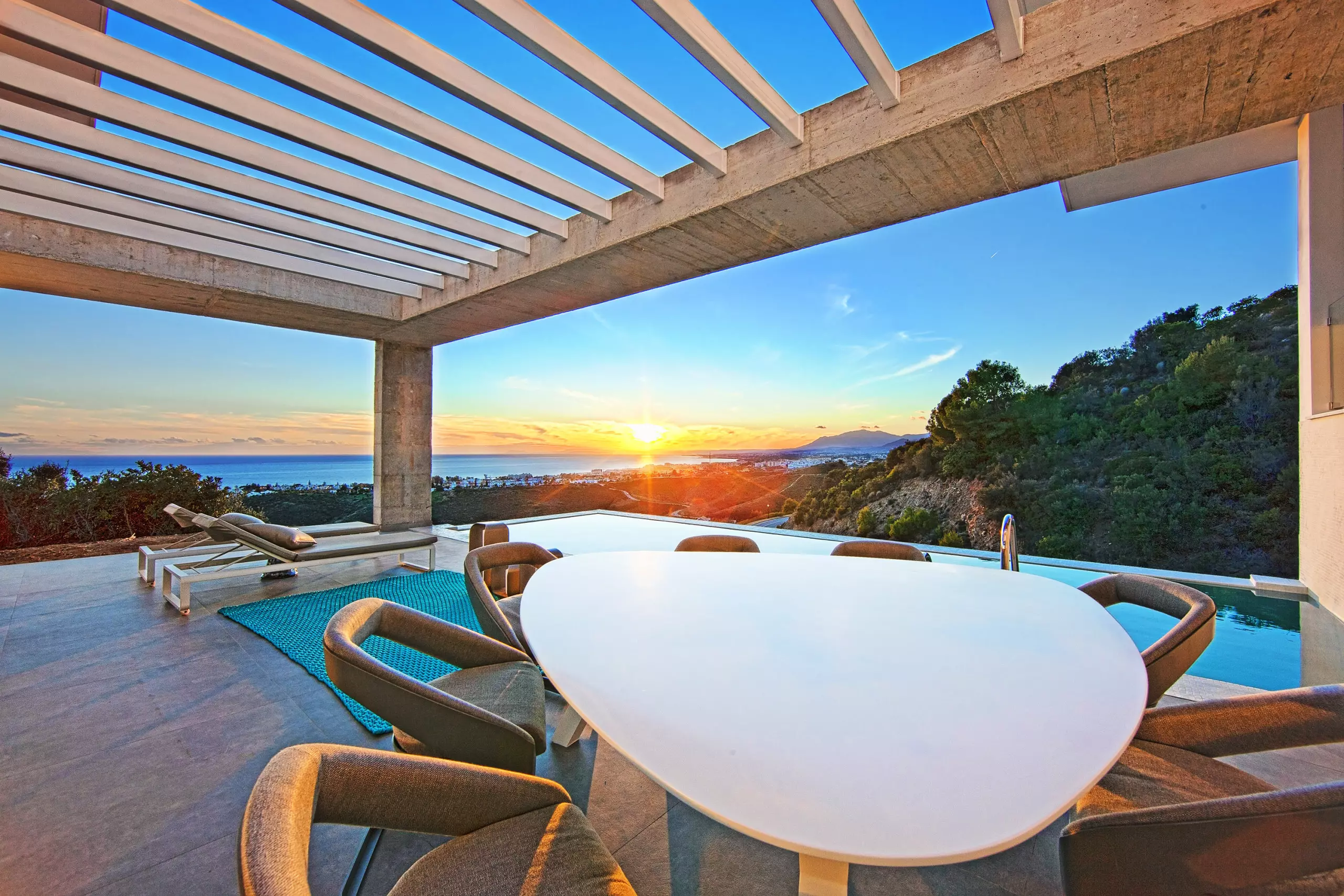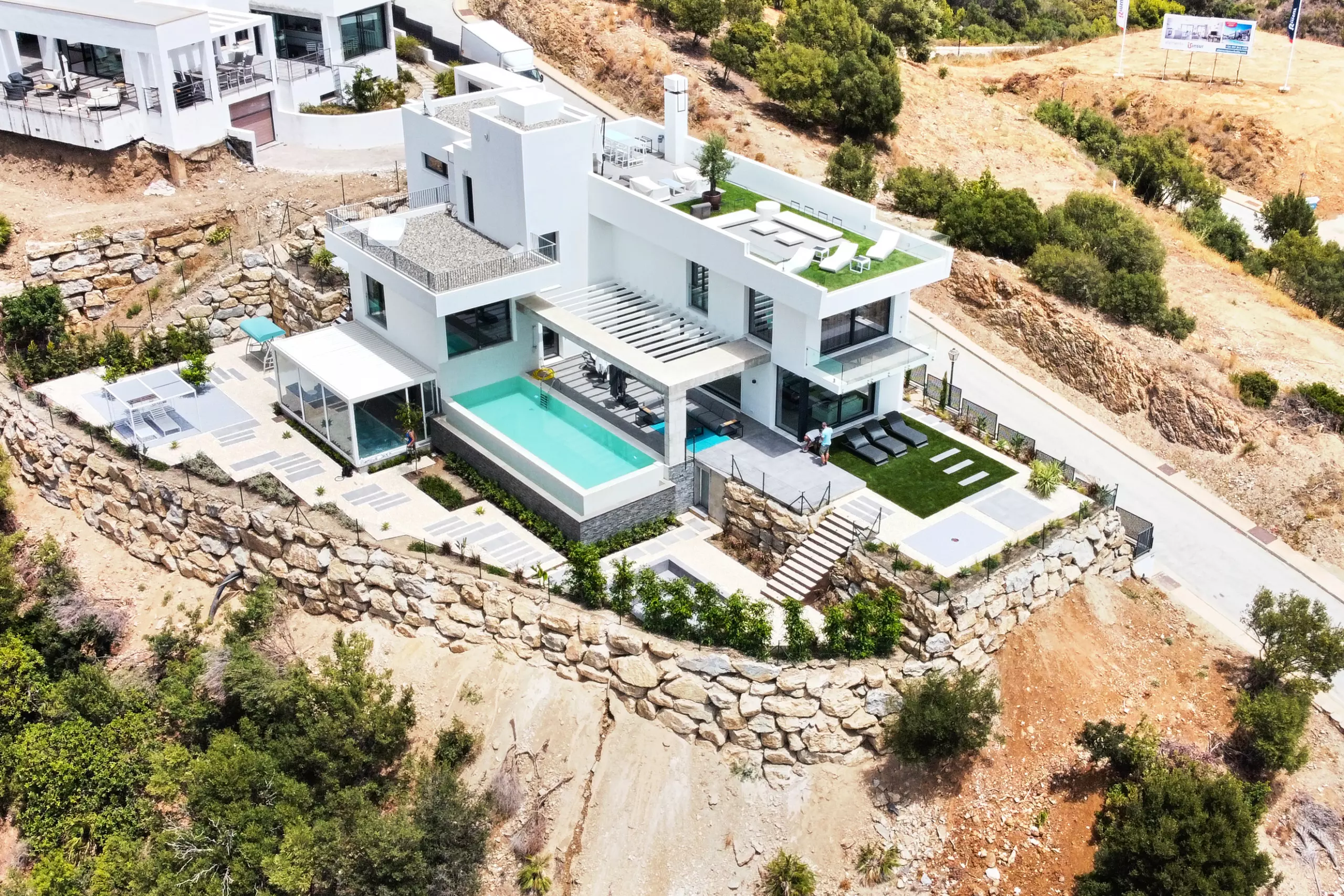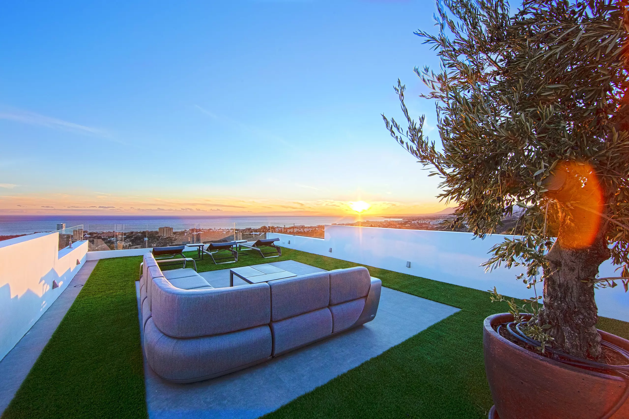 It has garden, garden furniture, fence, 225 m² terrace, washing machine, dryer, barbecue, iron, internet access (wifi), hair dryer, balcony, gym, alarm, spa, central heating, air conditioning throughout the accommodation, private swimming pool, private heated swimming pool, garage in the same building, TV, satellite TV (Languages: Spanish, English, German, Russian).