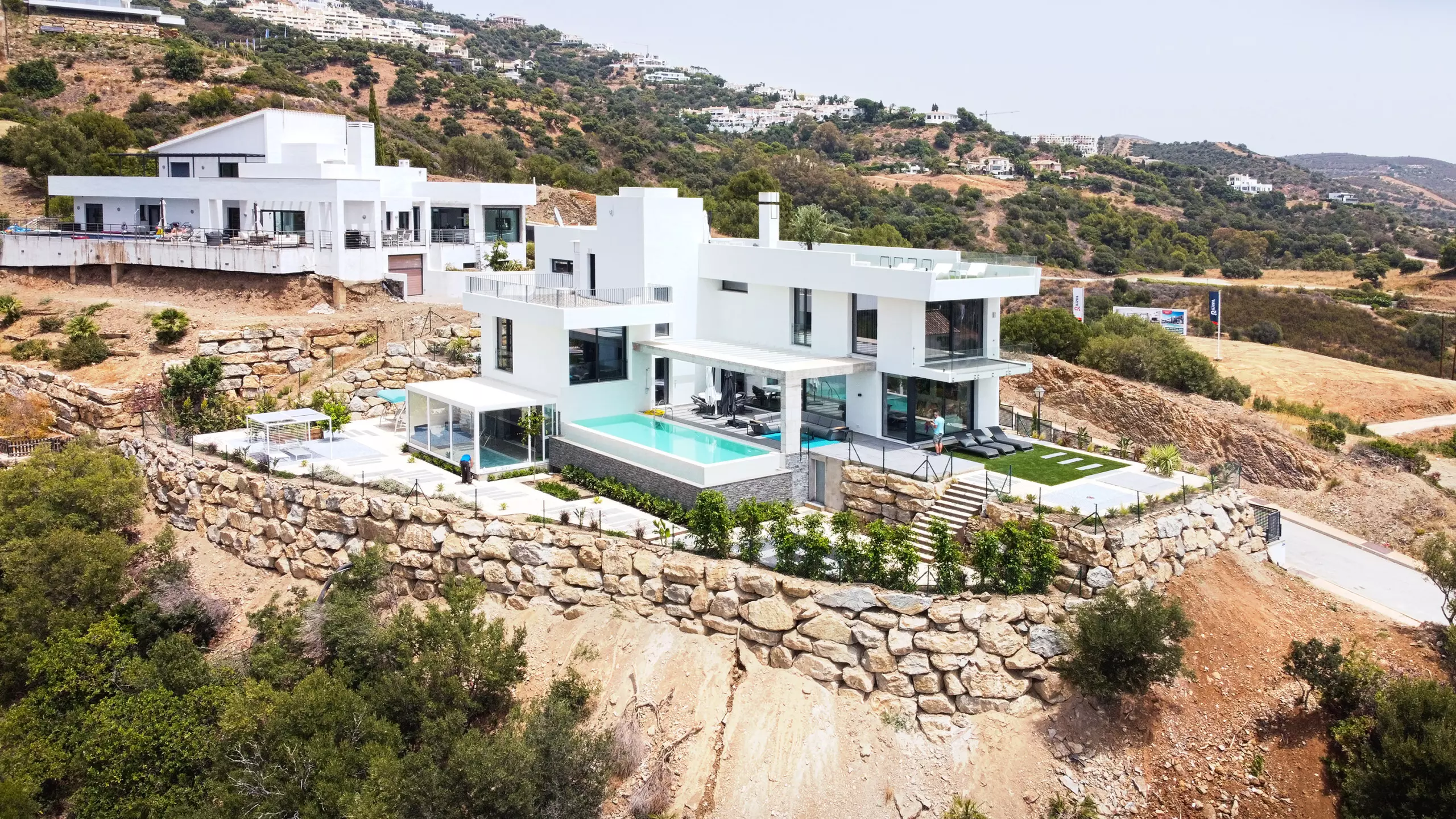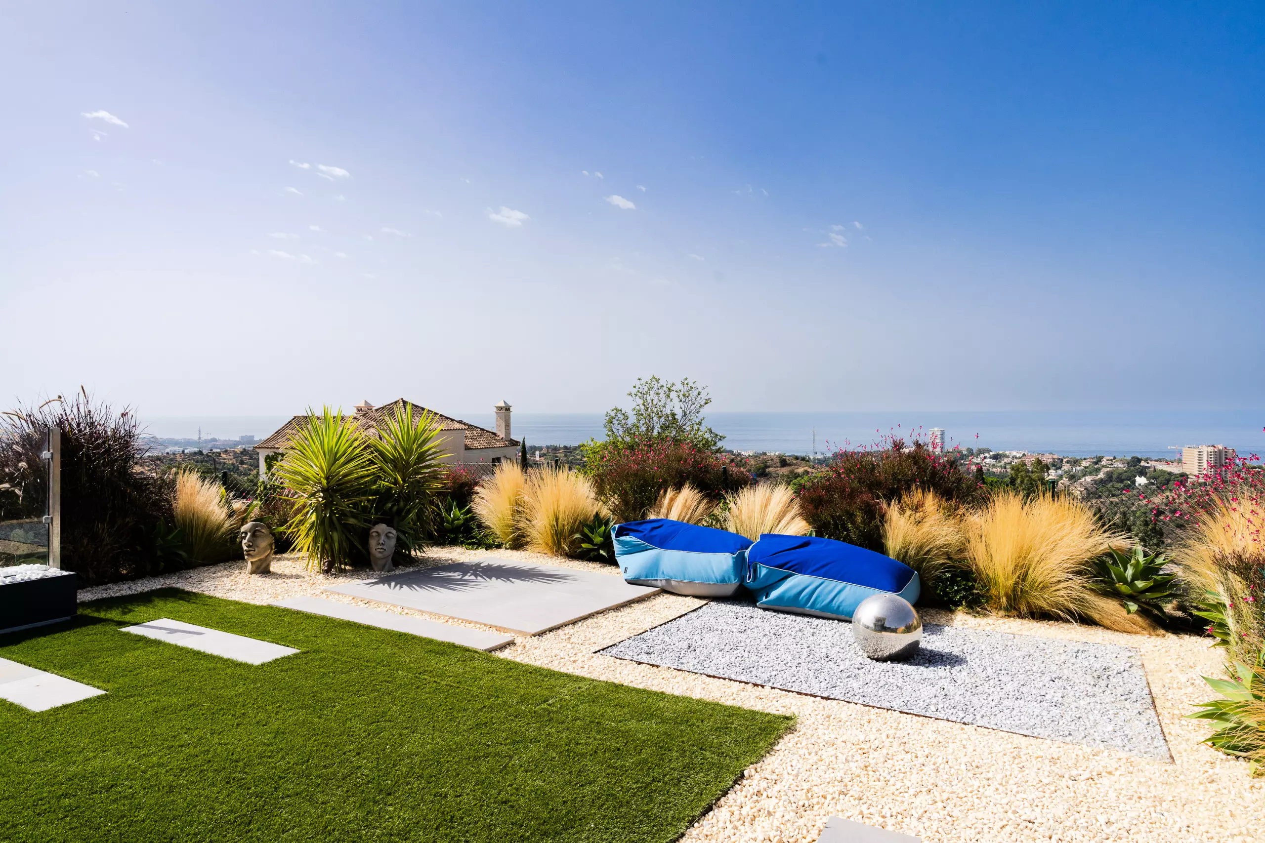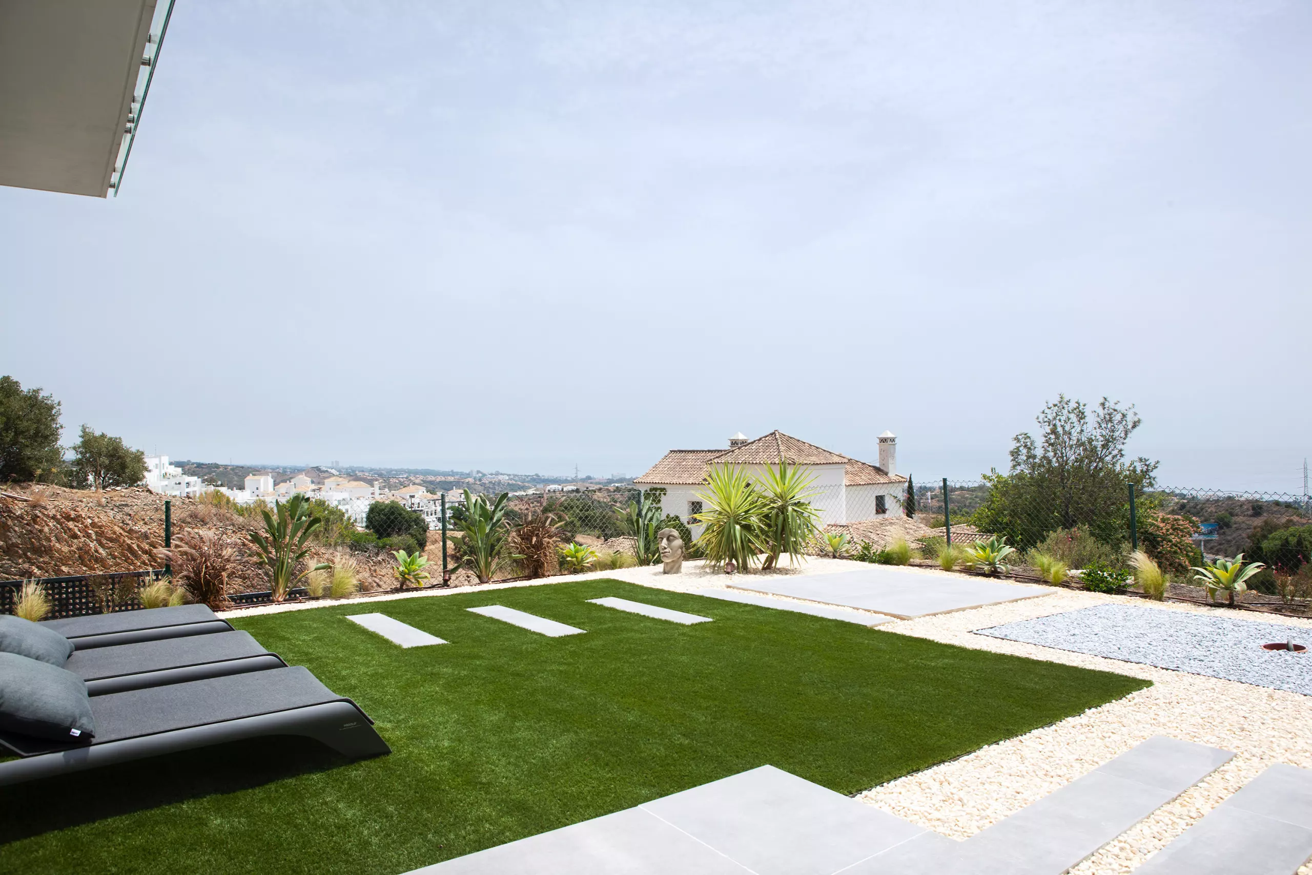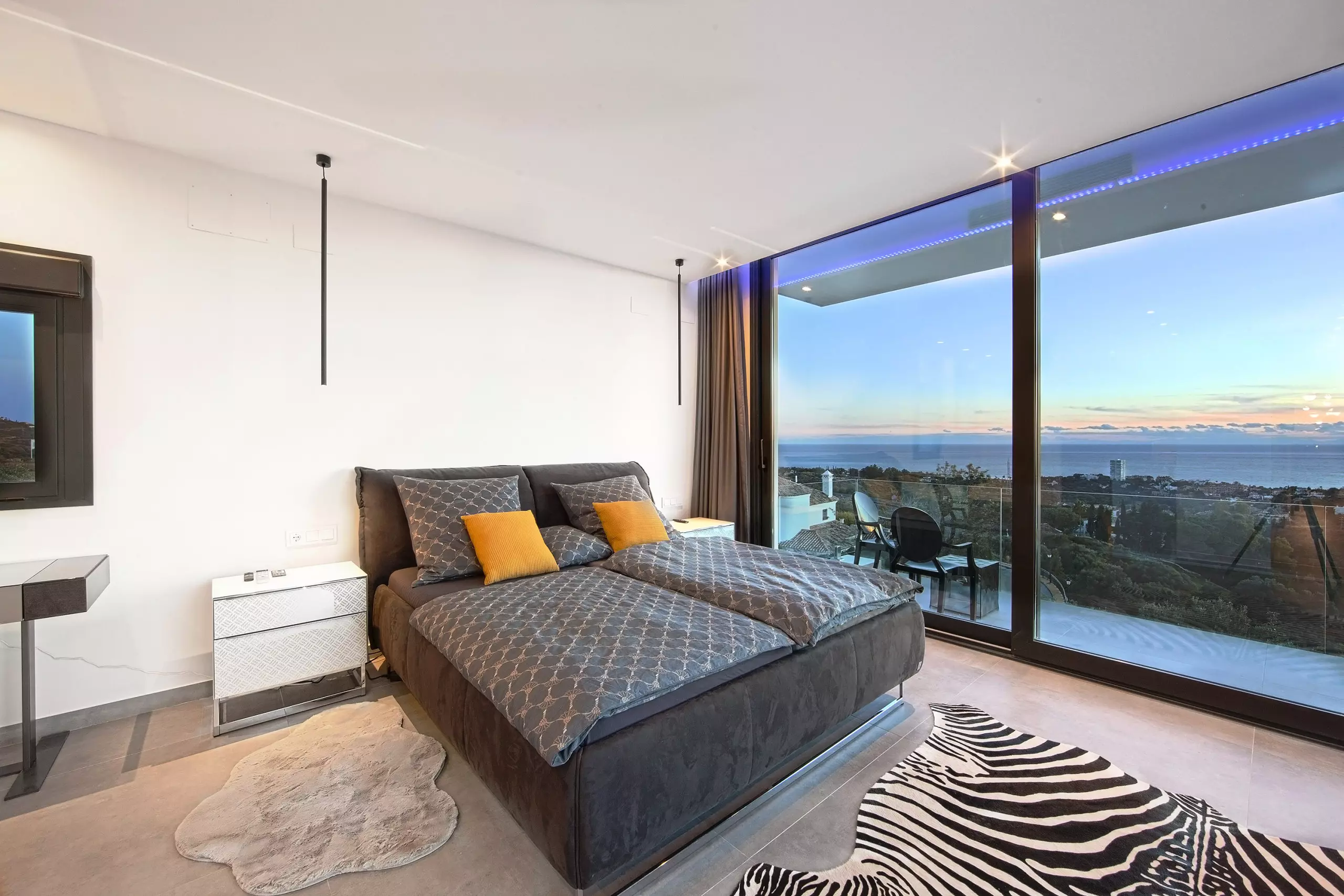 It has garden, garden furniture, fence, 225 m² terrace, washing machine, dryer, barbecue, iron, internet access (wifi), hair dryer, balcony, gym, alarm, spa, central heating, air conditioning throughout the accommodation, private swimming pool, private heated swimming pool, garage in the same building, TV, satellite TV (Languages: Spanish, English, German, Russian).