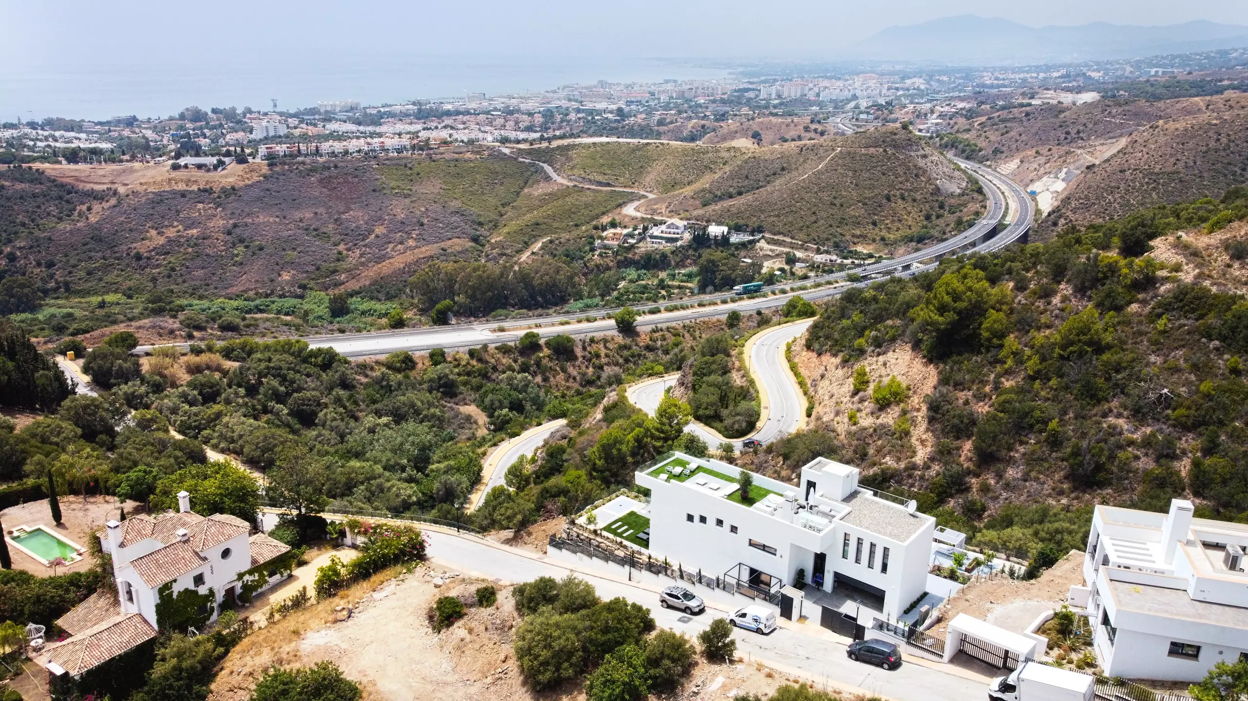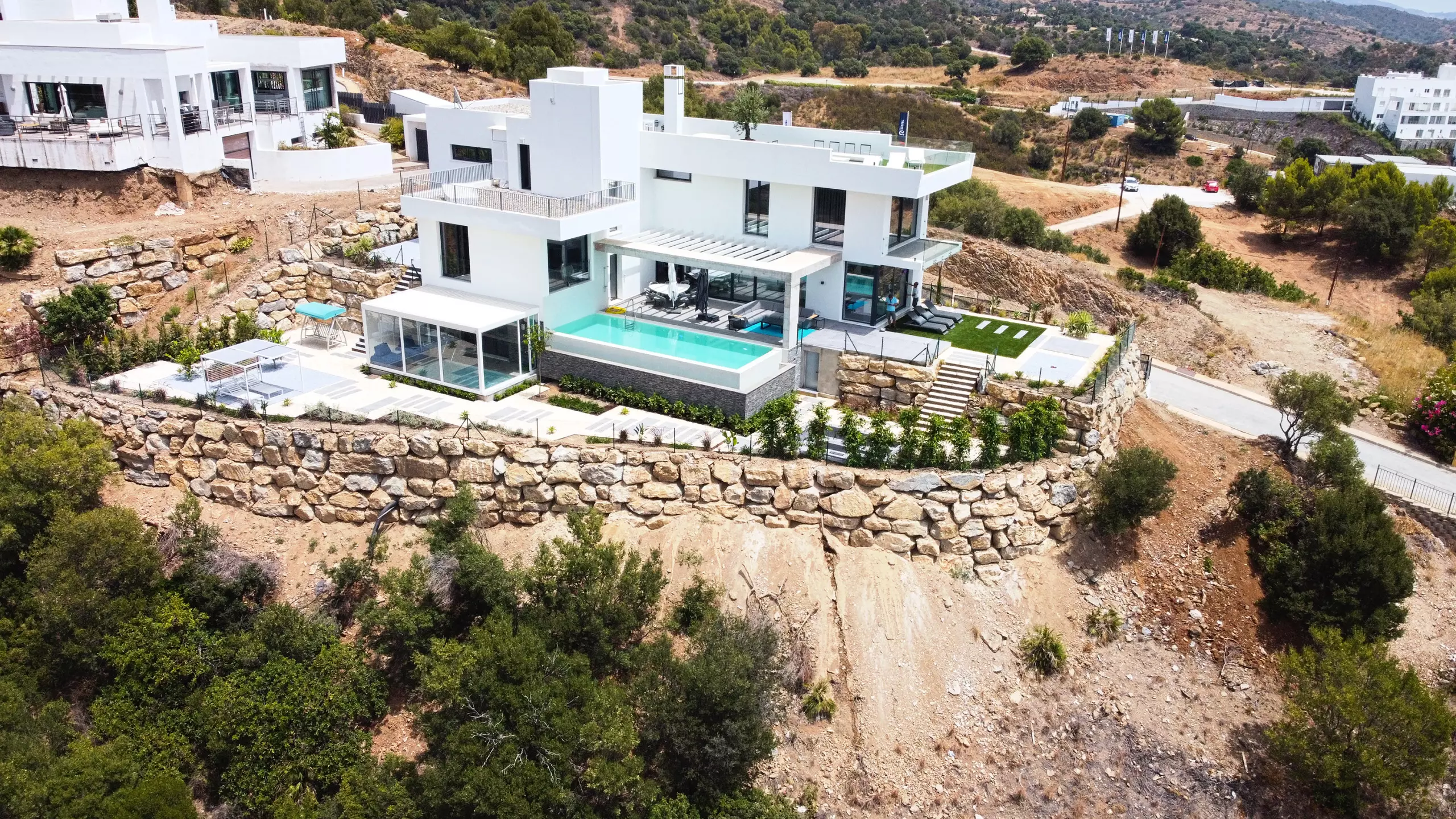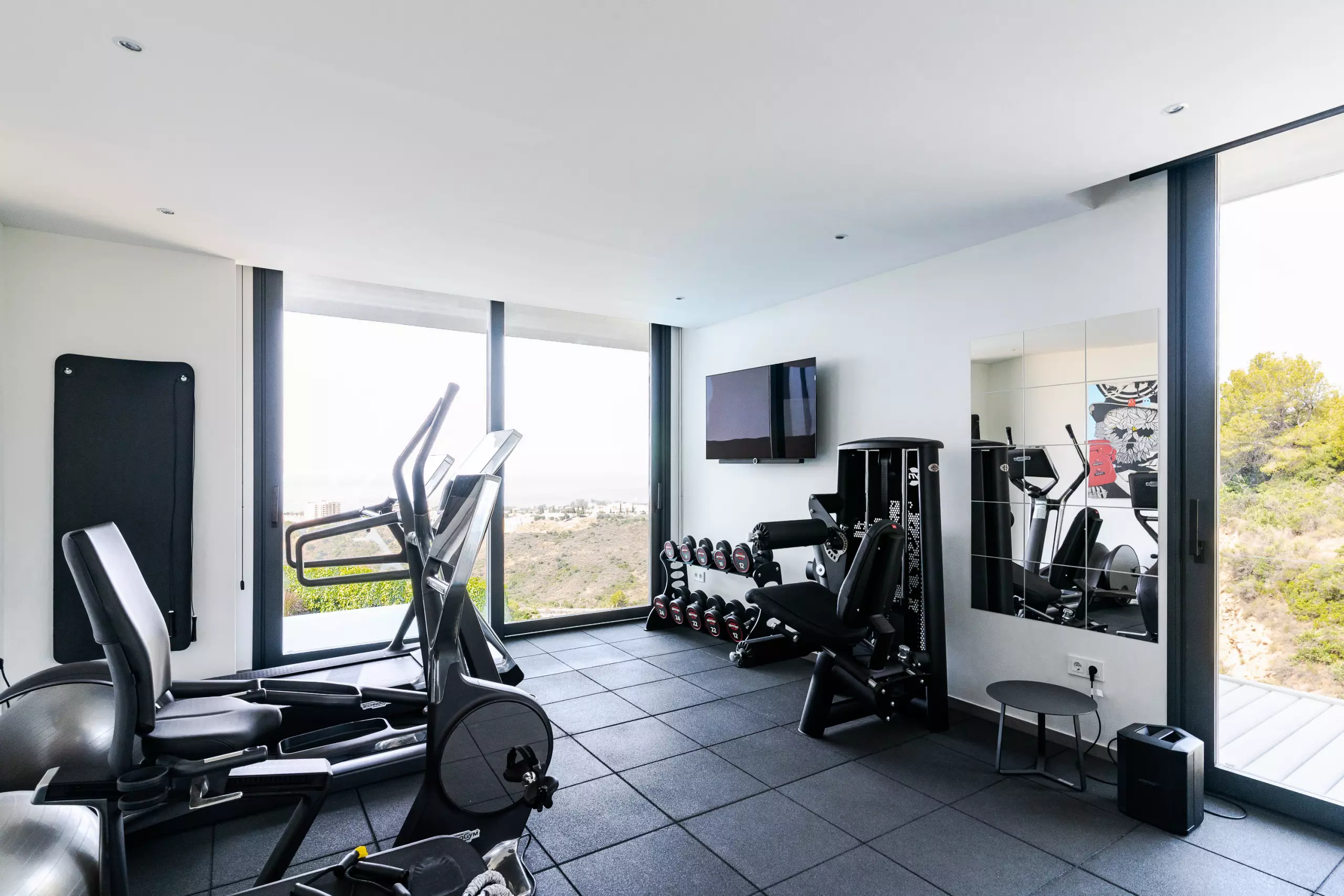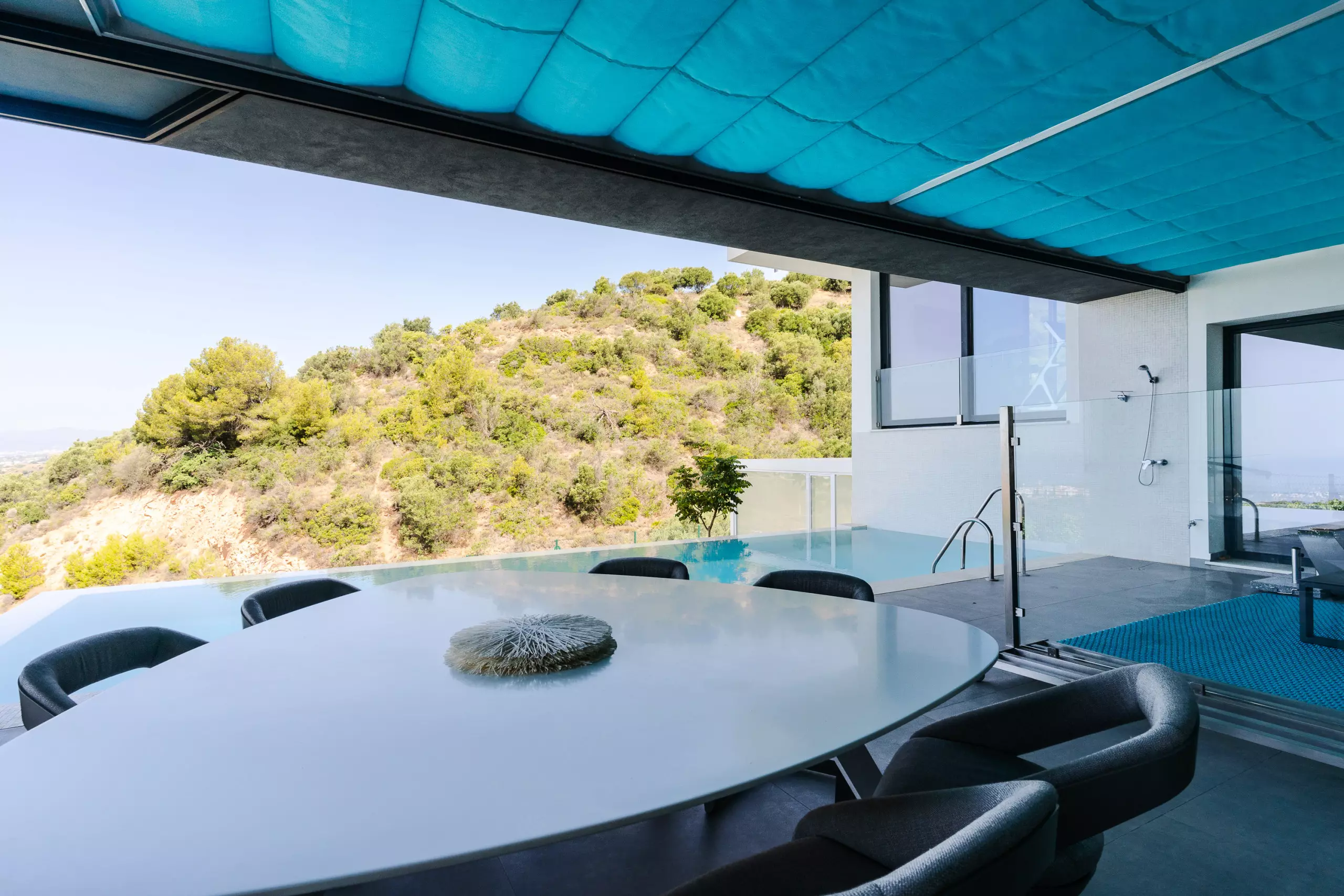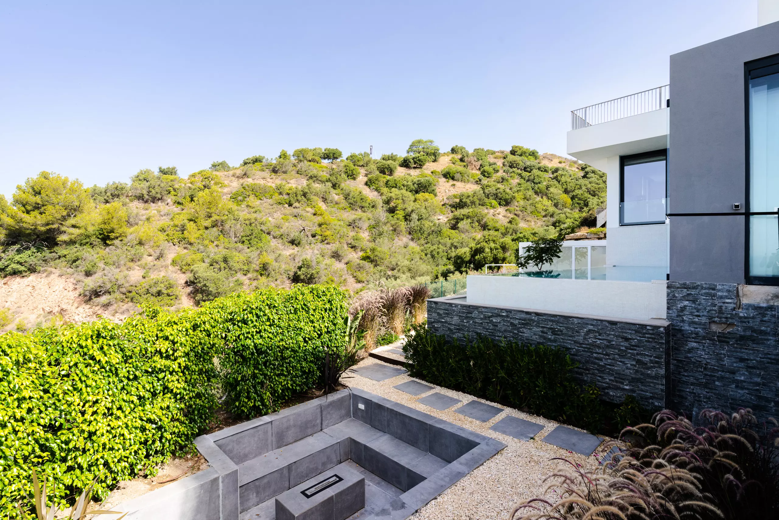 It has garden, garden furniture, fence, 225 m² terrace, washing machine, dryer, barbecue, iron, internet access (wifi), hair dryer, balcony, gym, alarm, spa, central heating, air conditioning throughout the accommodation, private swimming pool, private heated swimming pool, garage in the same building, TV, satellite TV (Languages: Spanish, English, German, Russian).