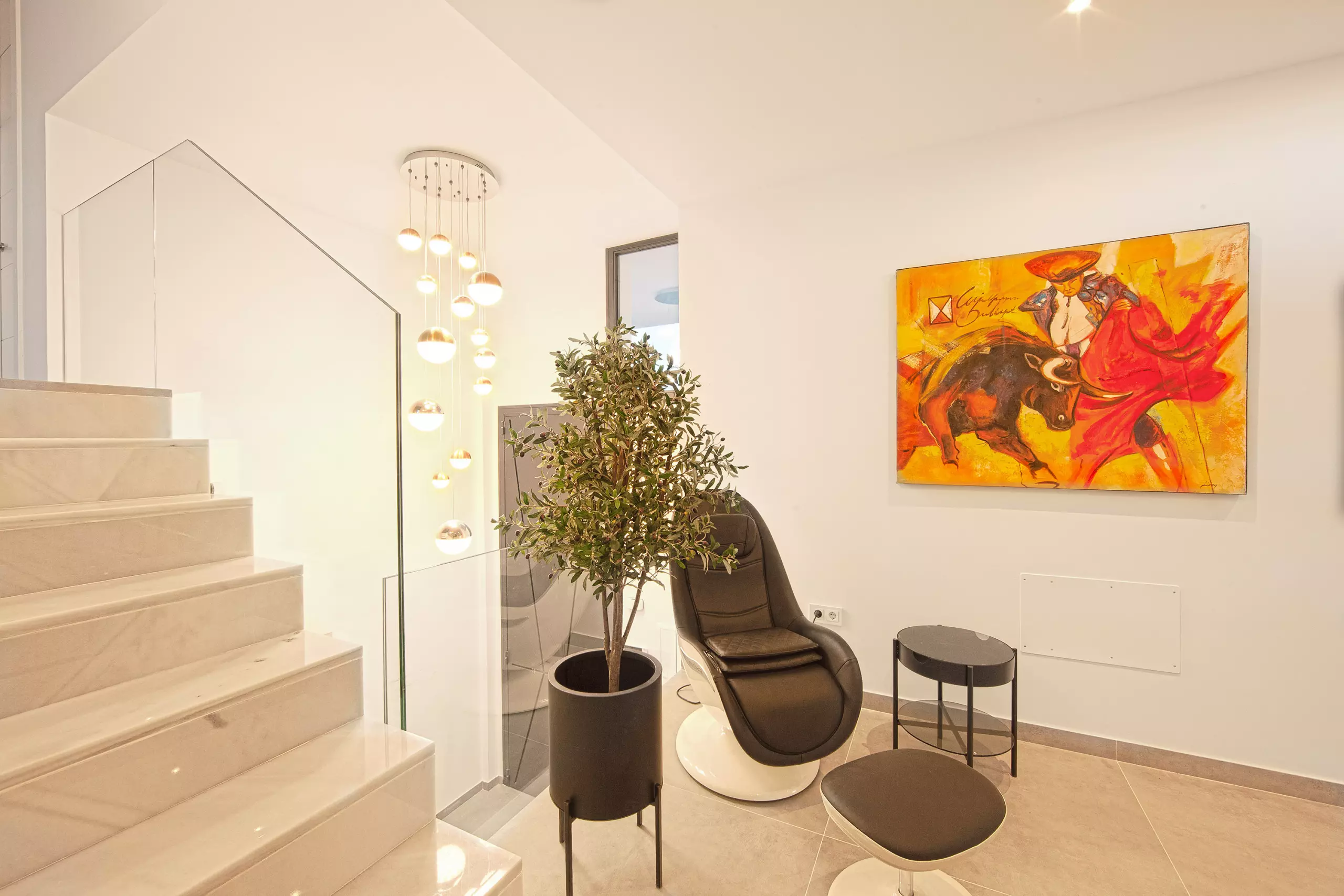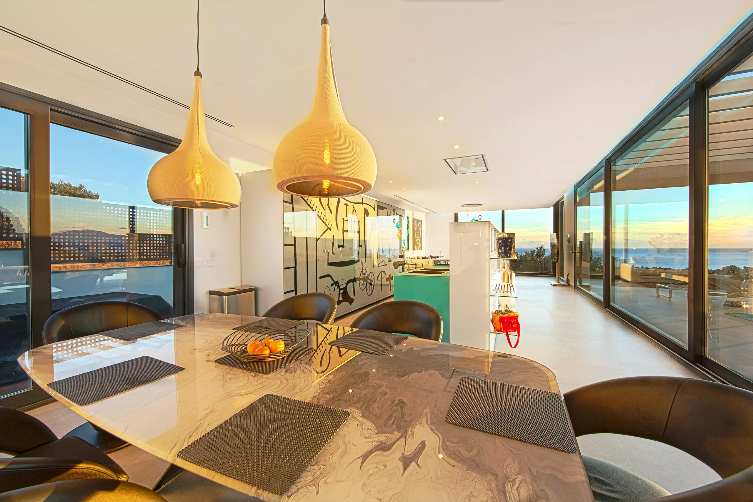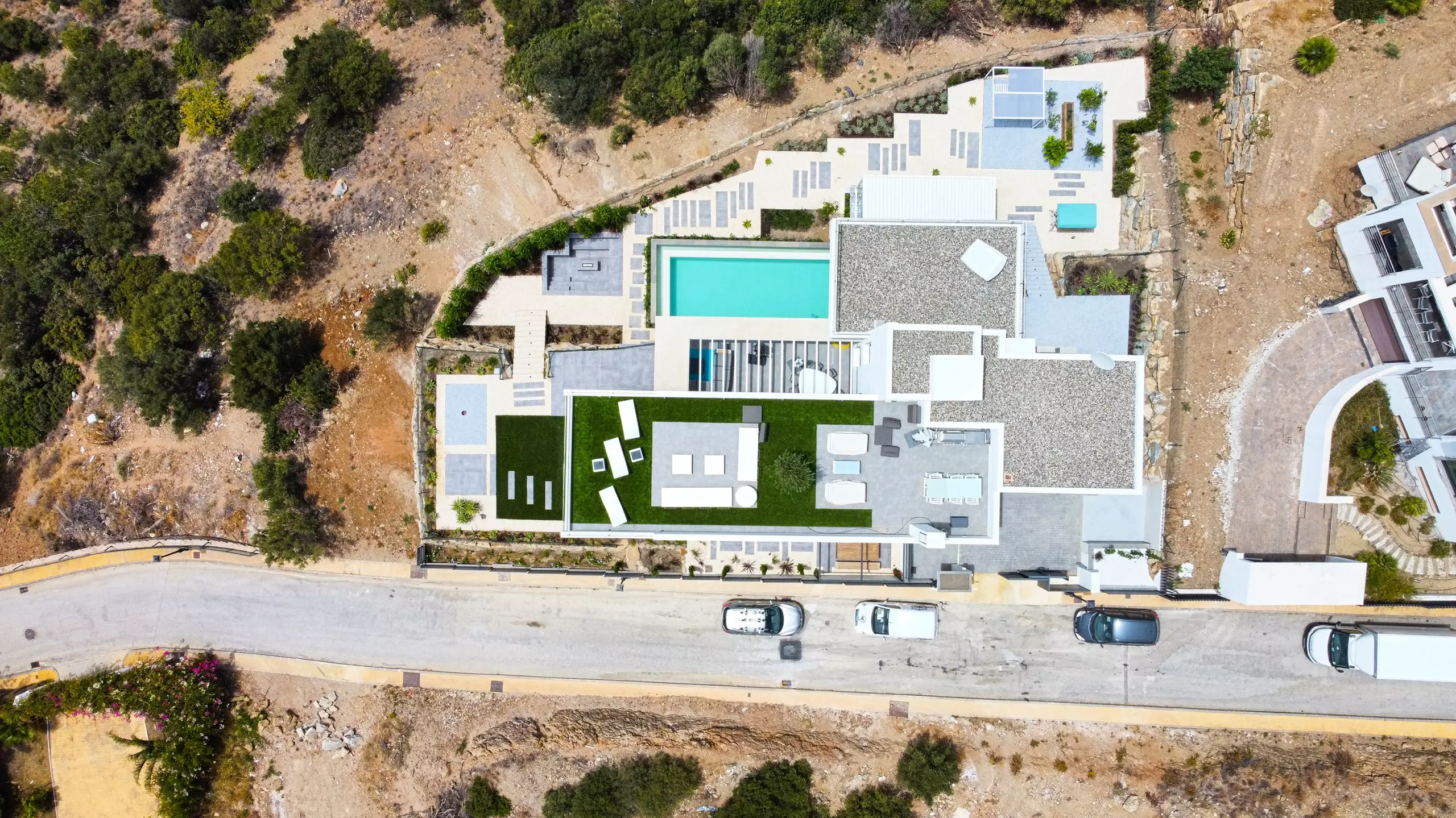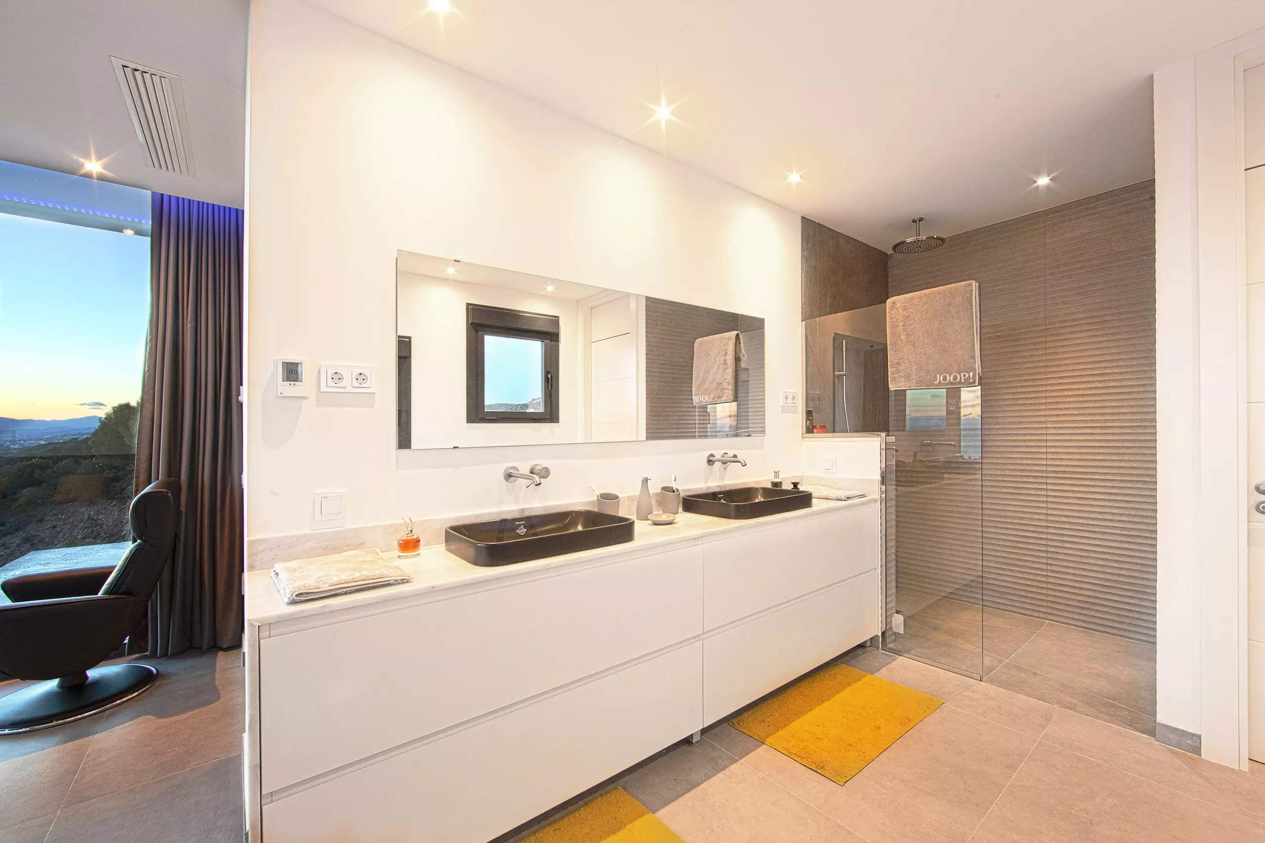 It has garden, garden furniture, fence, 225 m² terrace, washing machine, dryer, barbecue, iron, internet access (wifi), hair dryer, balcony, gym, alarm, spa, central heating, air conditioning throughout the accommodation, private swimming pool, private heated swimming pool, garage in the same building, TV, satellite TV (Languages: Spanish, English, German, Russian).