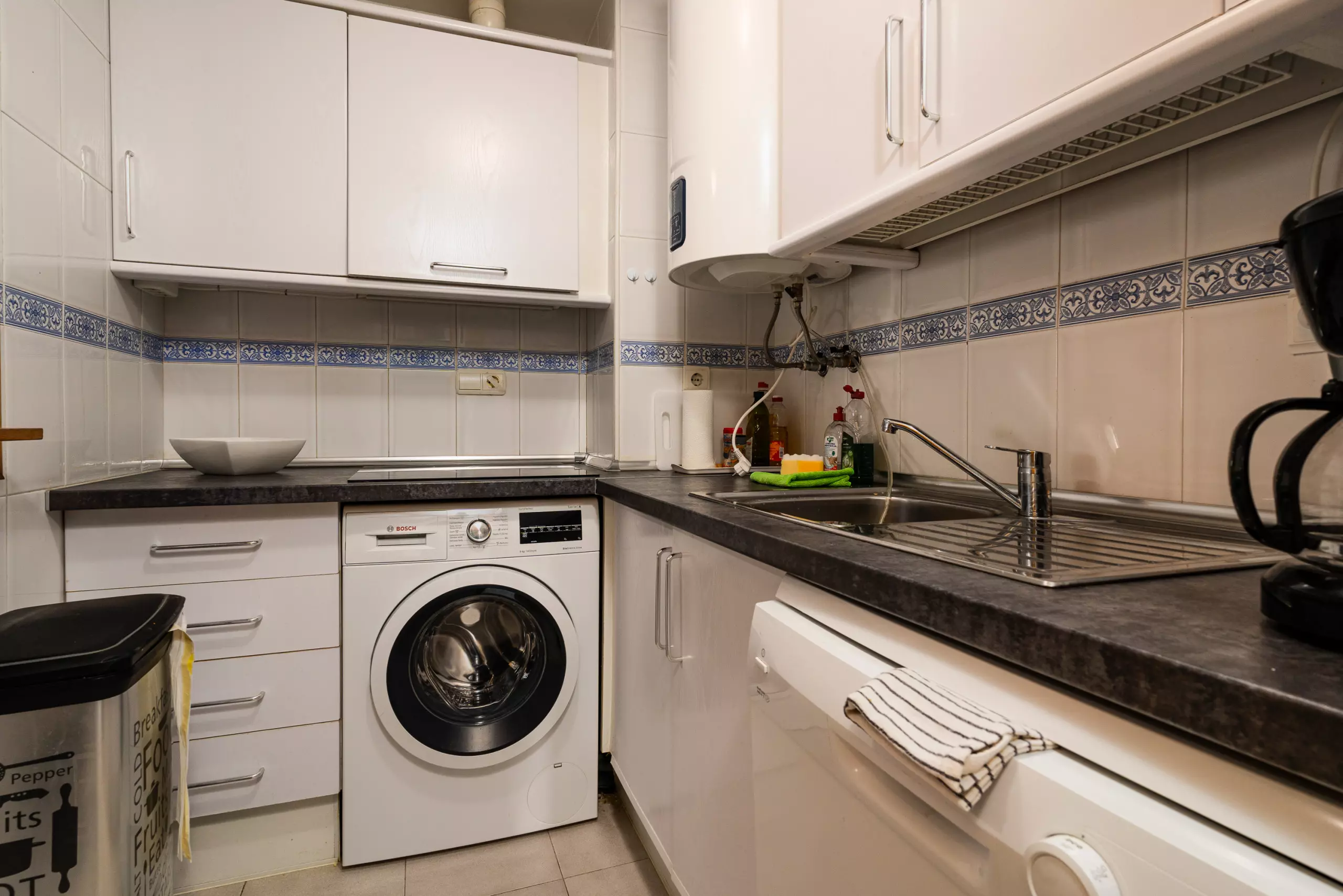 the kitchen, refrigerator, microwave, freezer, washing machine, dishes/cutlery, kitchen utensils, coffee machine, toaster and kettle are provided.