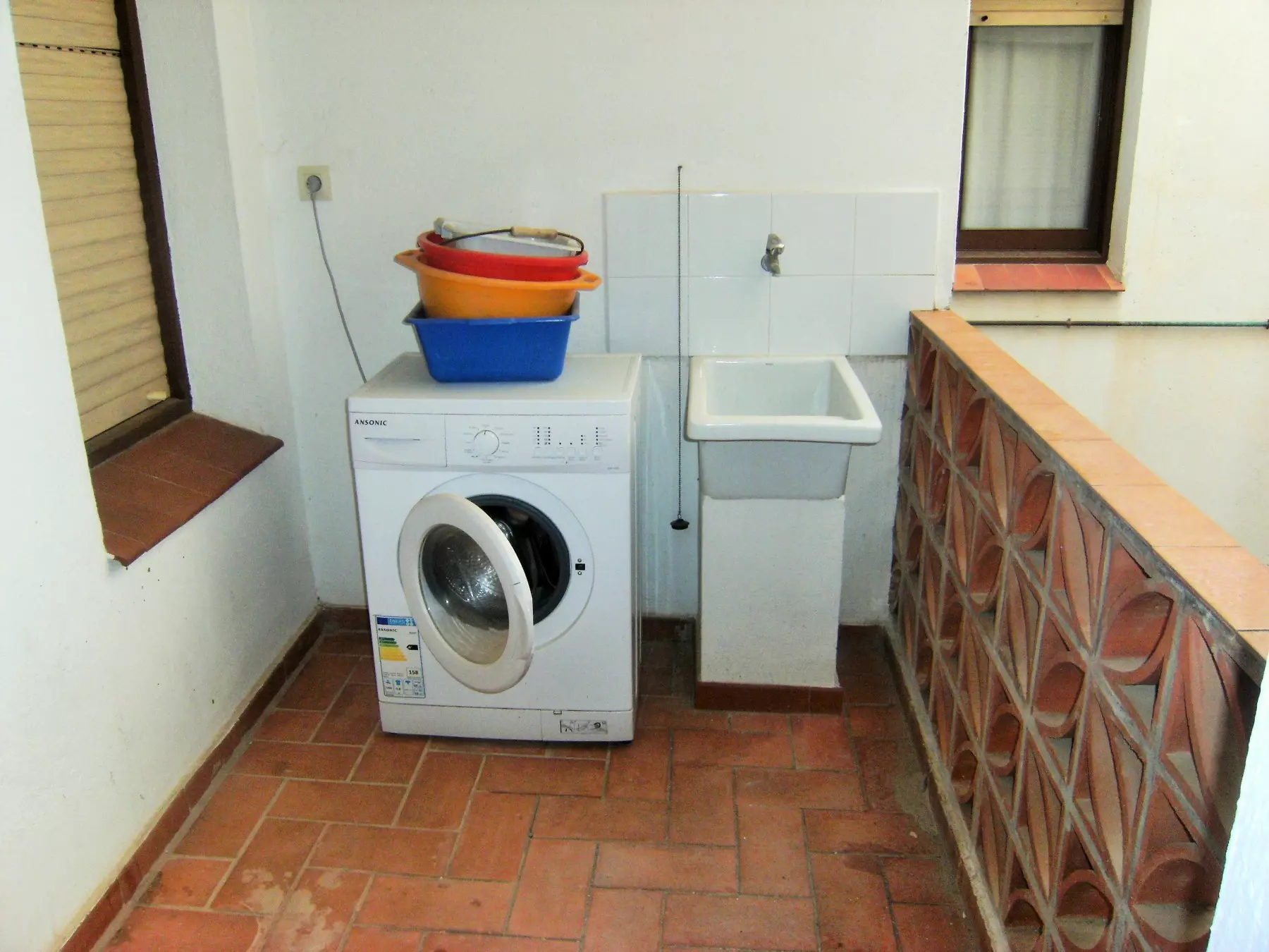 The well-equipped independent kitchen with butane gas includes a refrigerator, microwave, oven, freezer, washing machine, crockery/cutlery, cooking utensils, coffee maker, toaster and juicer.