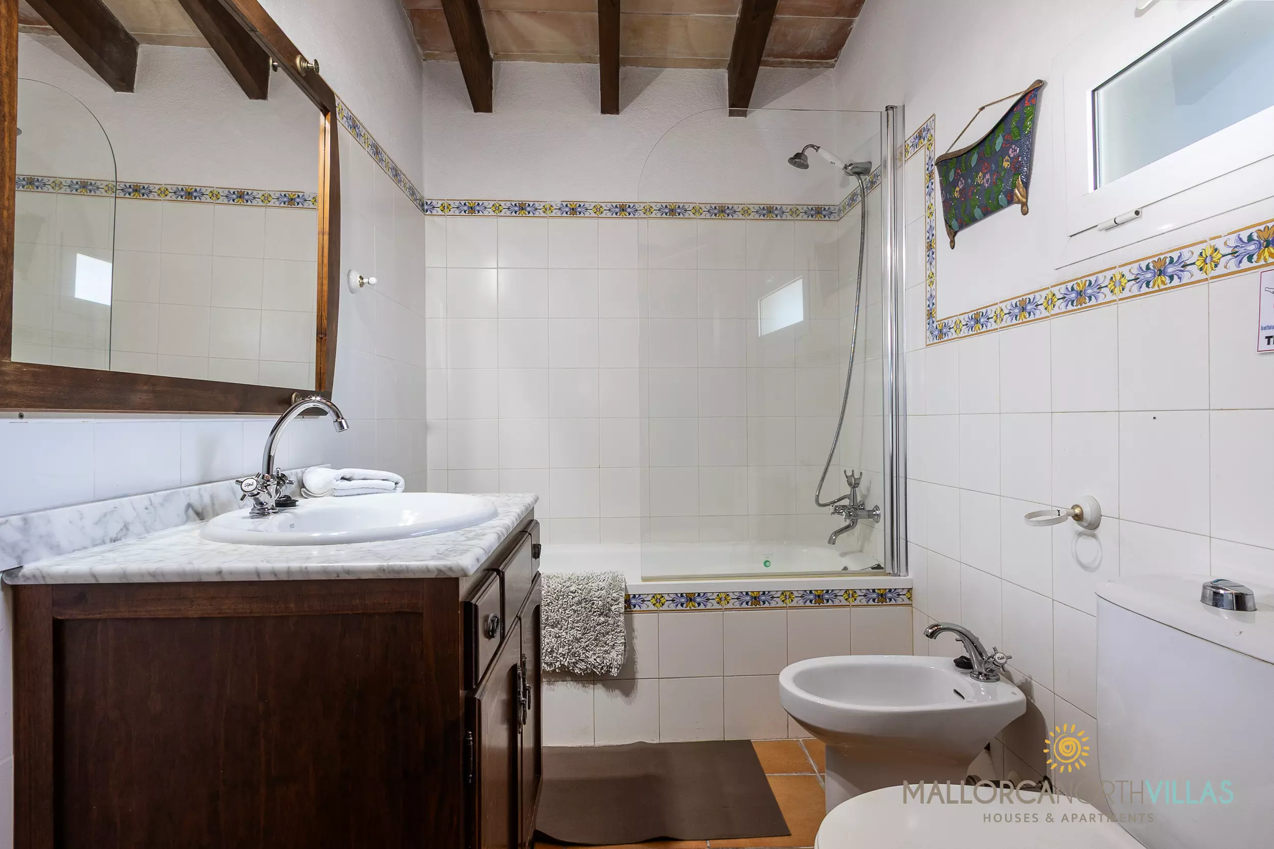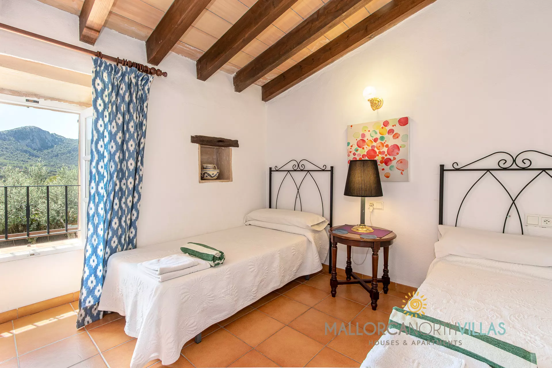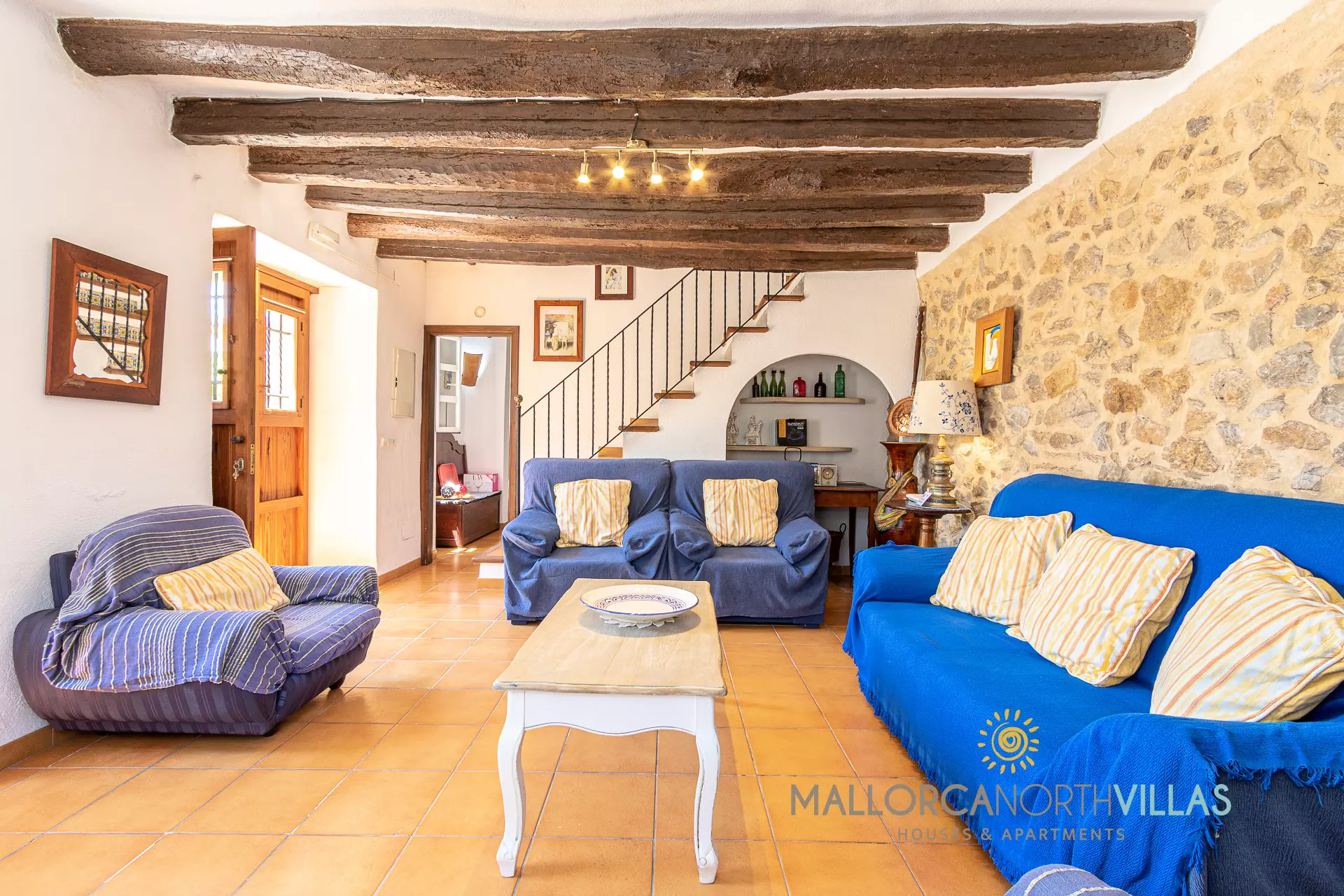 Upstairs: three comfortable bedrooms (one with a double bed and two with single beds) and a second bathroom. All rooms offer spectacular views of the Serra de Tramuntana, the Mallorcan countryside, and the iconic Puig de Maria.