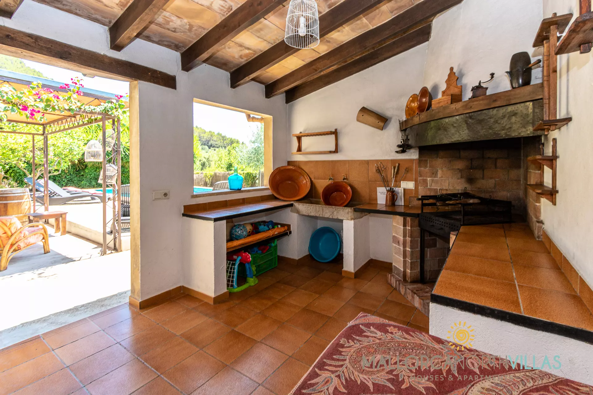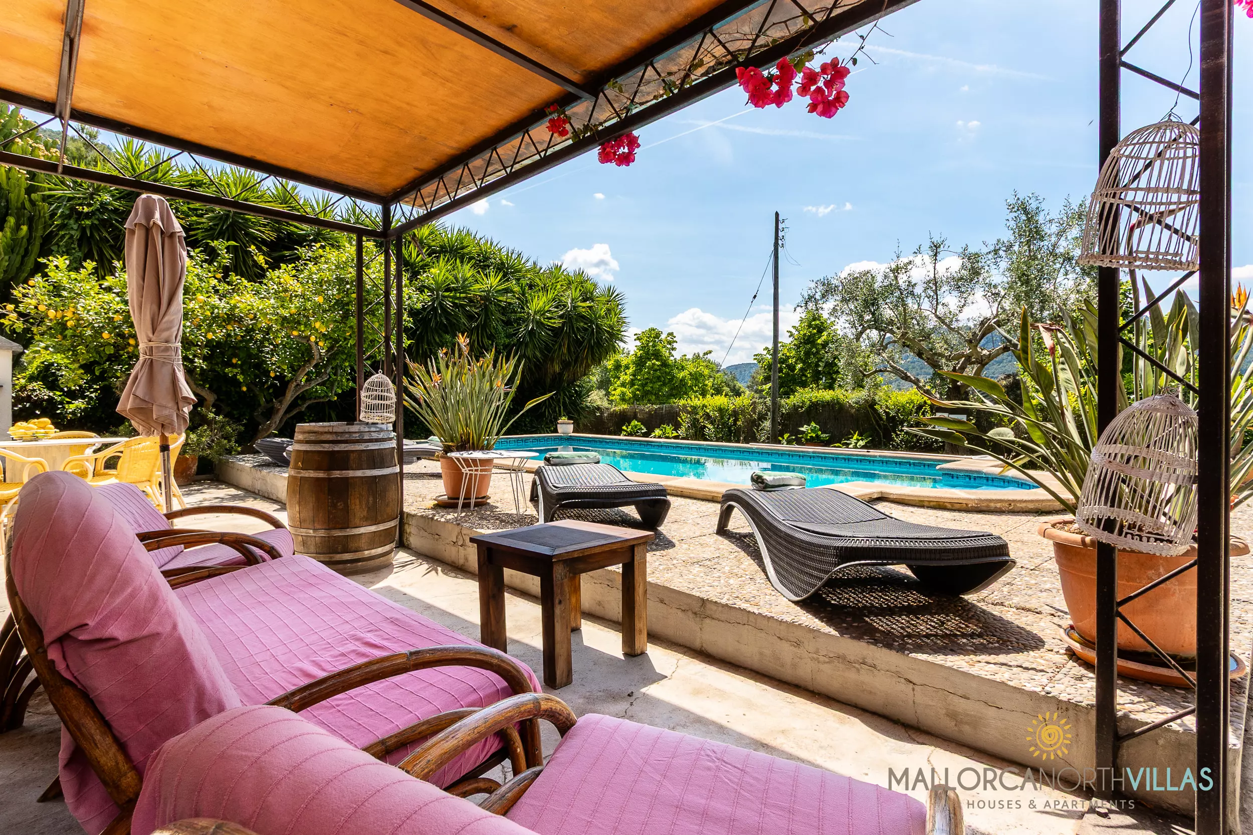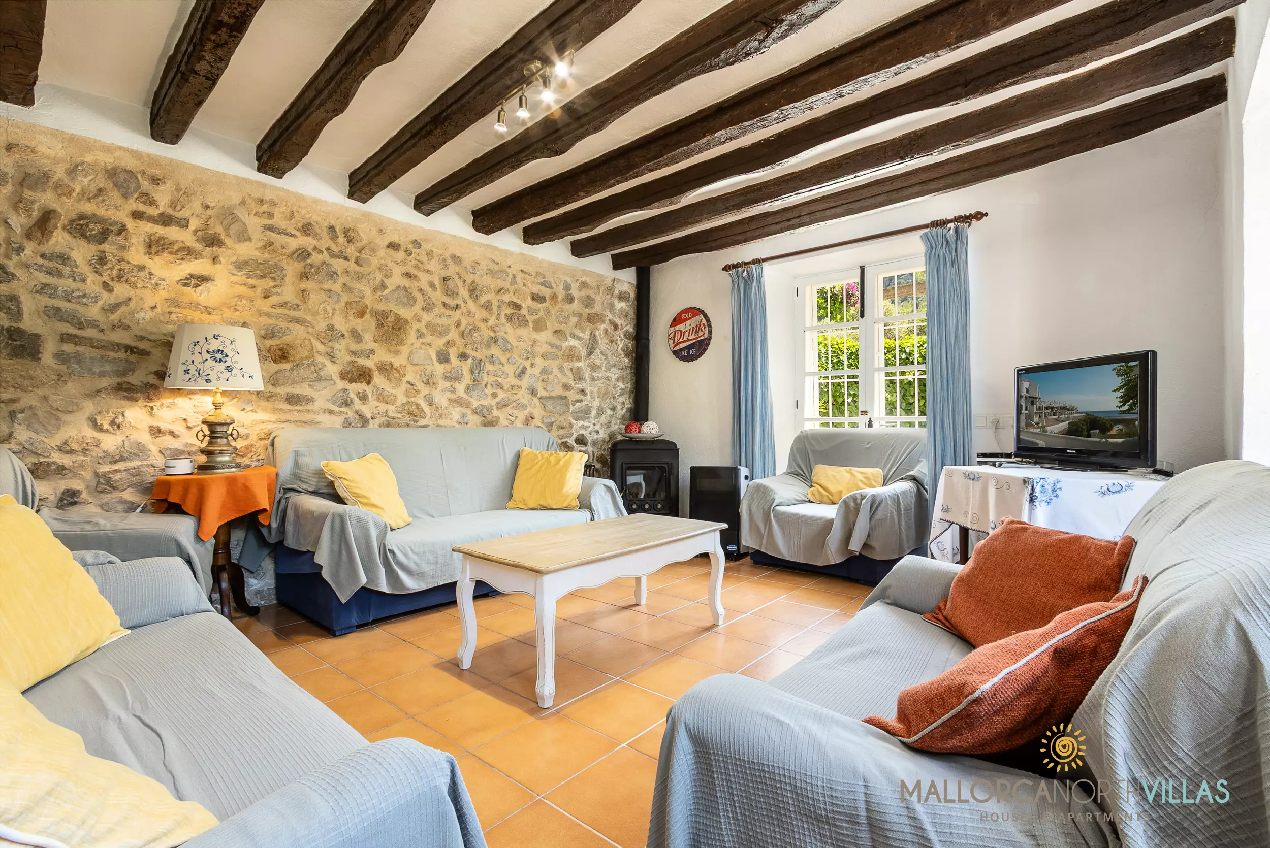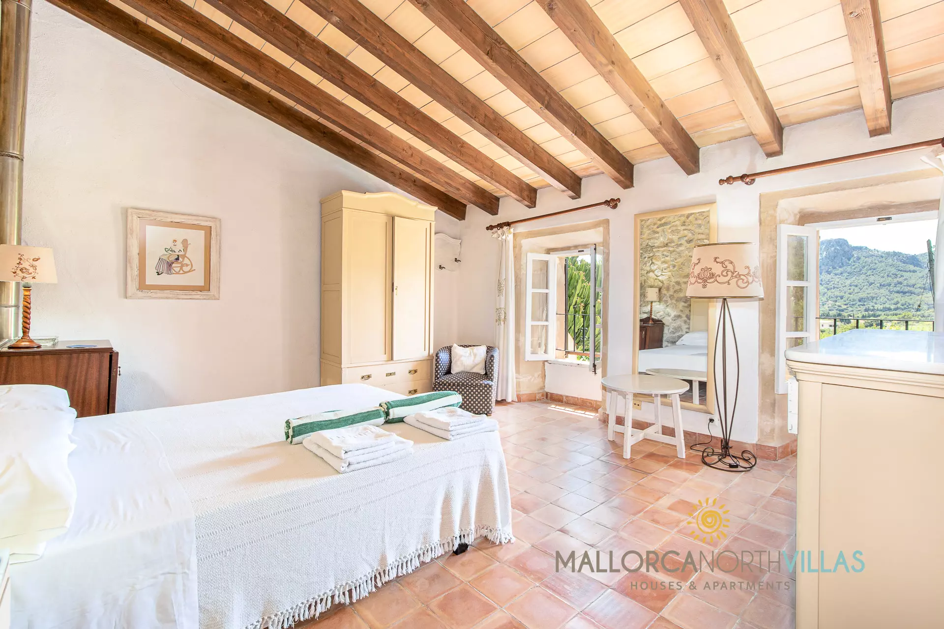 Upstairs: three comfortable bedrooms (one with a double bed and two with single beds) and a second bathroom. All rooms offer spectacular views of the Serra de Tramuntana, the Mallorcan countryside, and the iconic Puig de Maria.