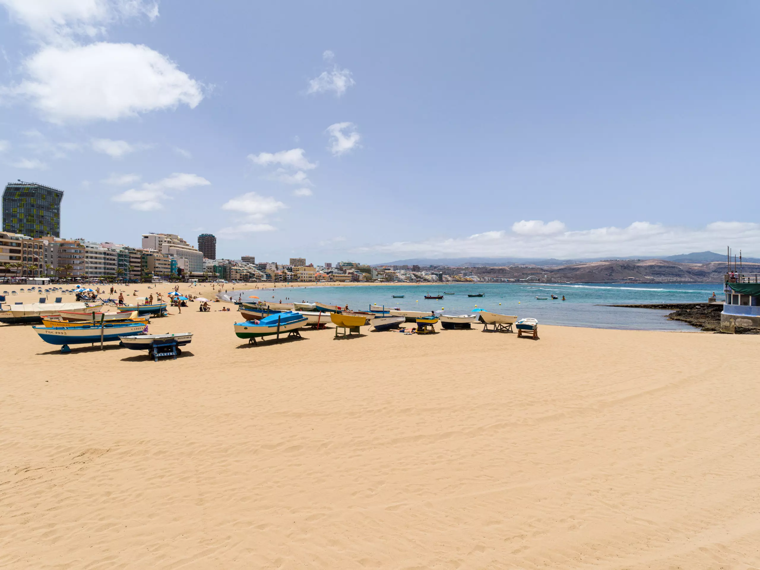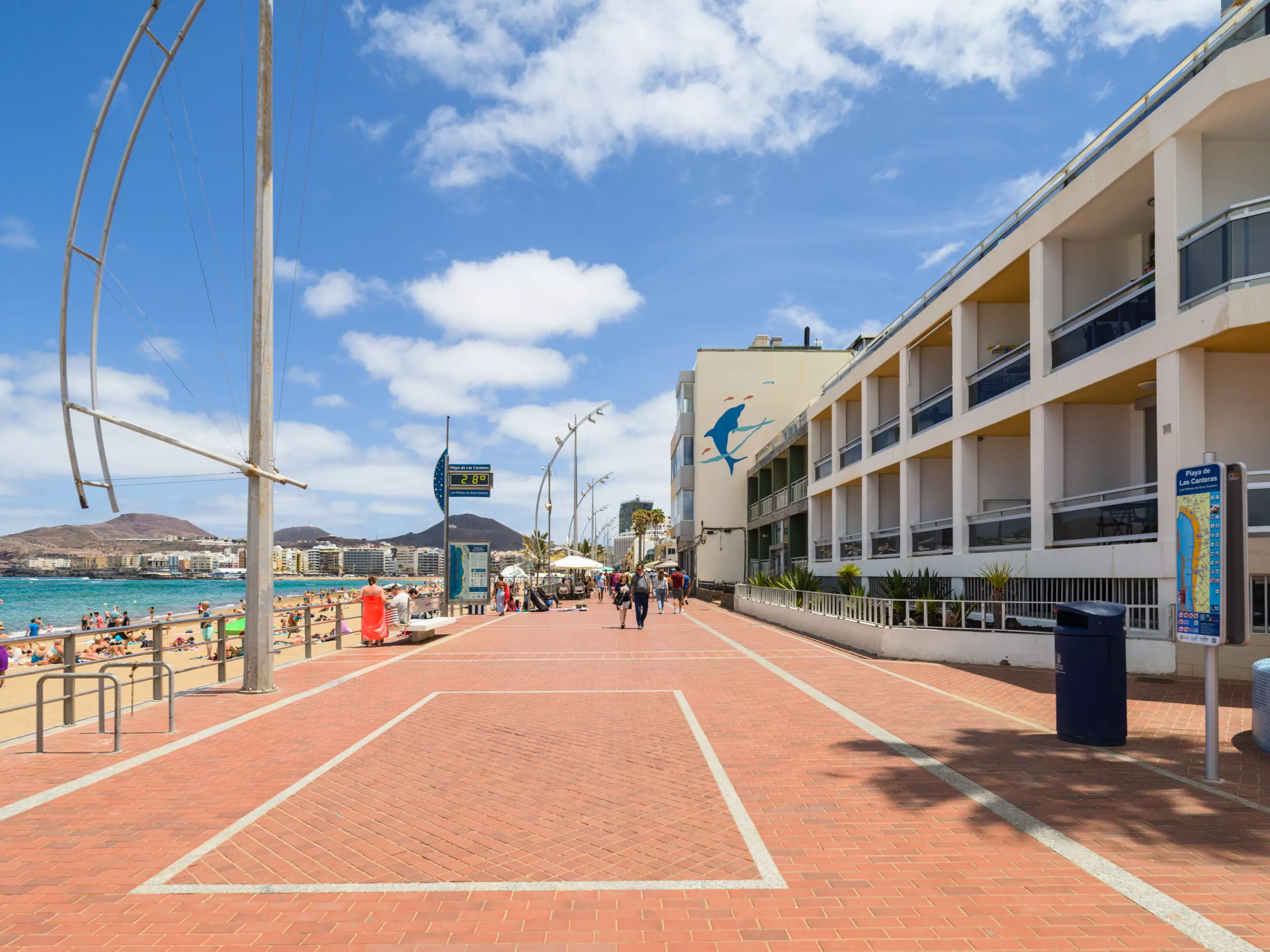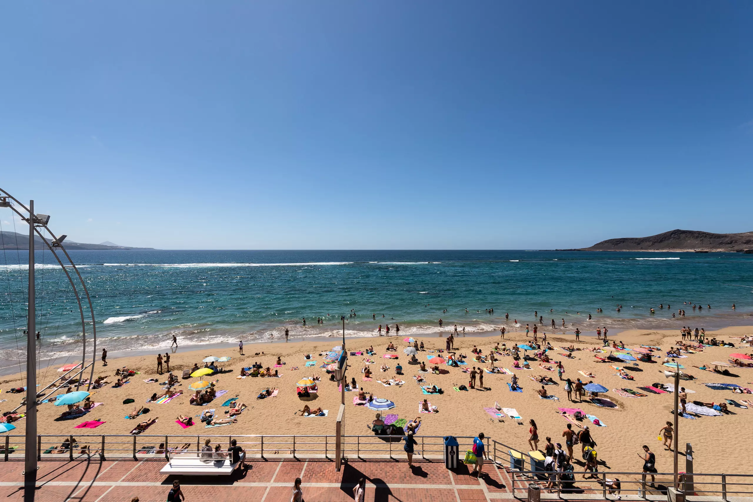 "La Playa de Las Canteras" is a long strip of sand, occupying approximately 3,800 meters of coastline, which extends along the bay.