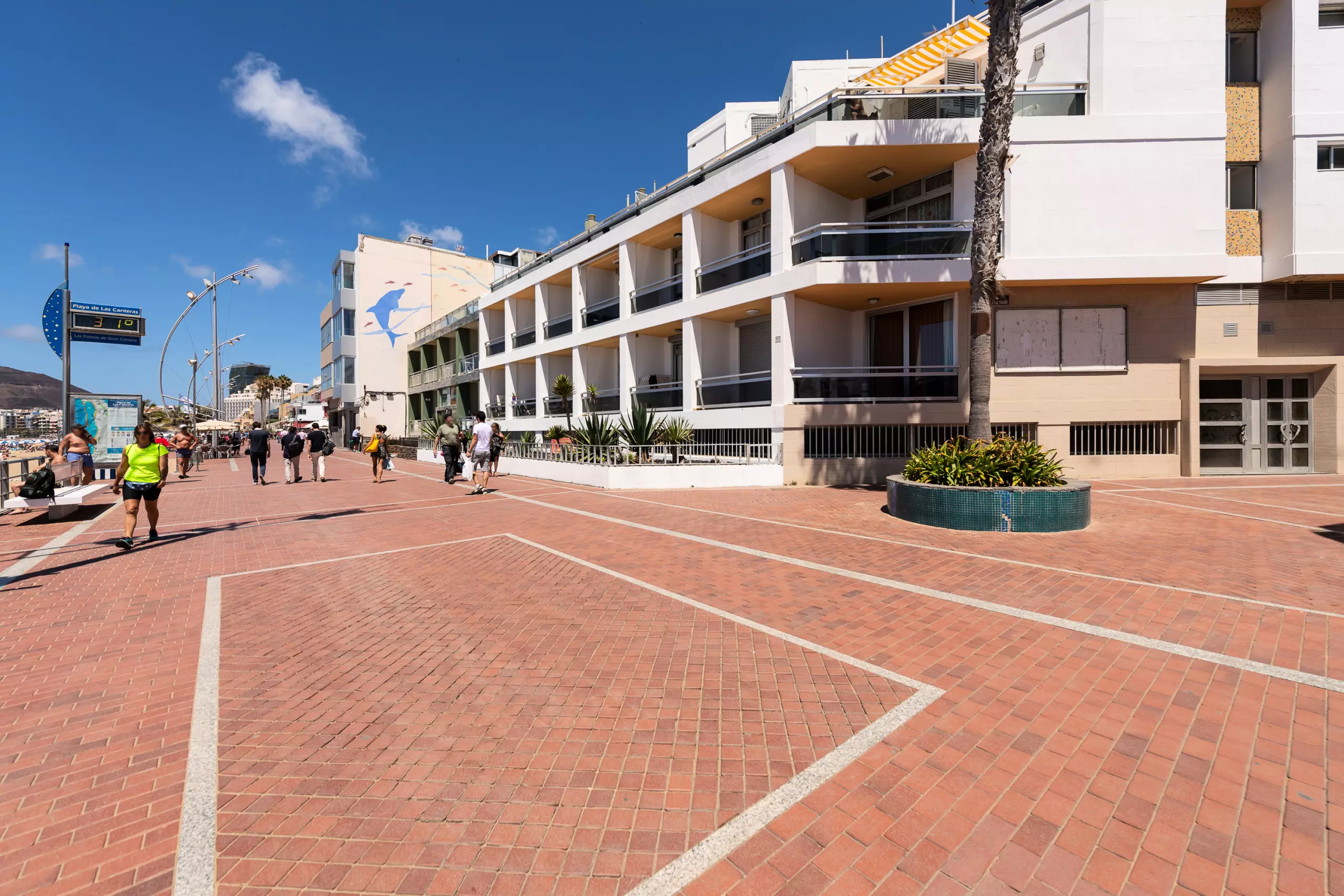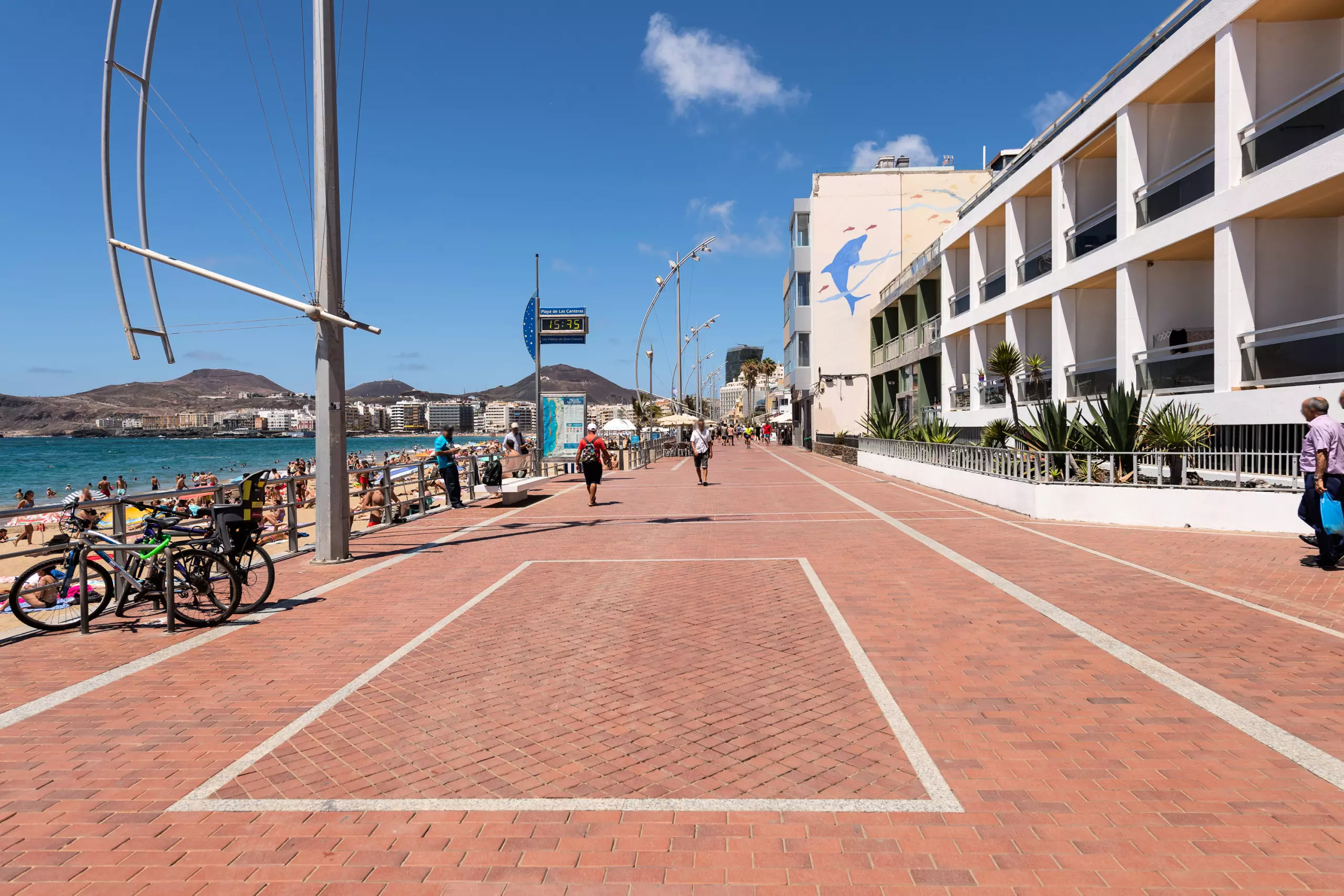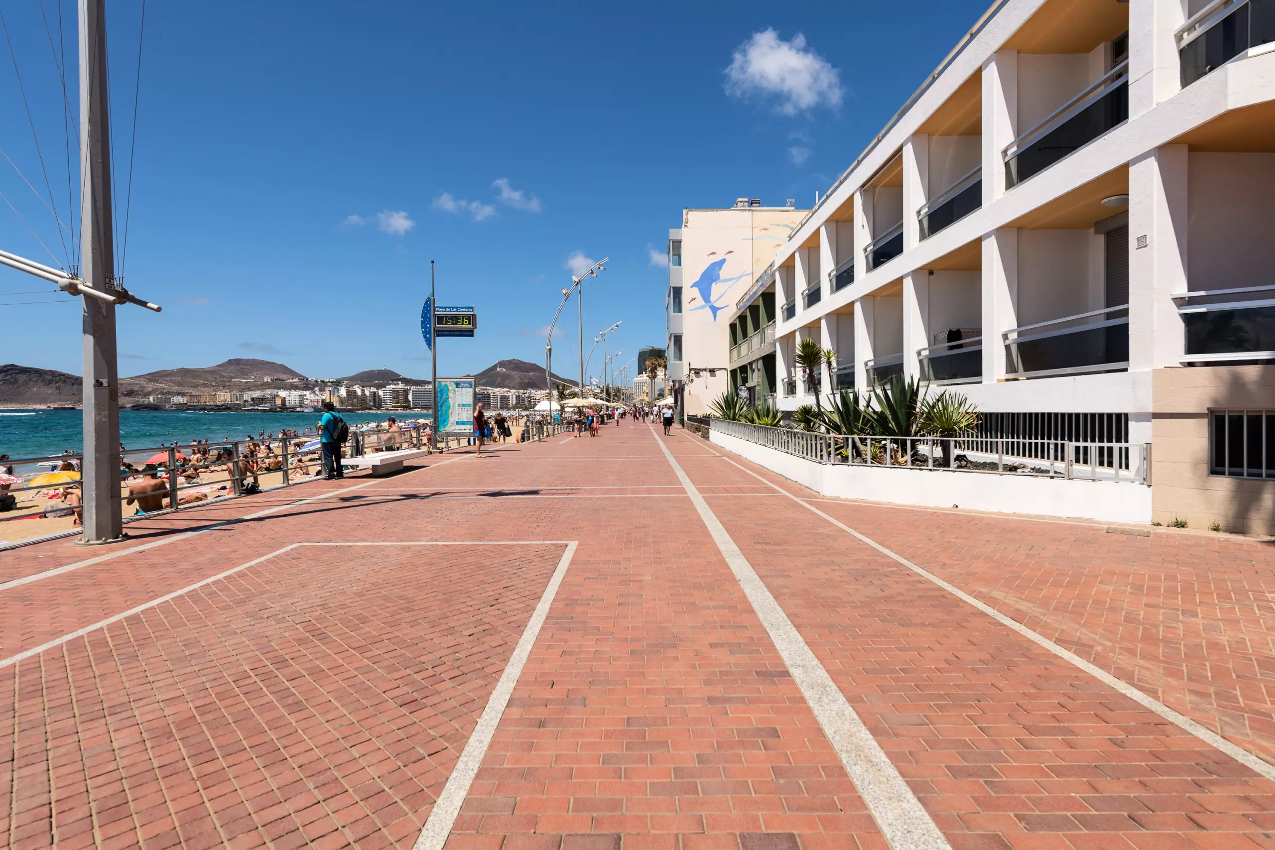 "La Playa de Las Canteras" is a long strip of sand, occupying approximately 3,800 meters of coastline, which extends along the bay.