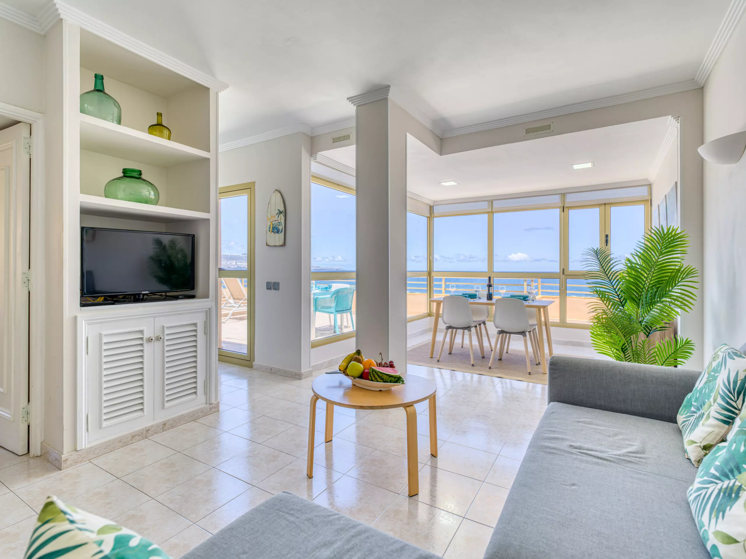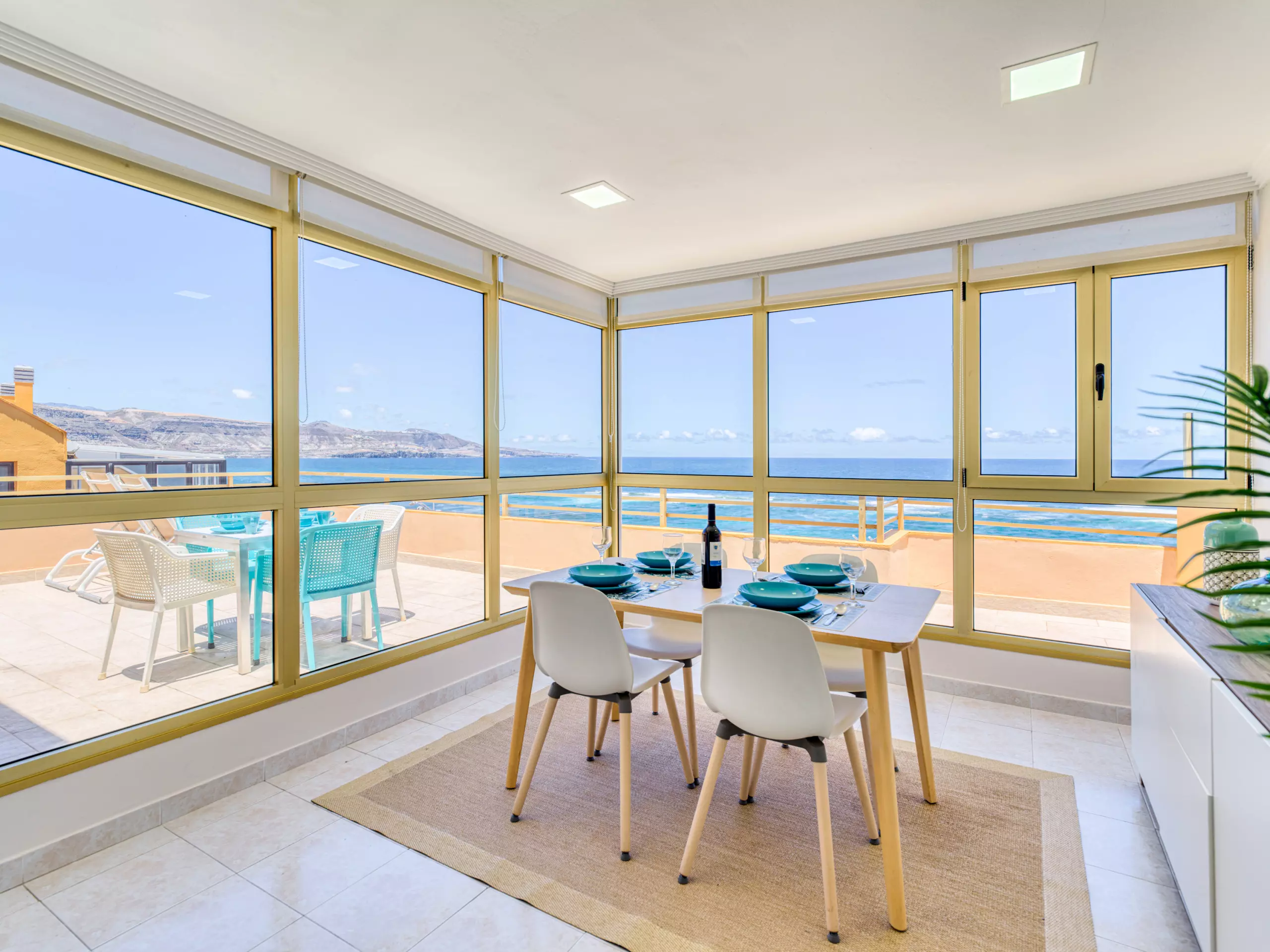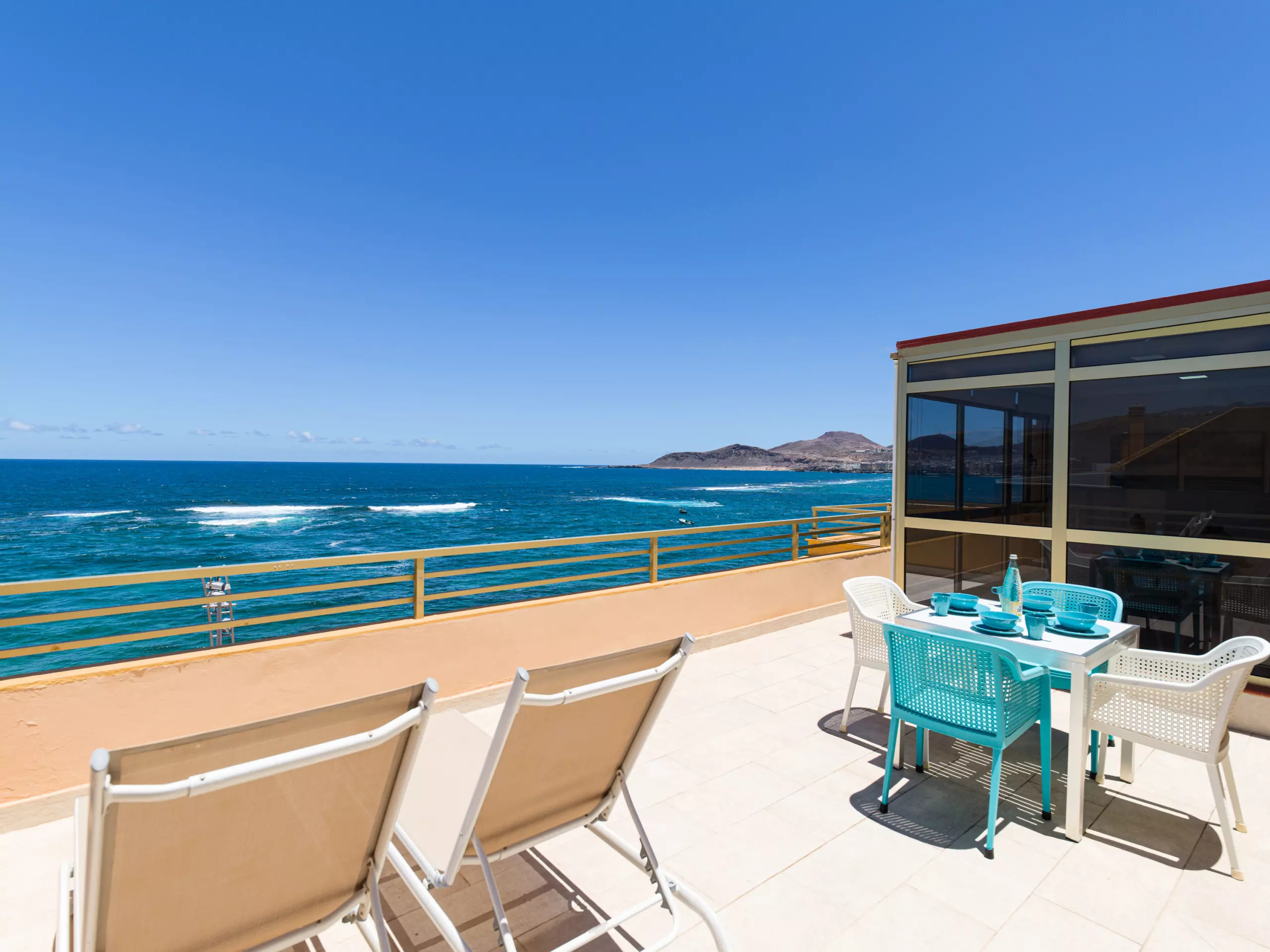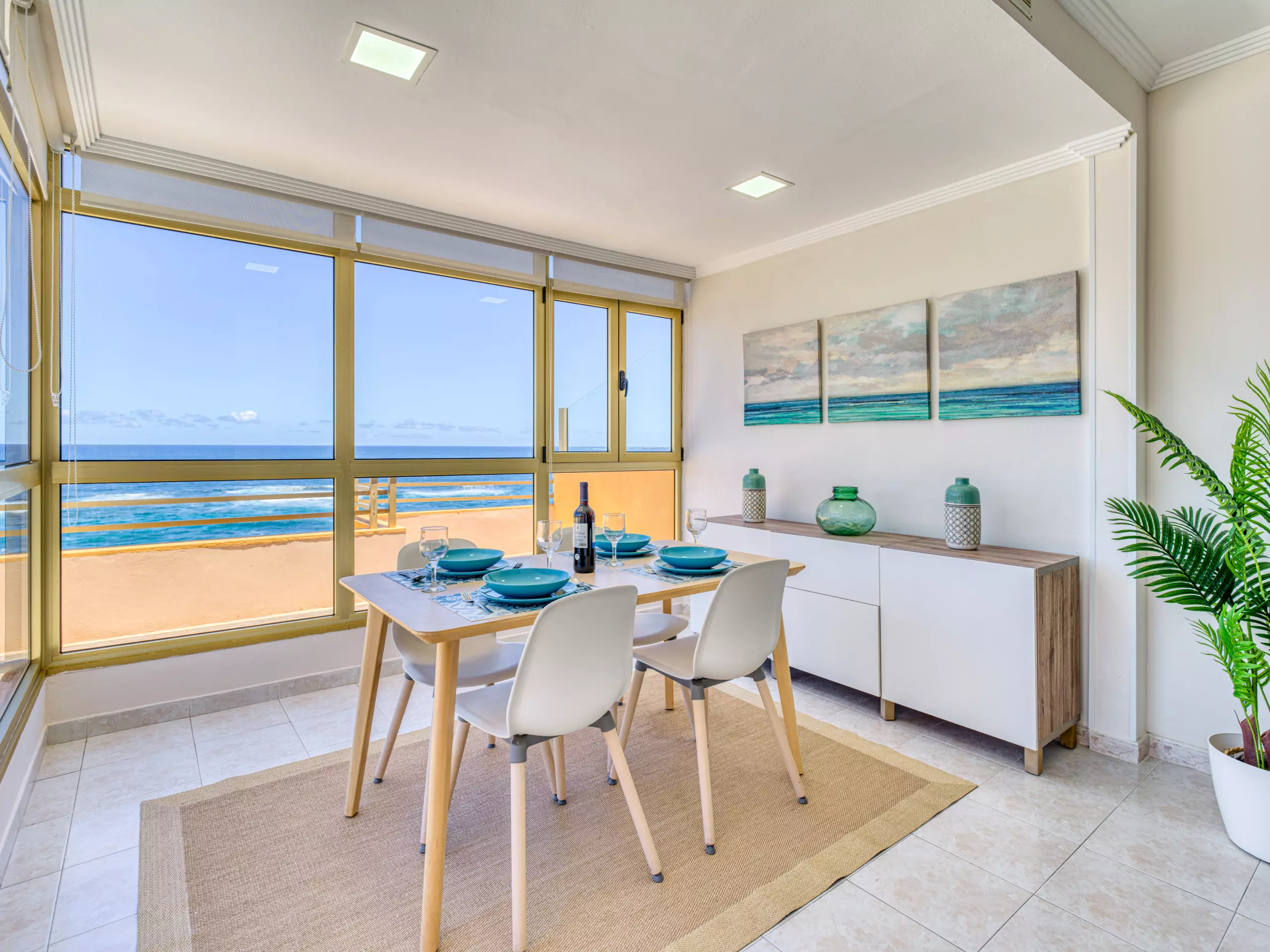 Beachfront holiday home, managed by CanariasGetaway, in Las Palmas de Gran Canaria with a large terrace overlooking the sea. It has a double bedroom and a sofa bed in the living room, allowing it to accommodate four people. It has a superb terrace where you can sunbathe, dine, and admire the incredible sunsets. The building has large communal areas, including its beautiful seaside pool, located just behind the building's reception. You must climb a few steps and use the gate key to access it.