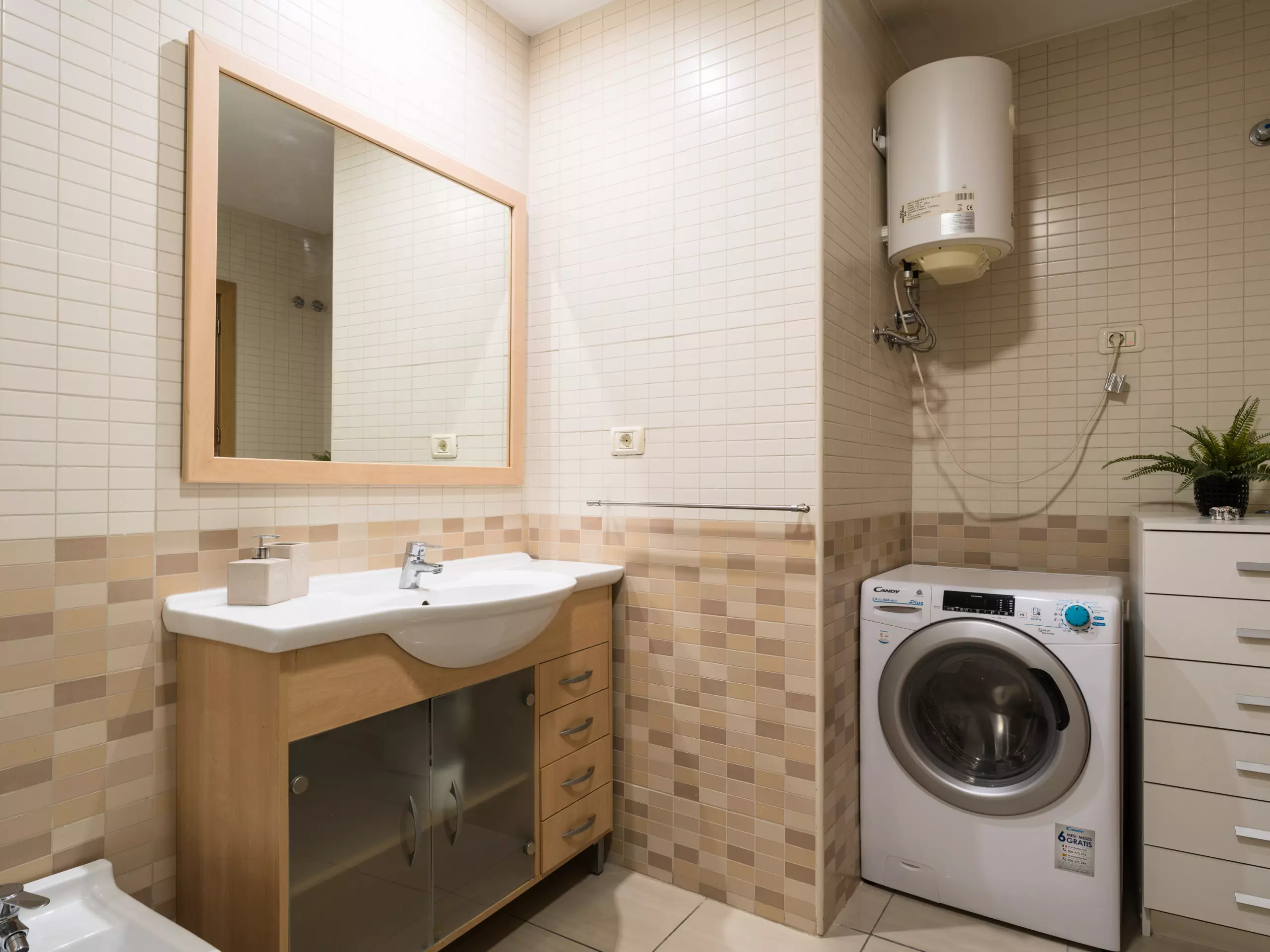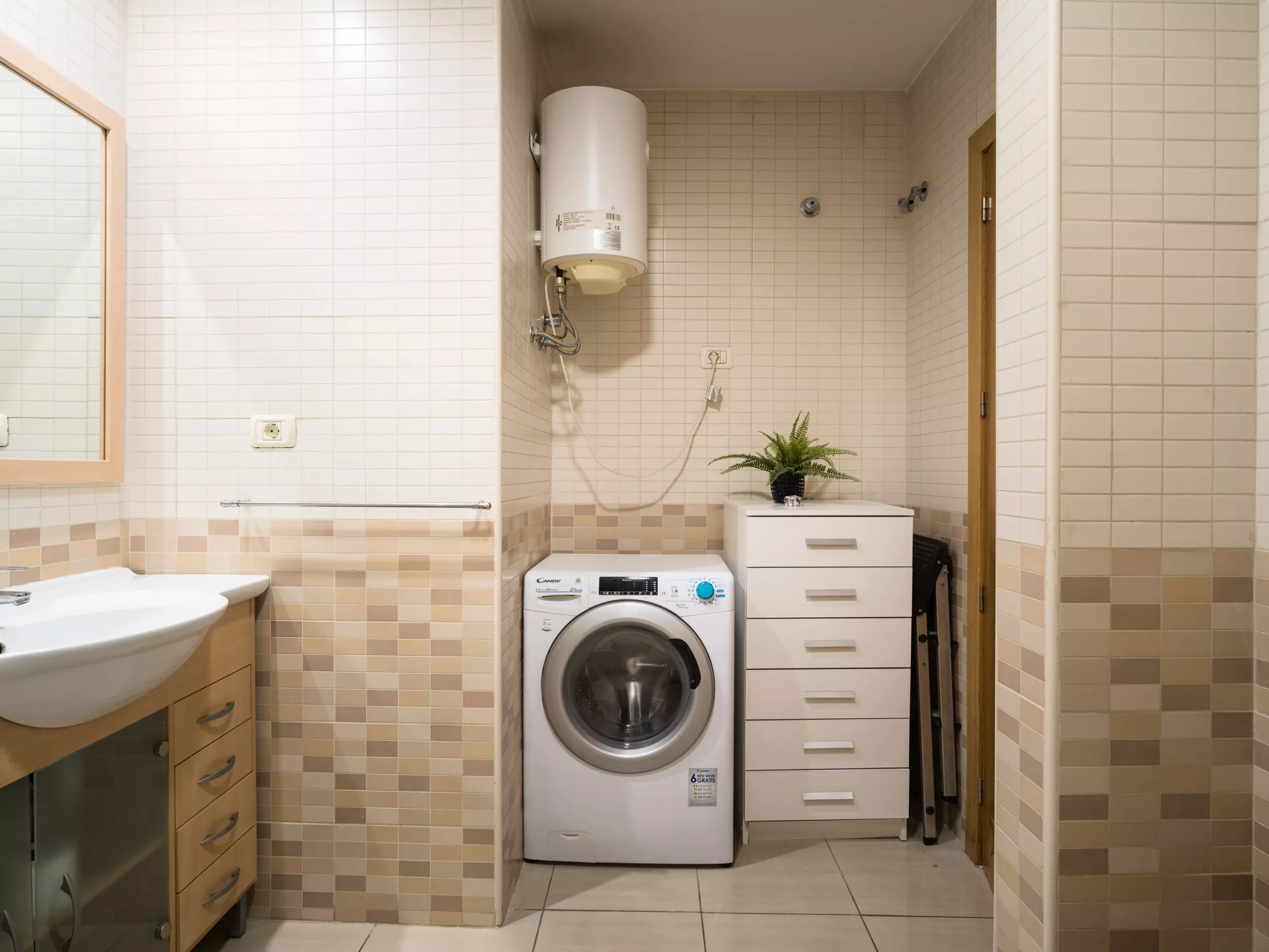 Fully equipped American-style kitchen with ceramic hob, refrigerator, microwave, oven, freezer, washing machine, dishes/cutlery, kitchen utensils, coffee maker and kettle. Iron, hairdryer, Smart TV and unlimited Wi-Fi internet service.