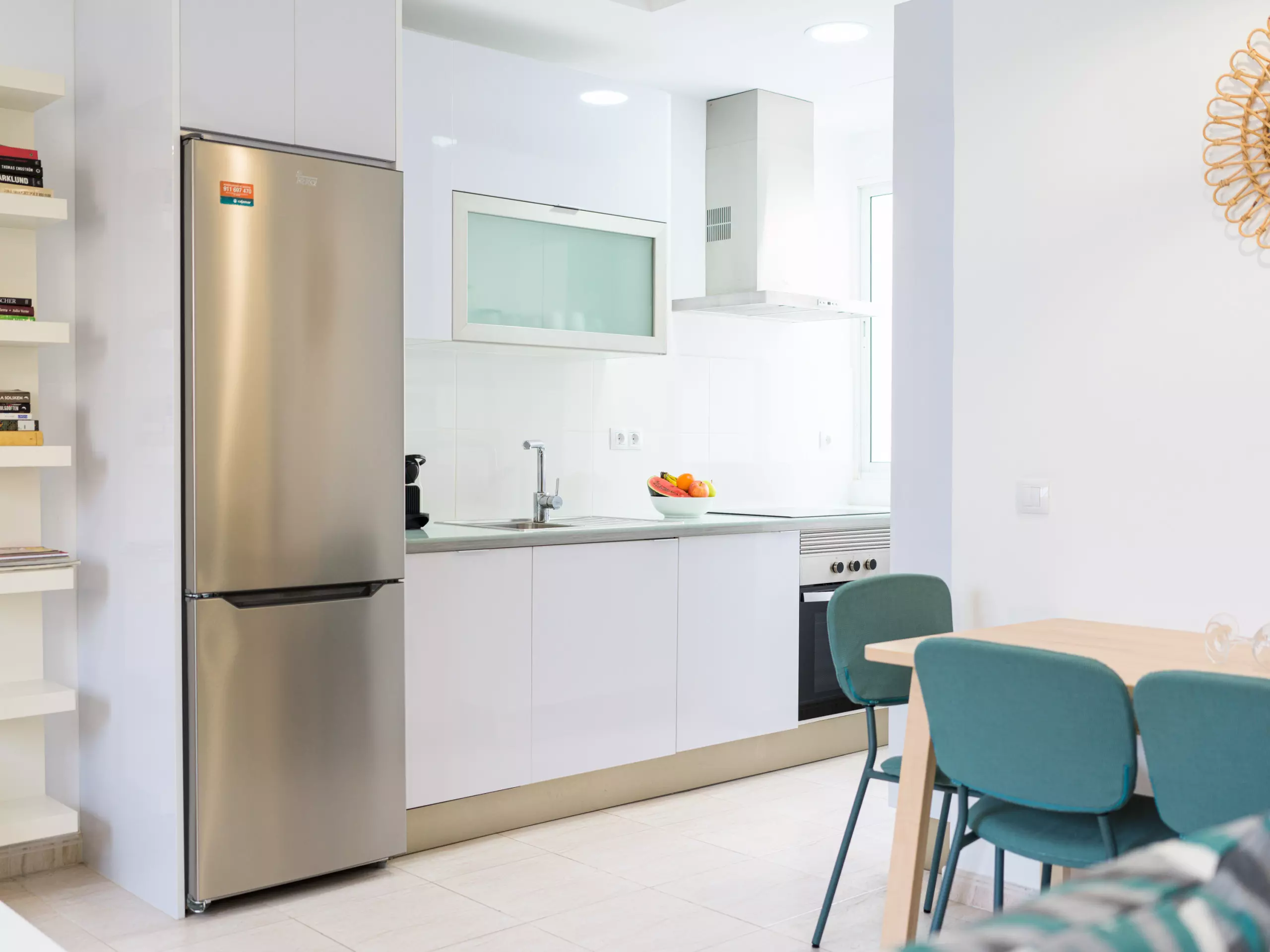 The fully equipped property has all the necessary comforts for a holiday or even long periods of teleworking, as it has unlimited Wi-Fi internet access and a large table in the living room, which can be used as a dining room or office with sea views, an iron, a hairdryer and a Smart TV.