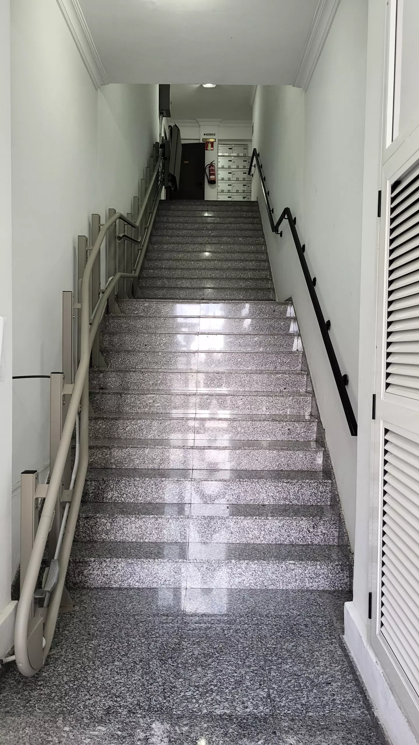 The entrance to the building has stairs of about twenty steps that give access to the elevator, from which you can access the fifth floor where the accommodation is located.