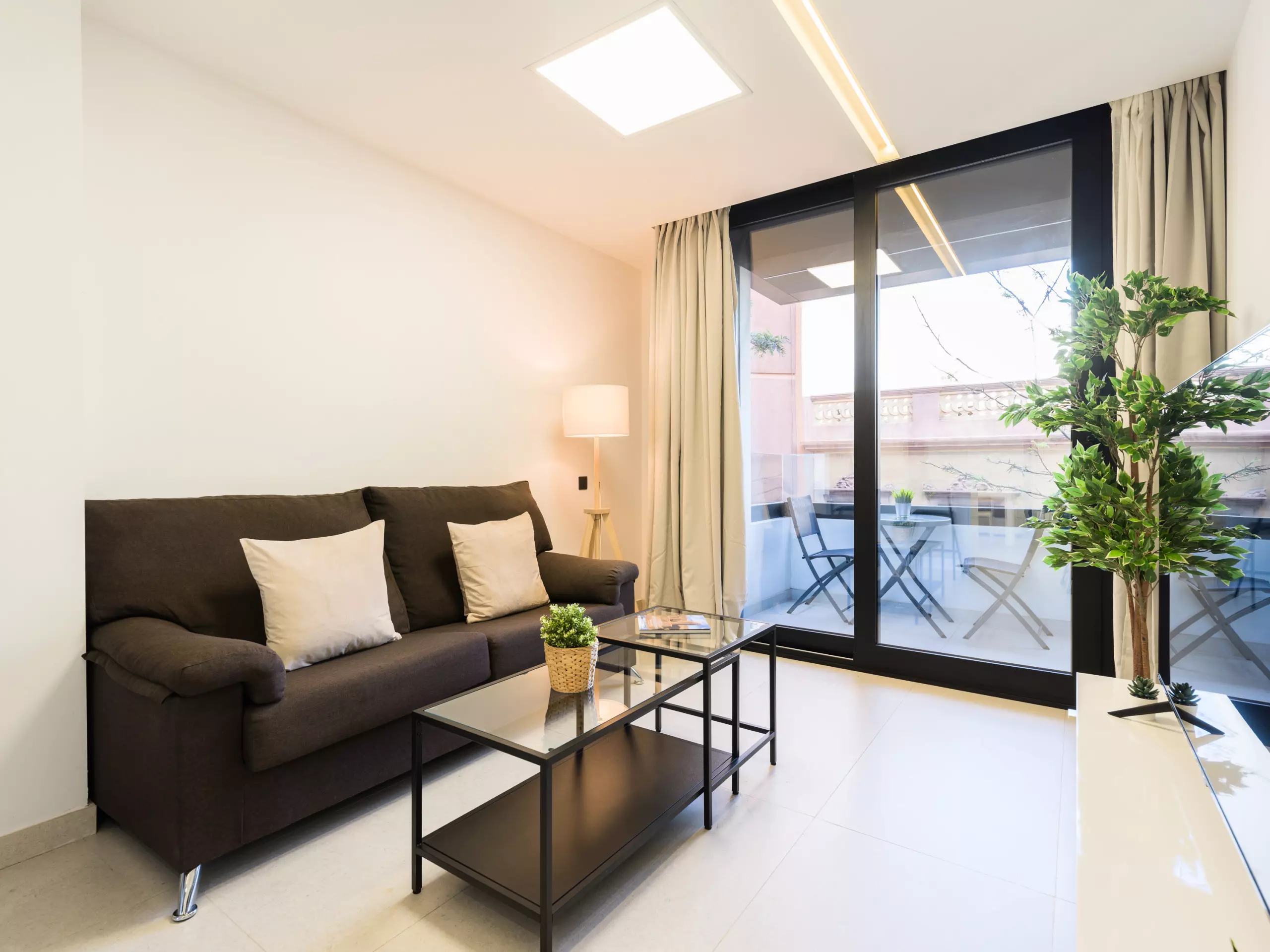 Upon entering, large windows flood the room with natural light, creating a spacious and bright atmosphere. Relax on the comfortable sofa or armchairs after a day of exploring.