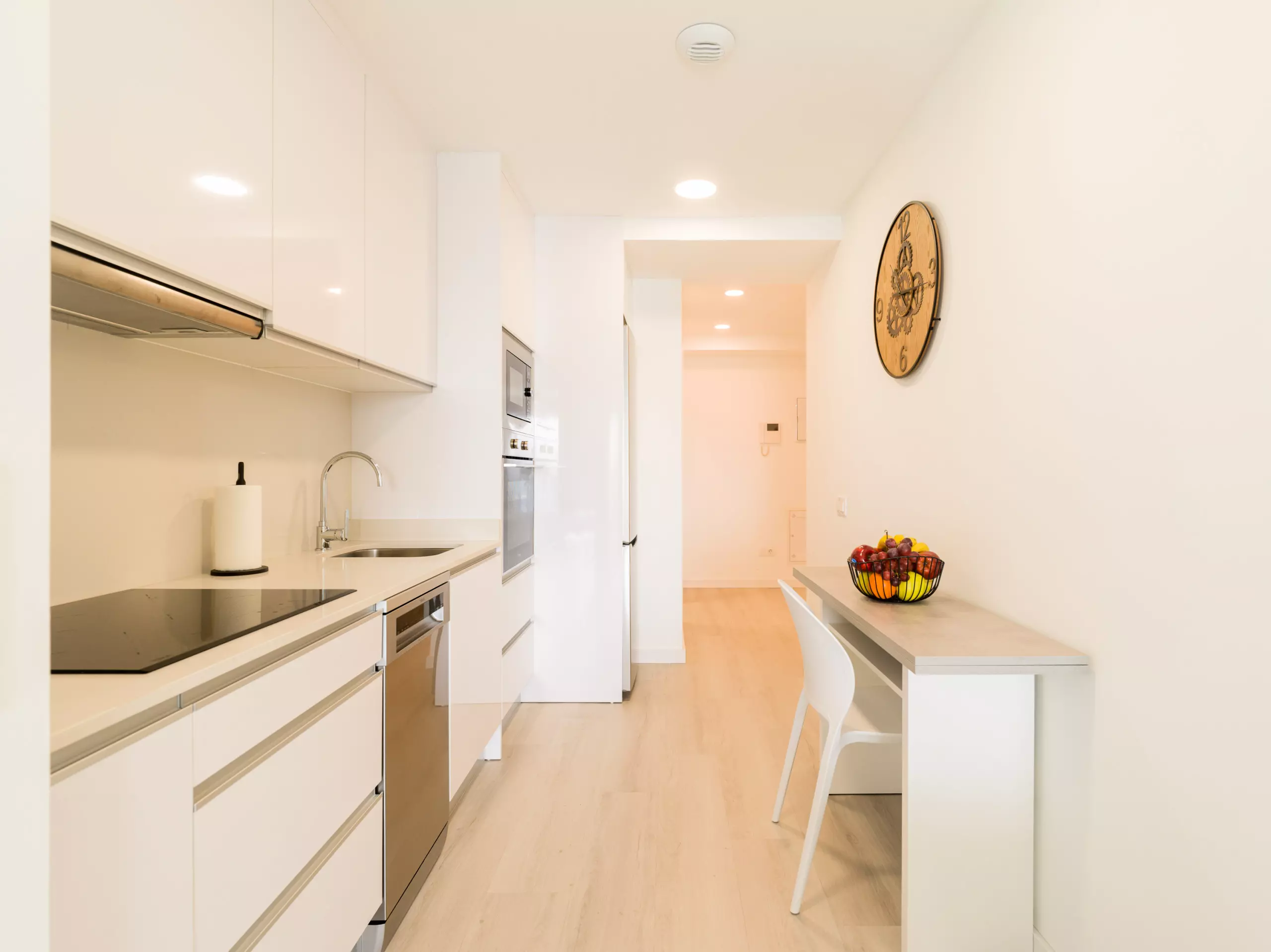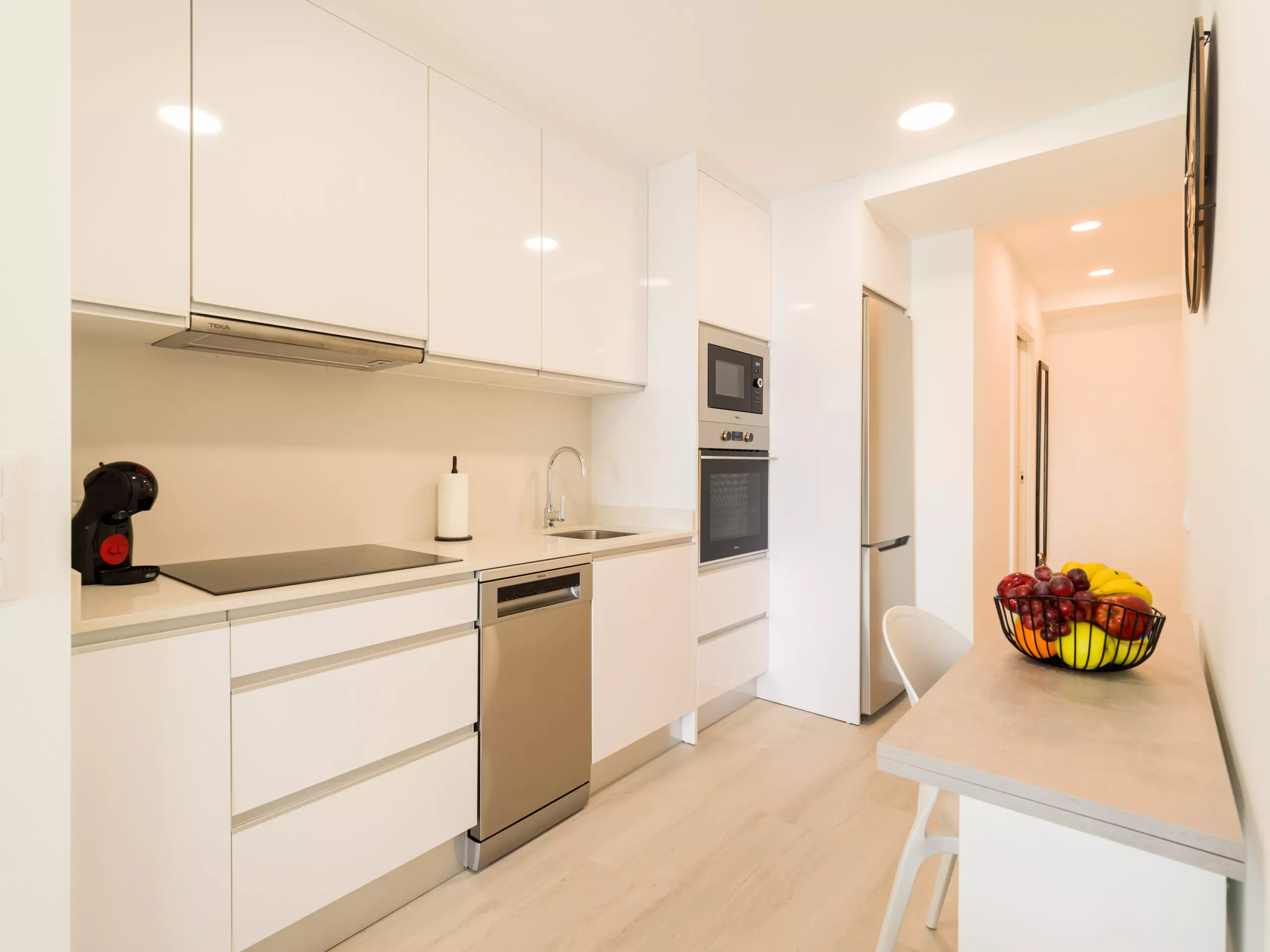 The kitchen is fully equipped with a ceramic hob, refrigerator, microwave, oven, freezer, washing machine, dishwasher, dishes, cutlery, kitchen utensils, coffee maker, toaster, and kettle. All designed to make you feel at home. The accommodation also features air conditioning, fast Wi-Fi, and a Smart TV.