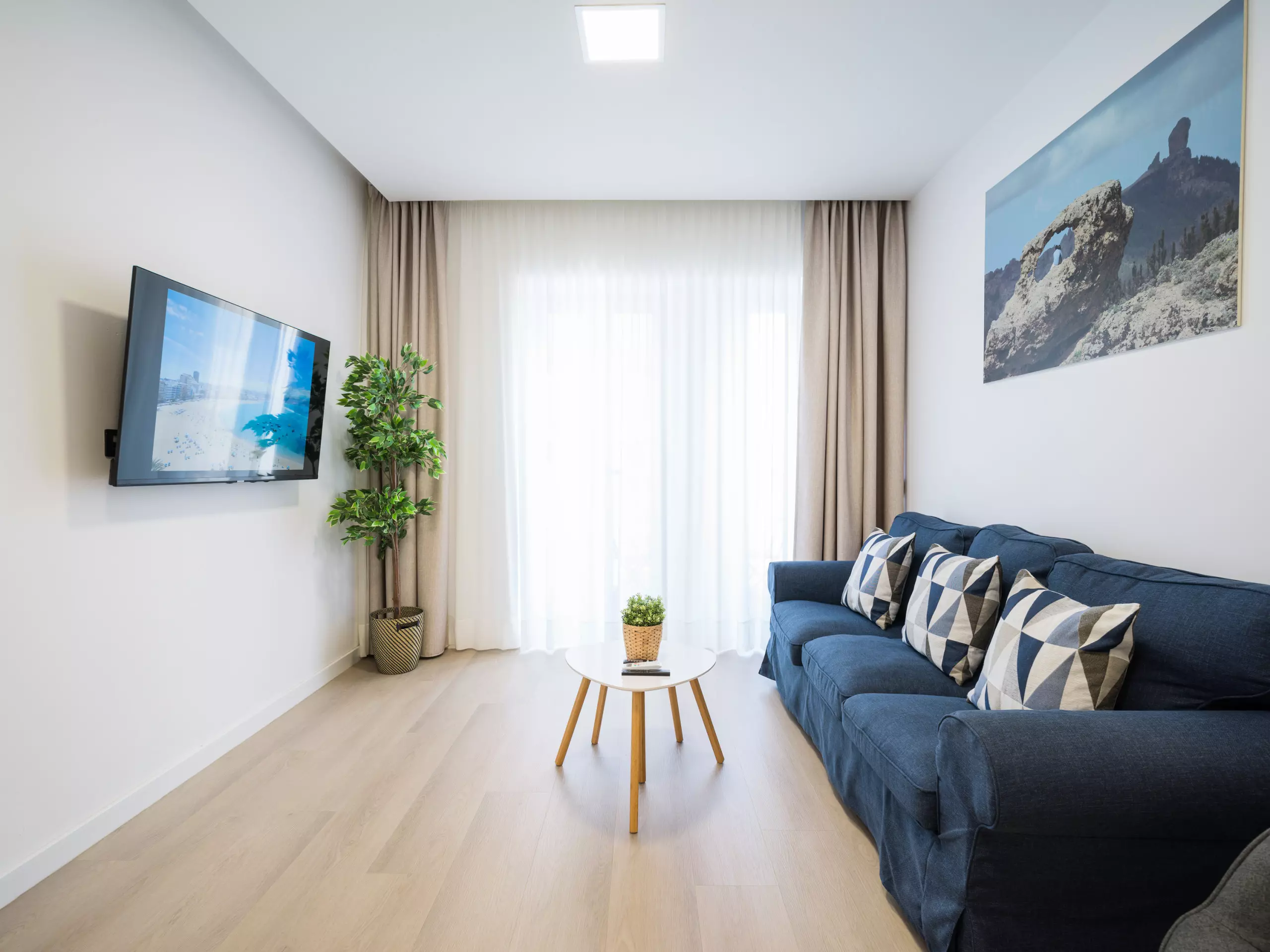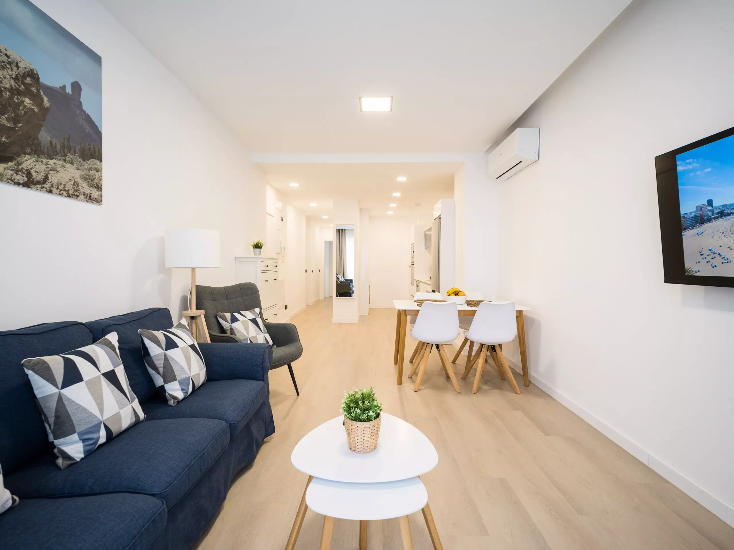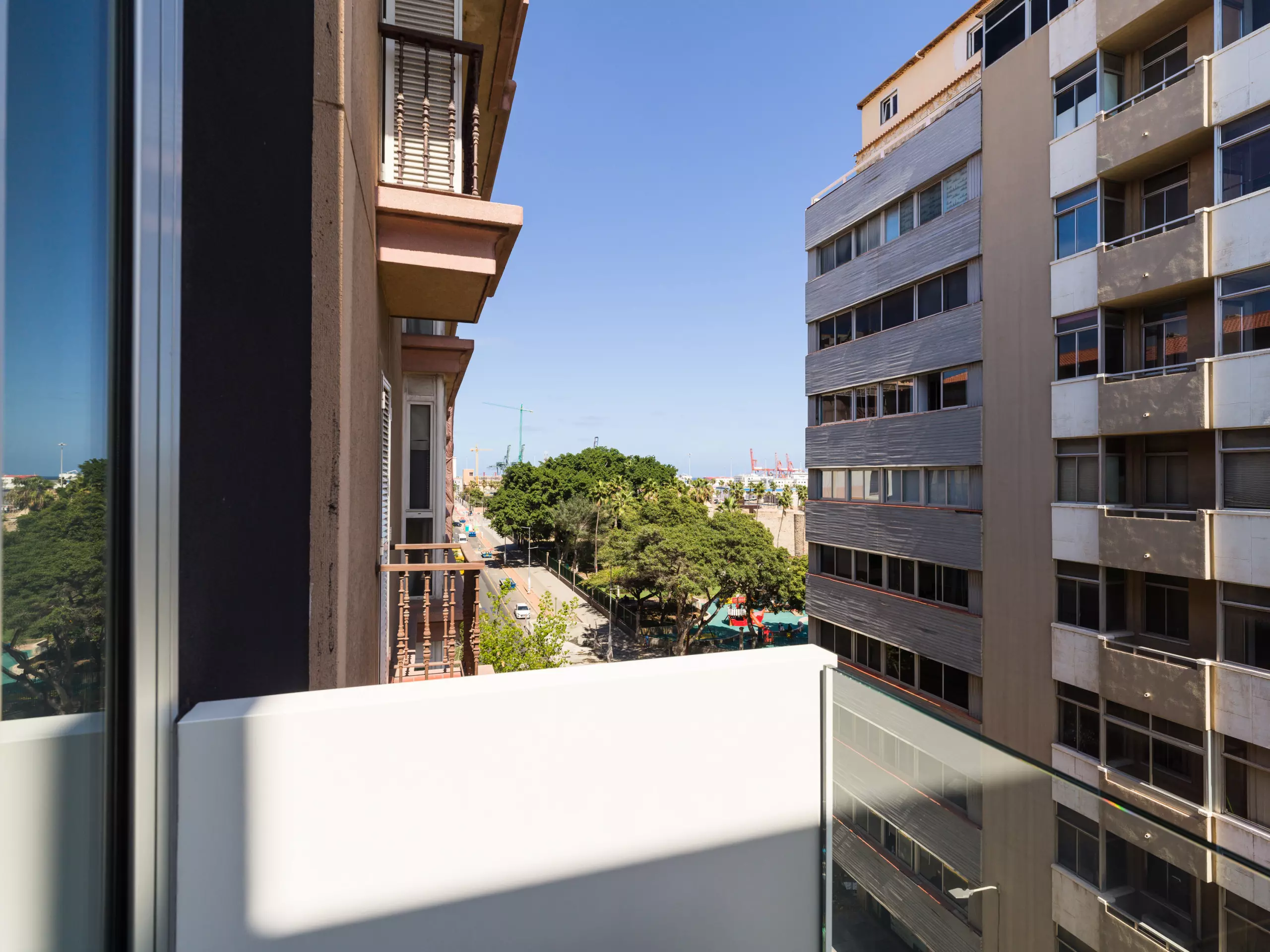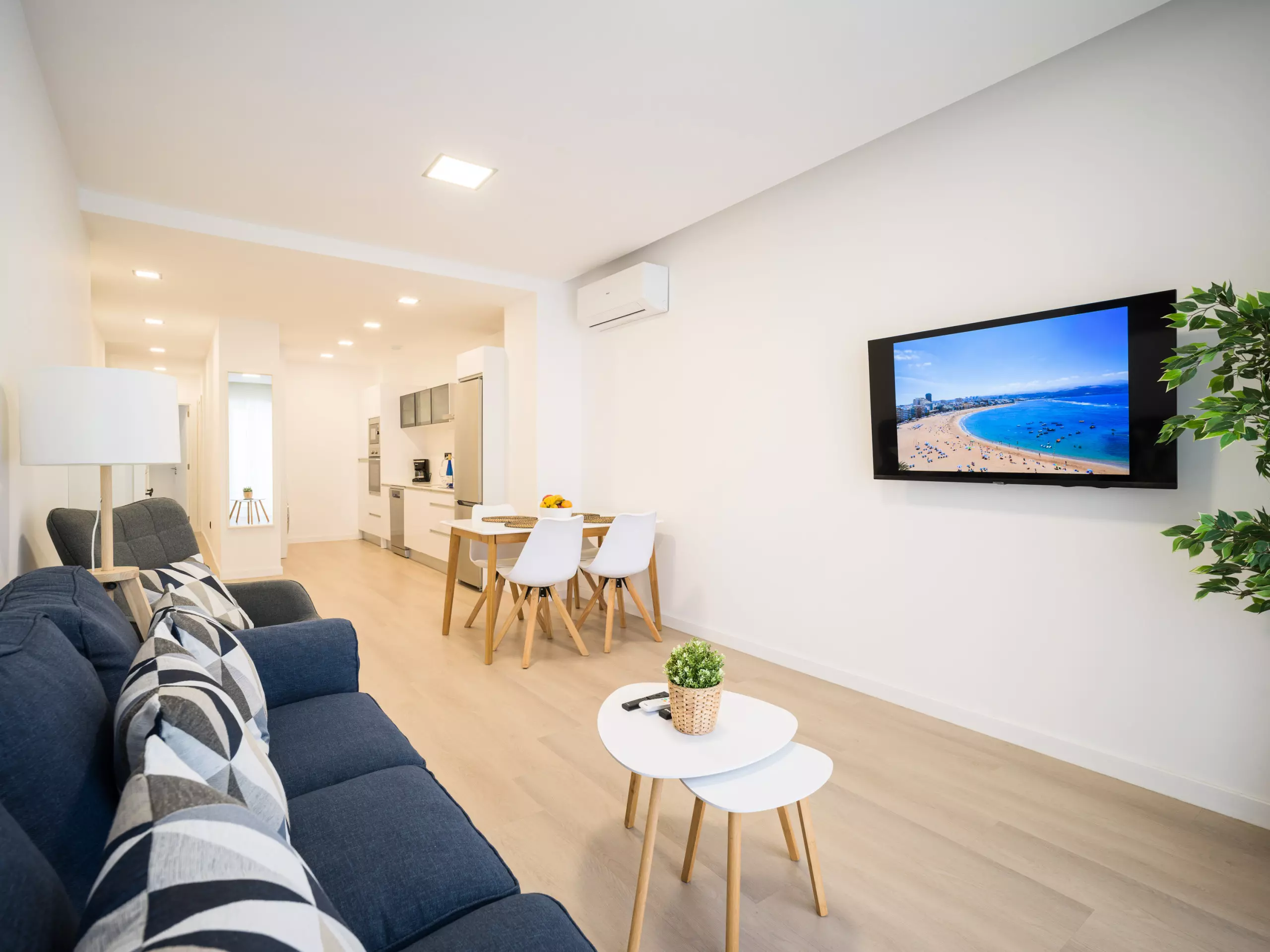 The apartment is located 400 meters from the best area of Las Canteras Beach and 1 km from the emblematic Santa Catalina Park. Located on Juan Rejón Street, which gives it tranquility, as only the living room overlooks Juan Rejón Street, while the other rooms open onto spacious interior patios.