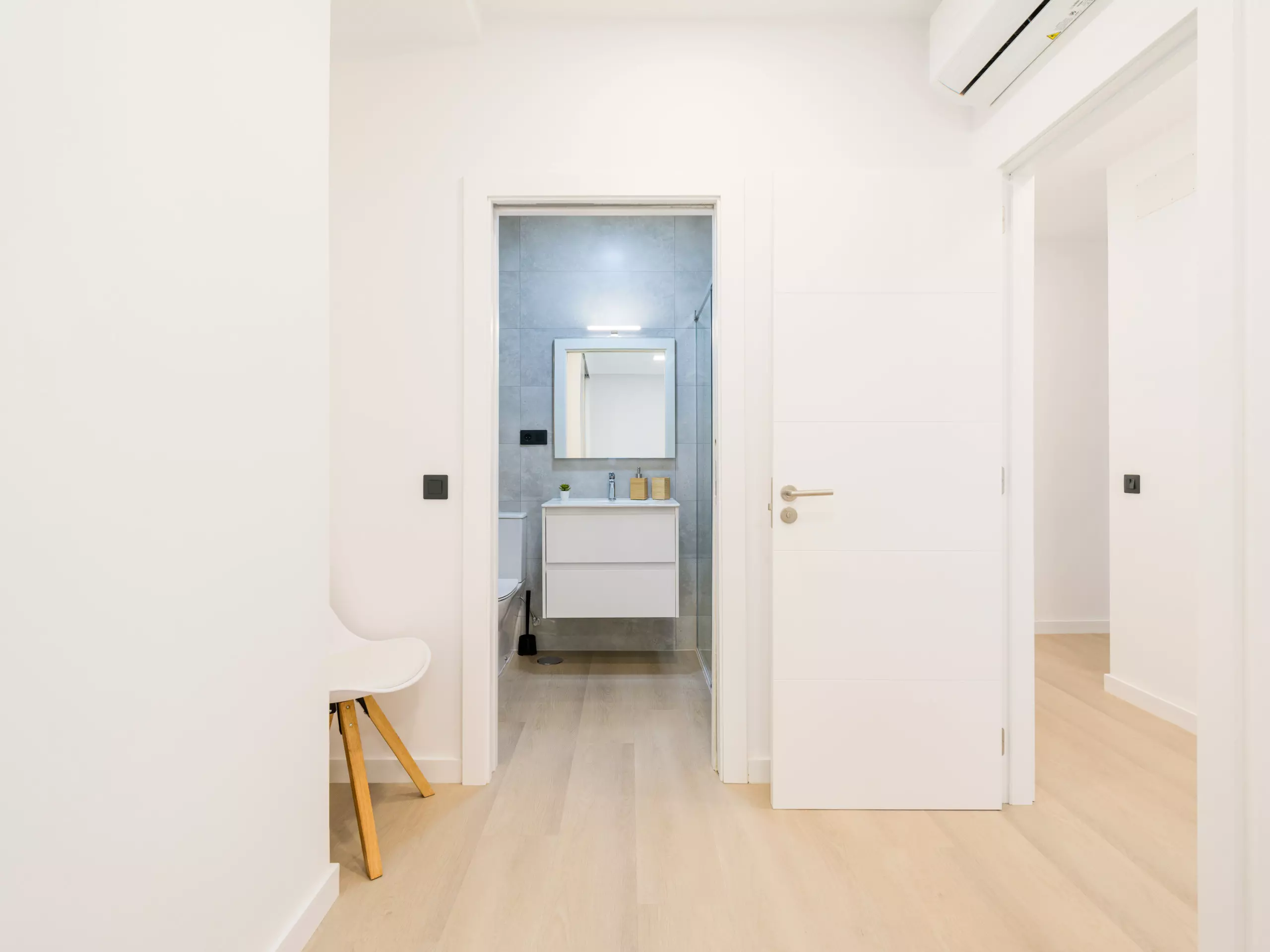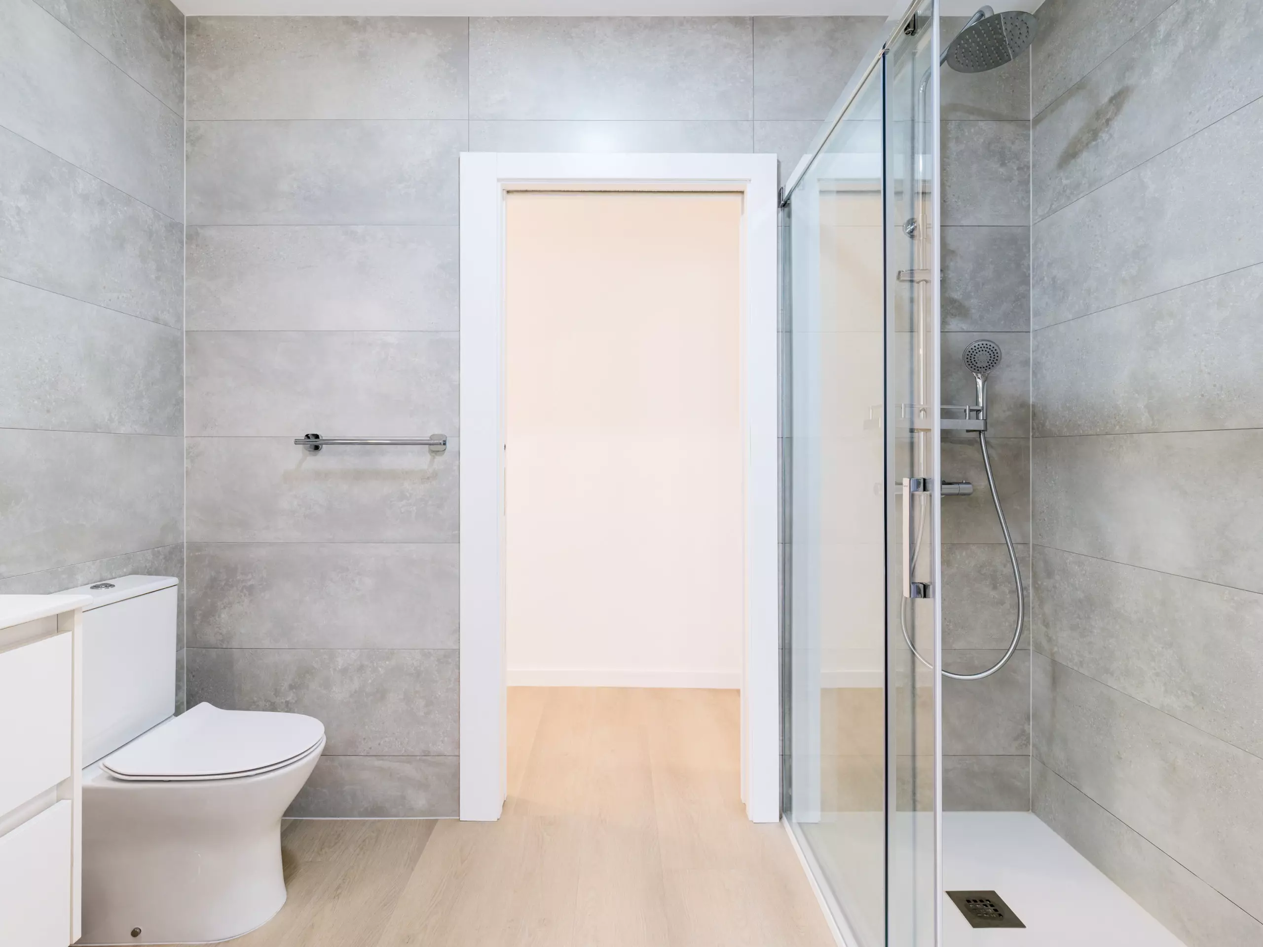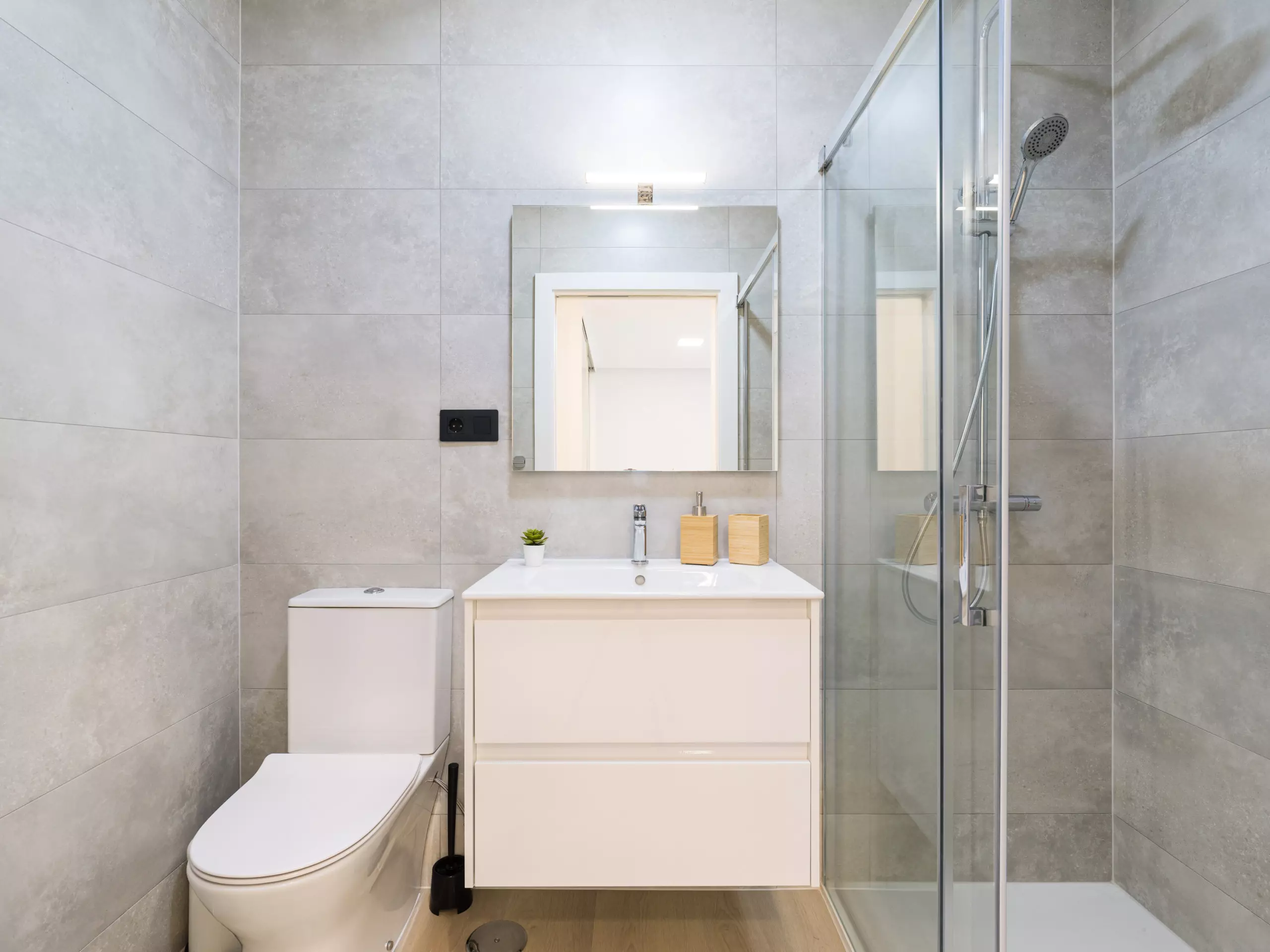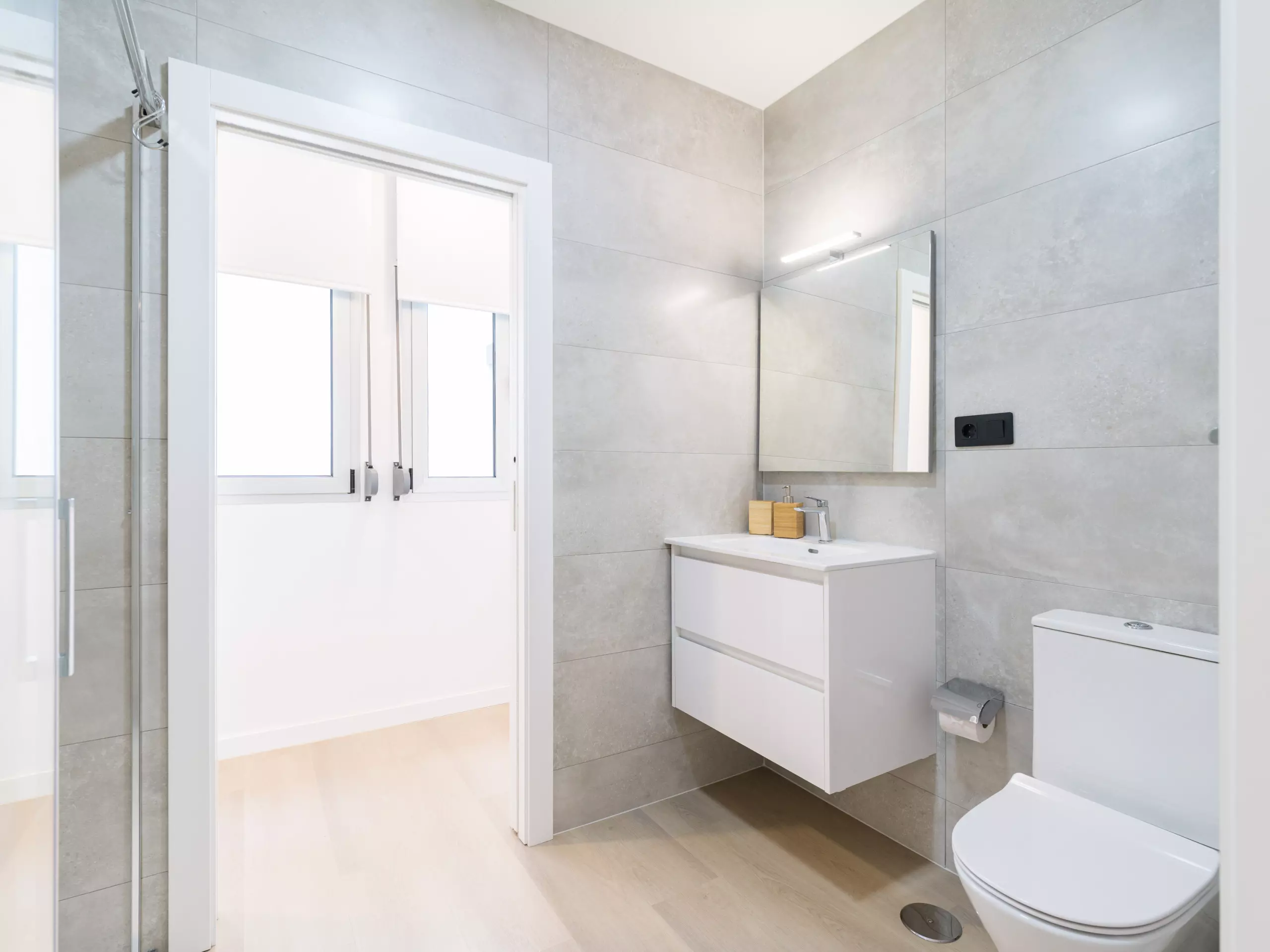 The bathrooms have large showers and all the necessary sanitary equipment, with a modern and contemporary design.