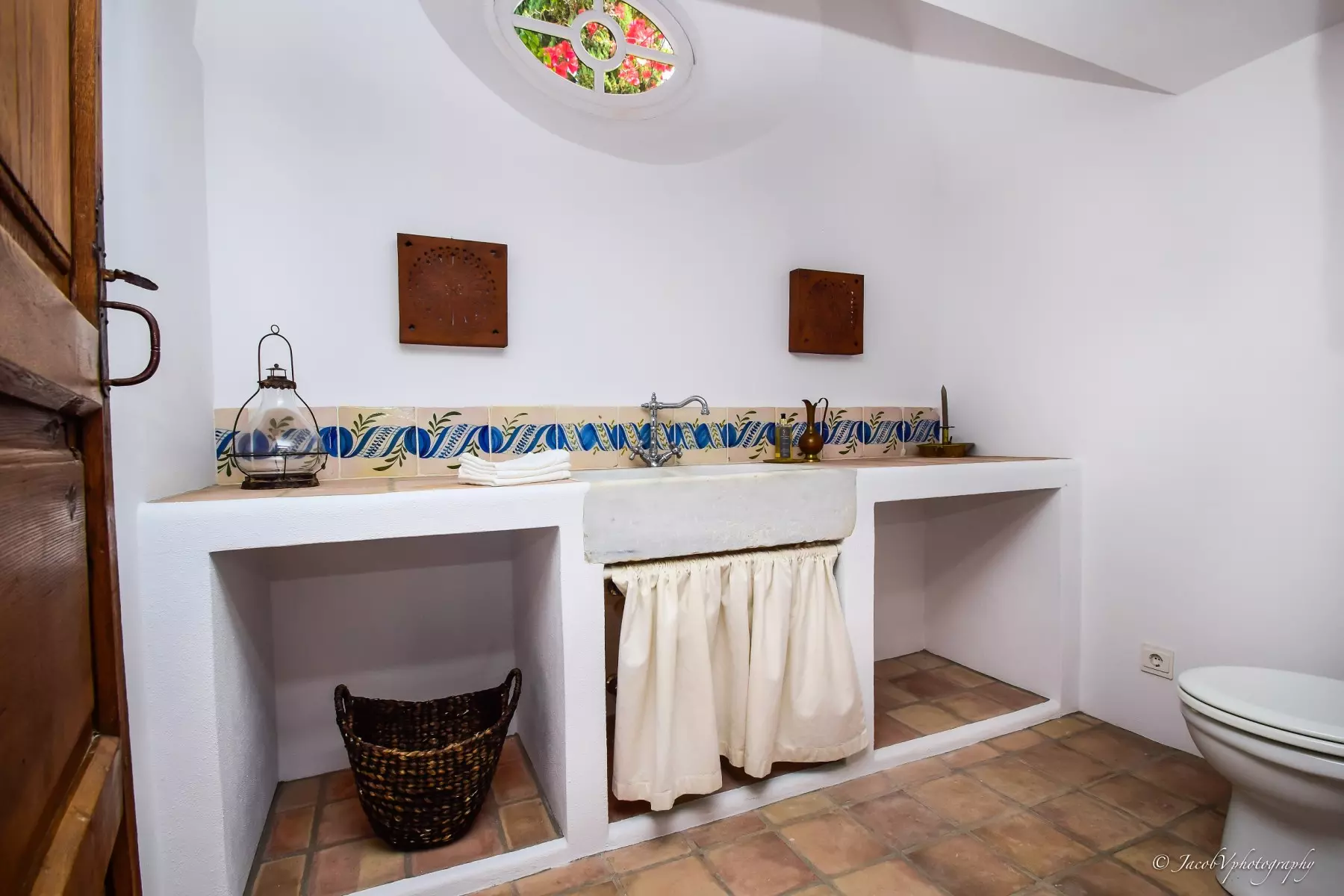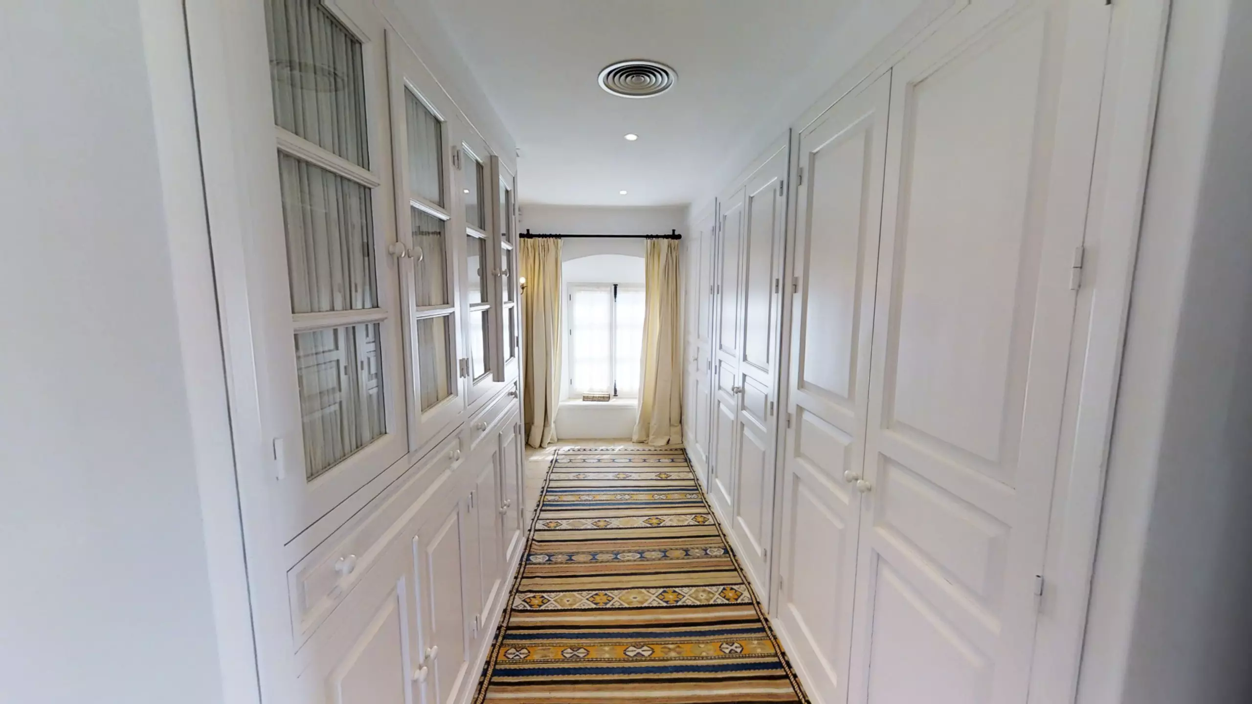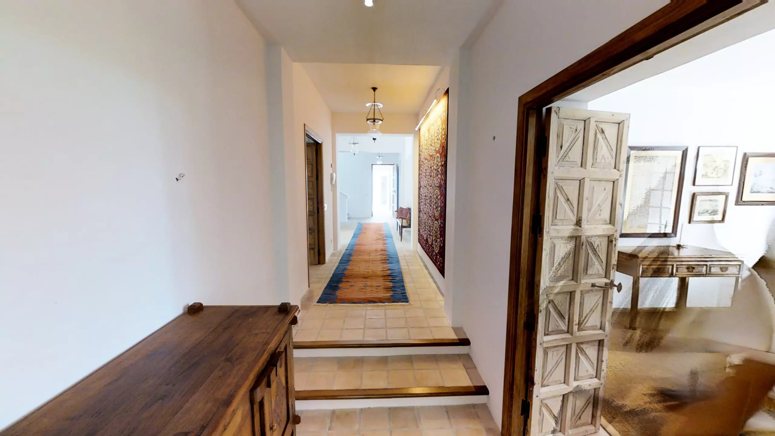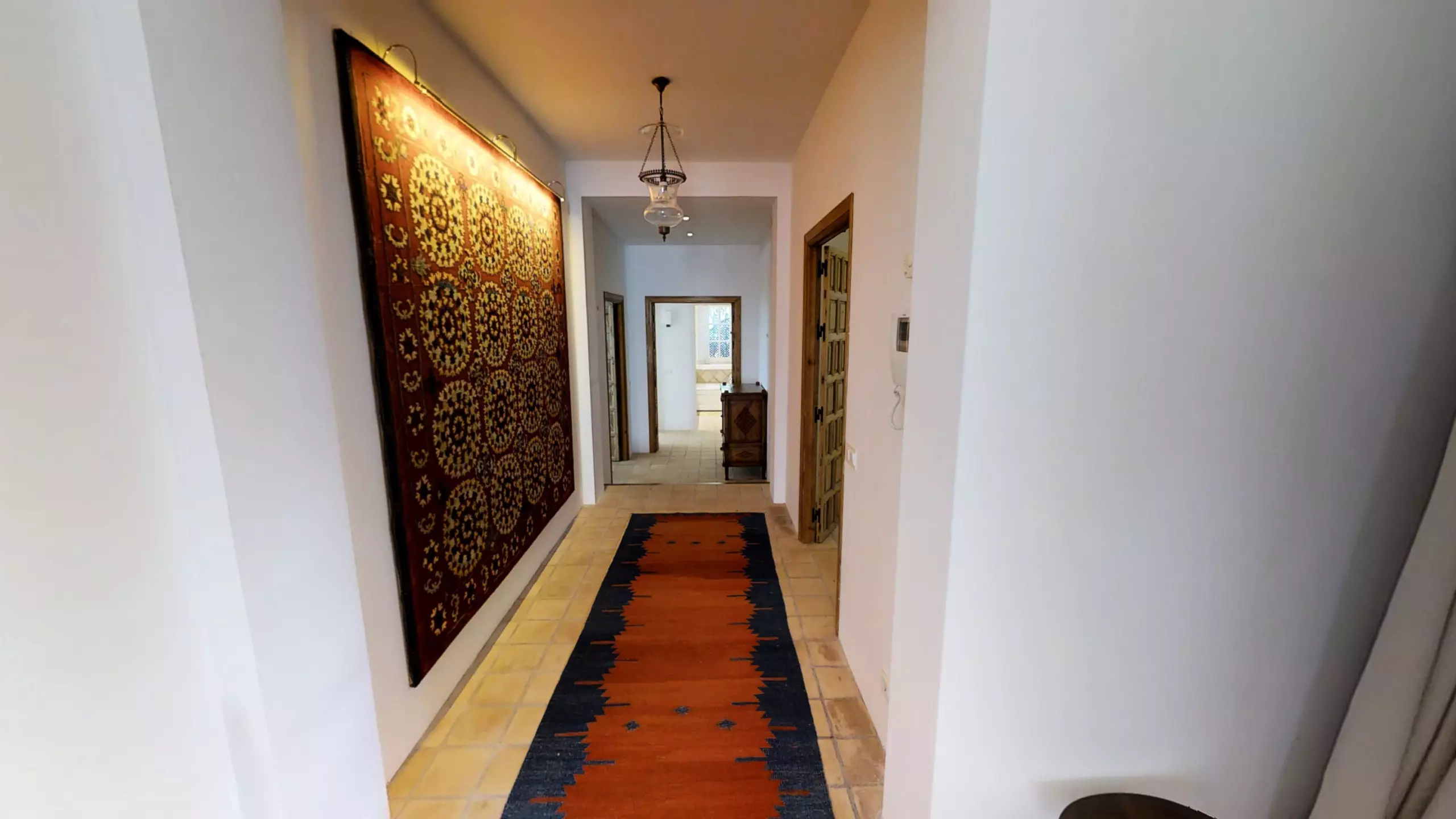 Upon entering the villa through a period wooden door, the villa presents itself with high ceilings. The spacious hallway provides access to a guest toilet, the dining room, the interior, the kitchen, and four bedrooms on the ground floor. The fifth (master bedroom) and sixth bedroom are located on the floor.