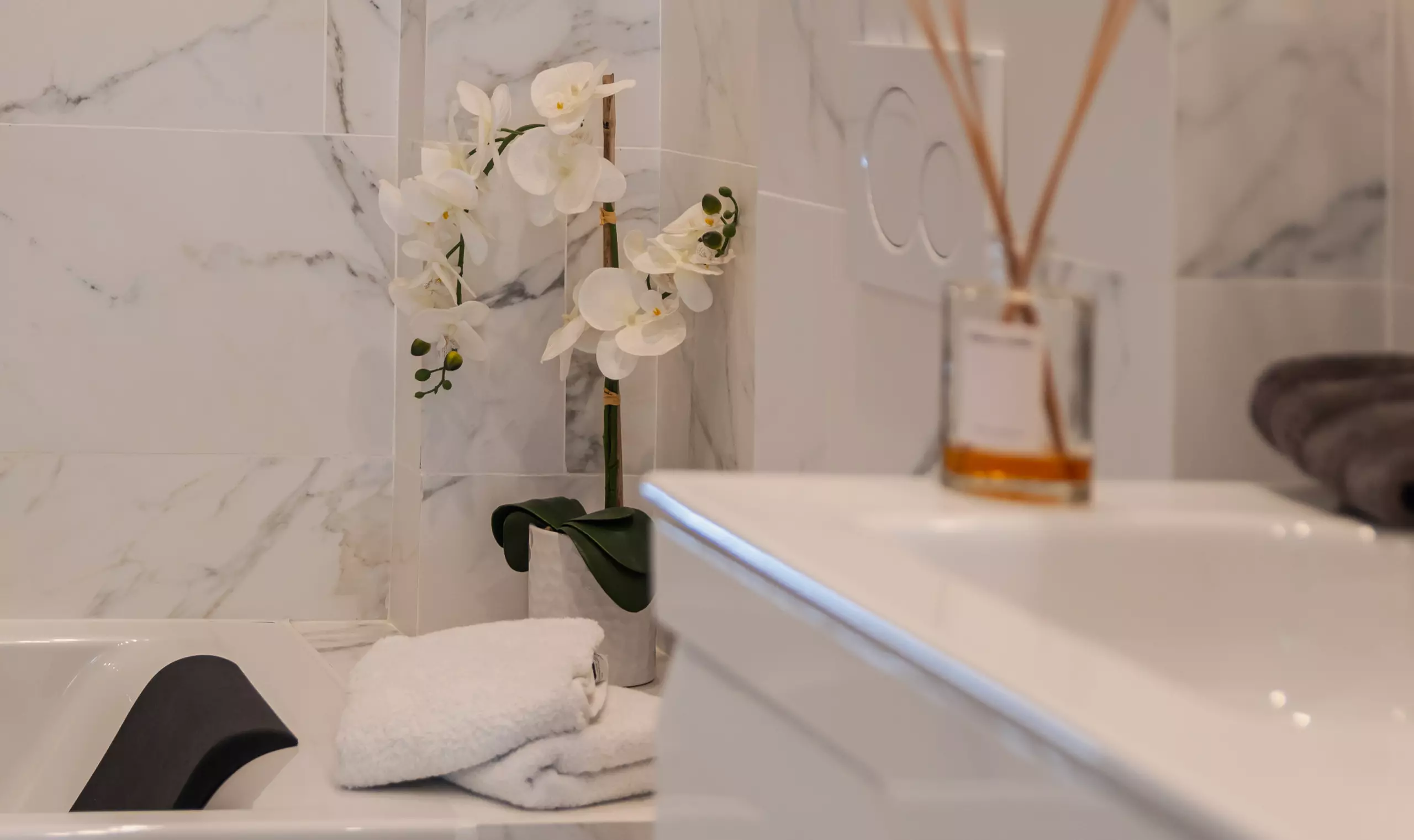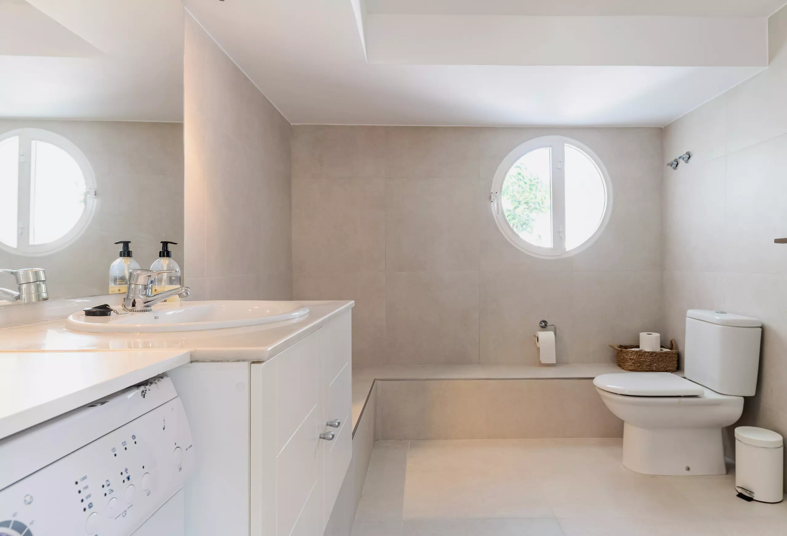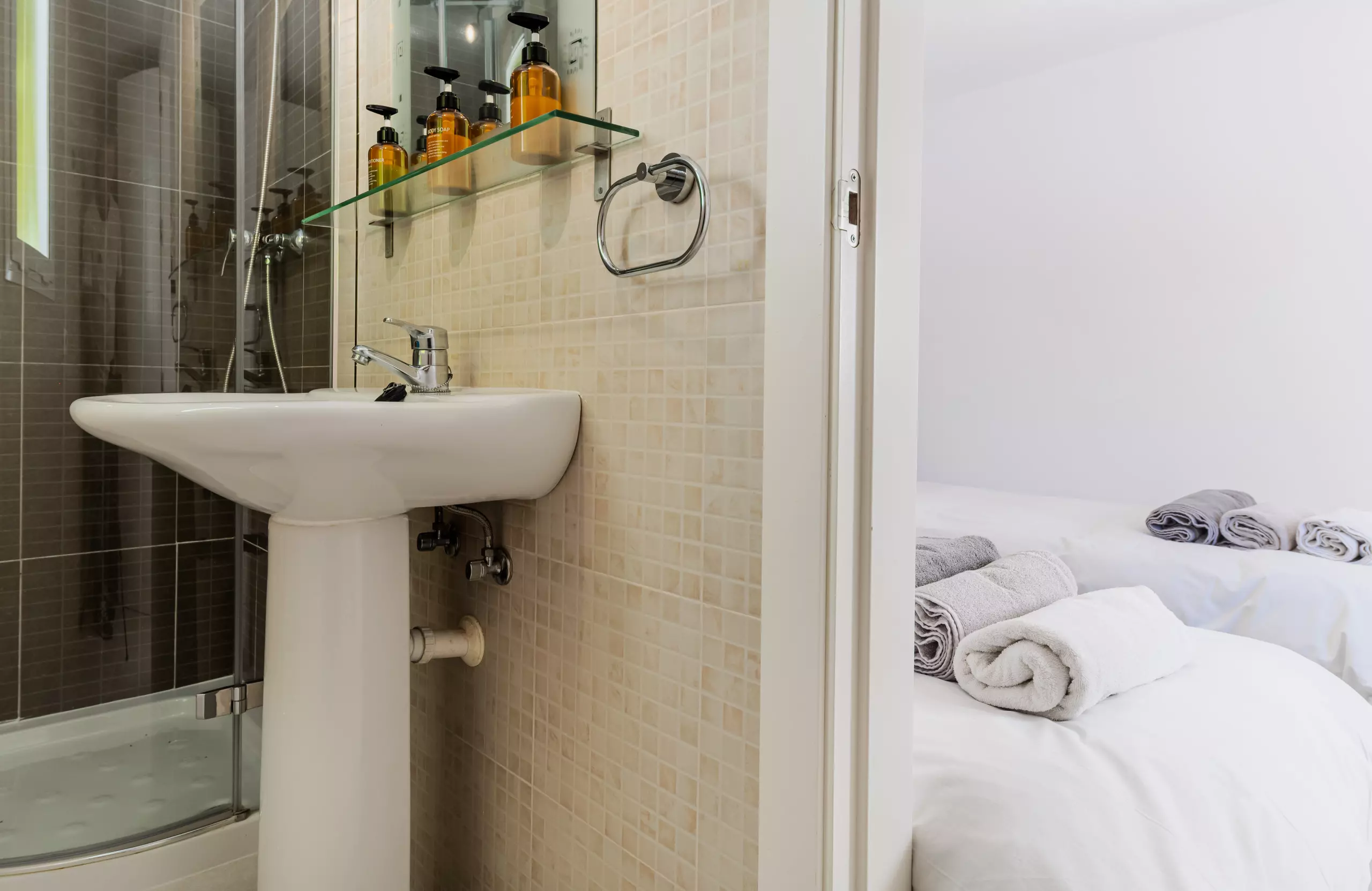 One bedroom is completed by its own bathroom with shower, toilet and sink.