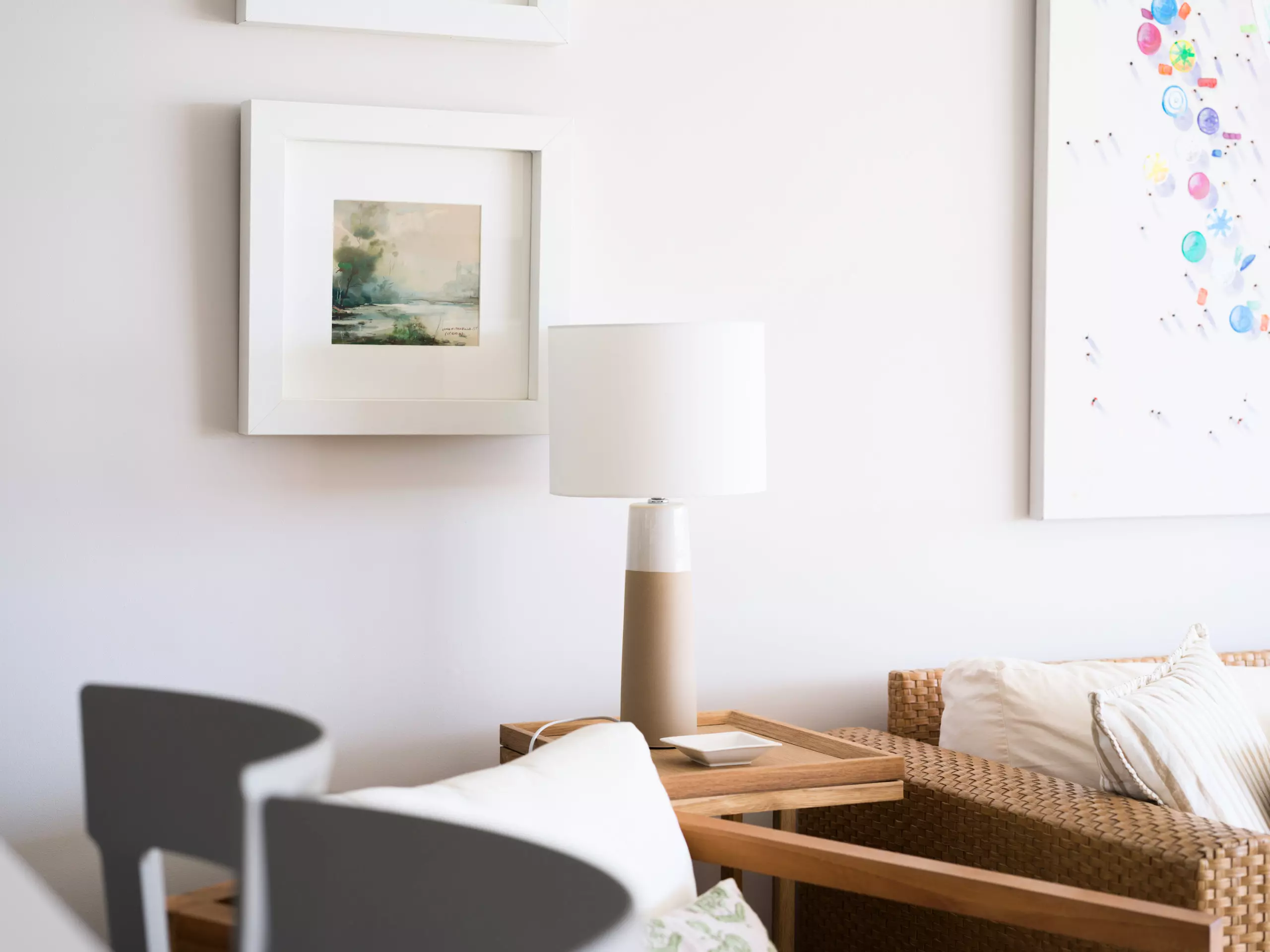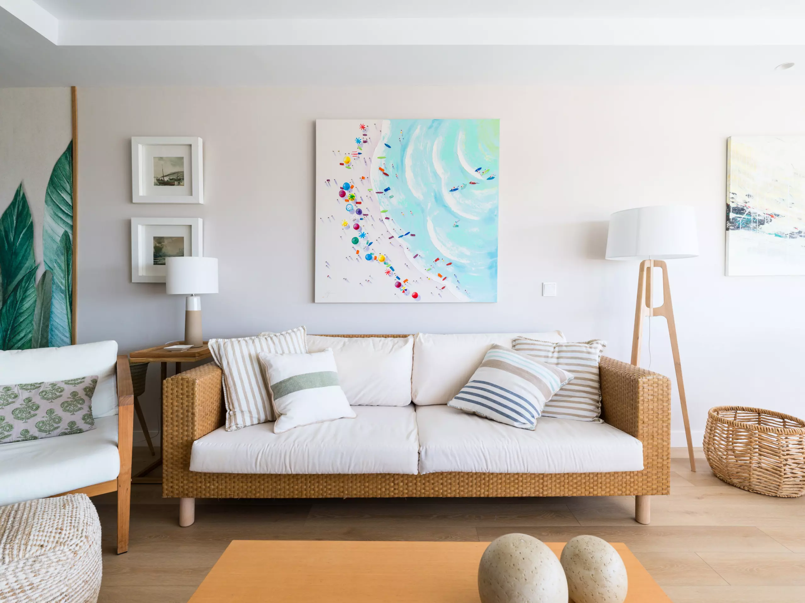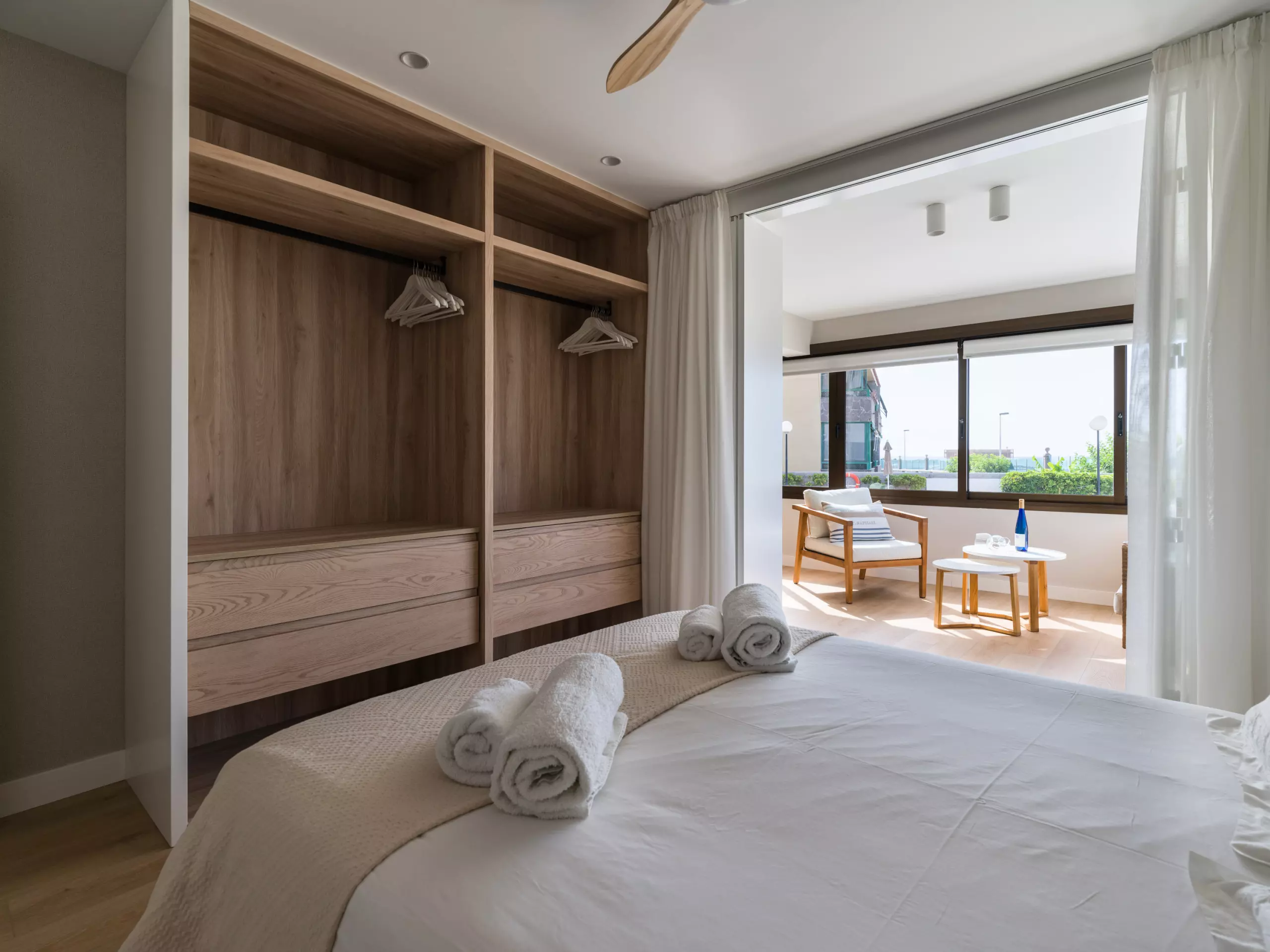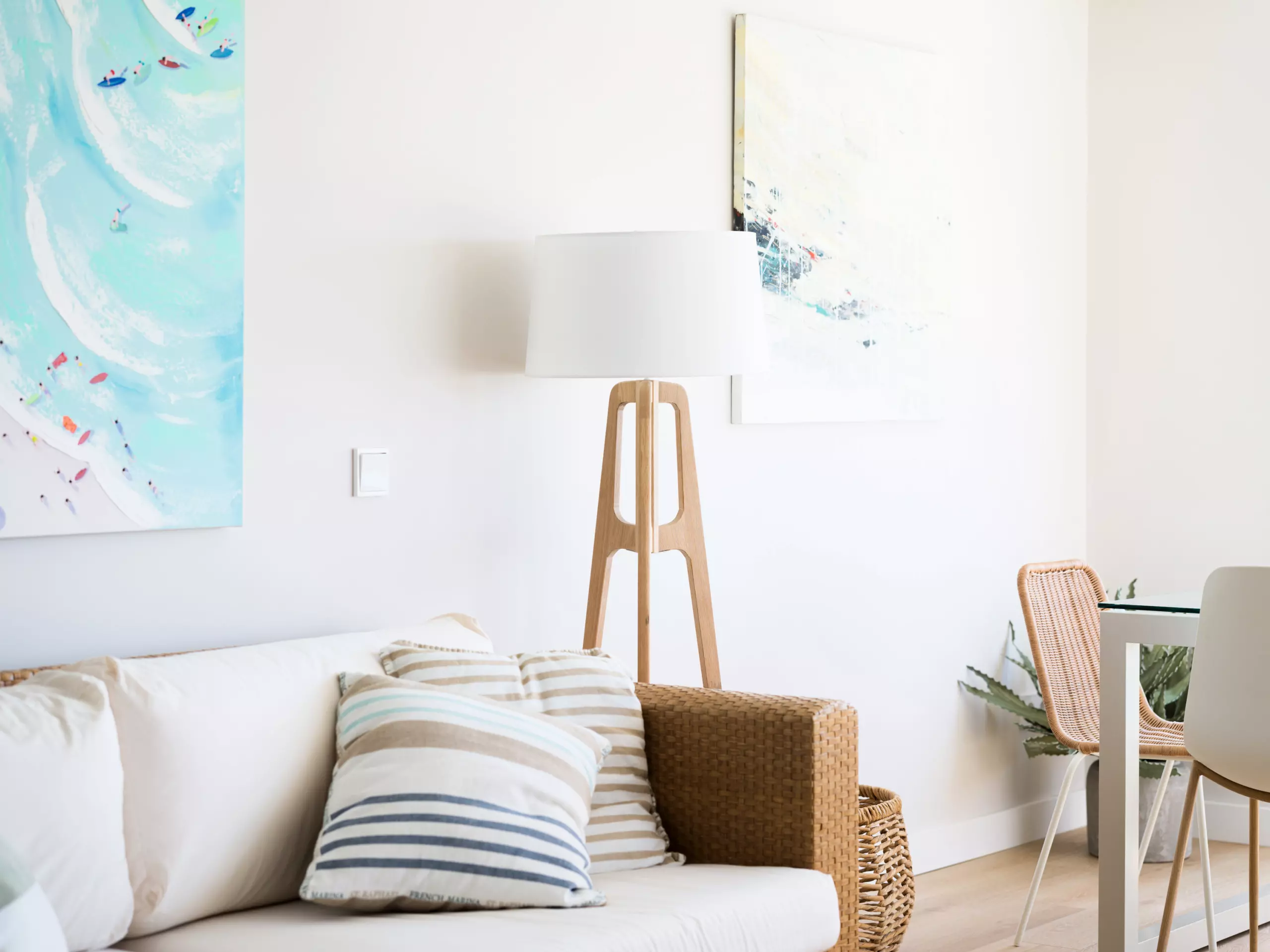85 m² accommodation, with exquisite decoration, a spacious living room with large windows overlooking a tranquil communal swimming pool and the sea in the background.