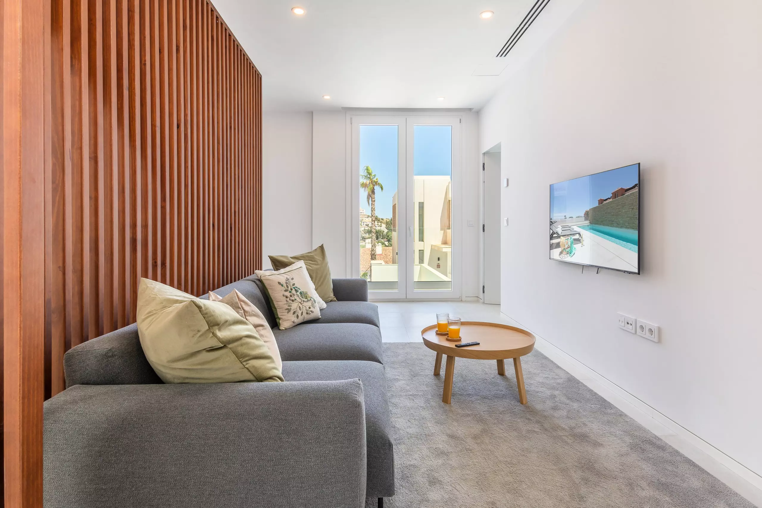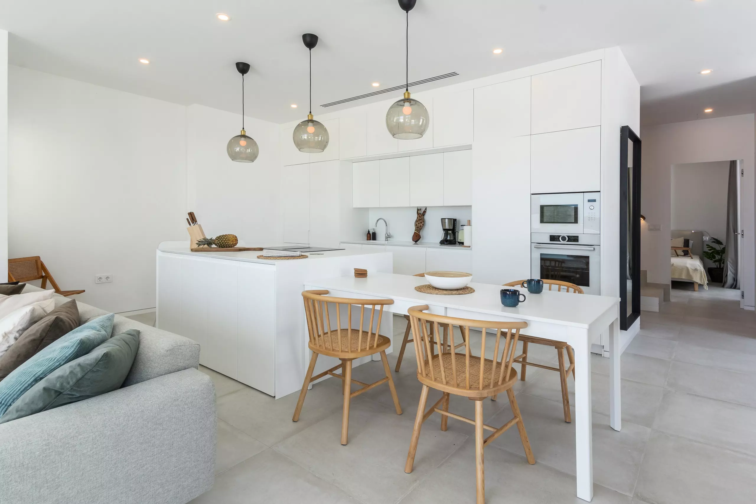 This semi-detached villa comprises 3 bedrooms and 3 en-suite bathrooms, a fully equipped kitchen, a guest toilet, a private swimming pool and over 140 m2 of terrace space spread over 3 levels.