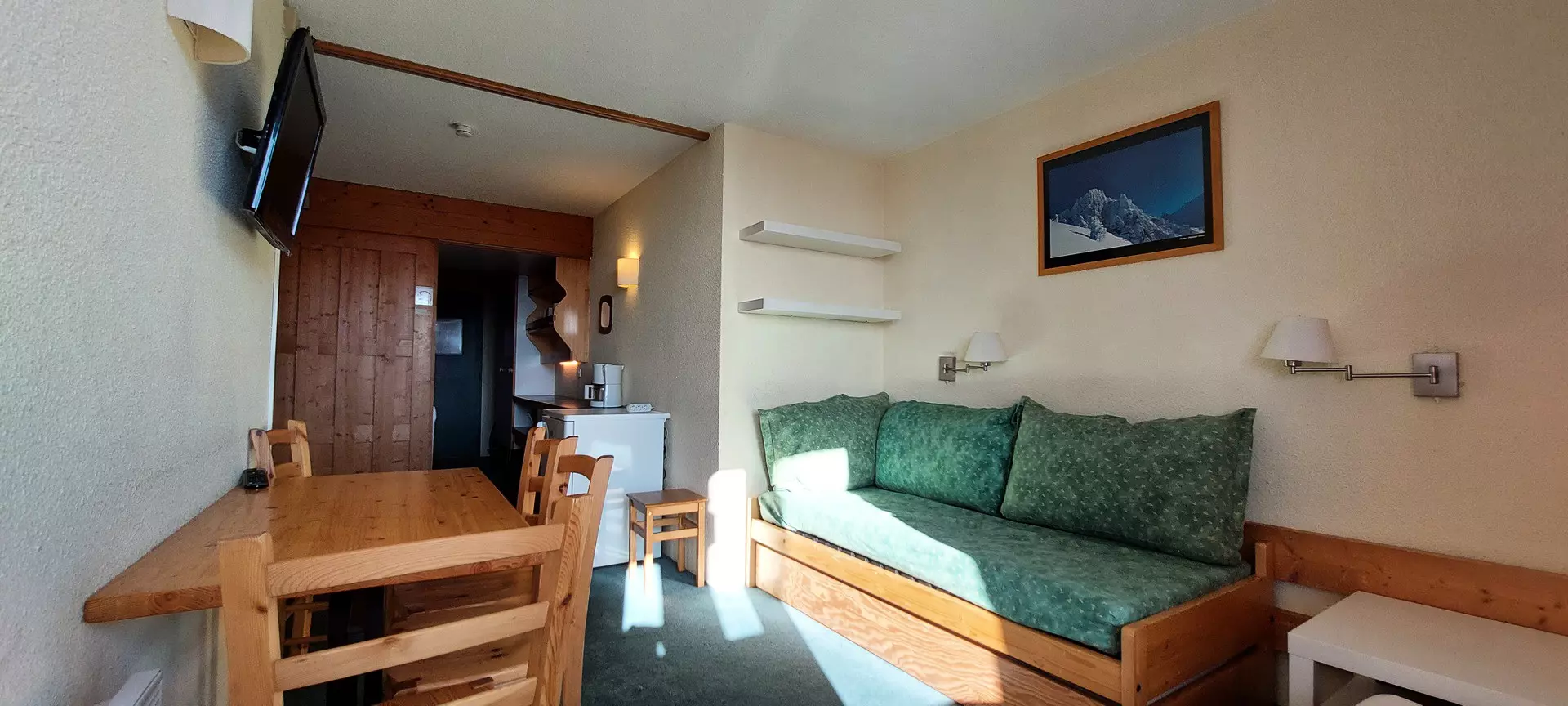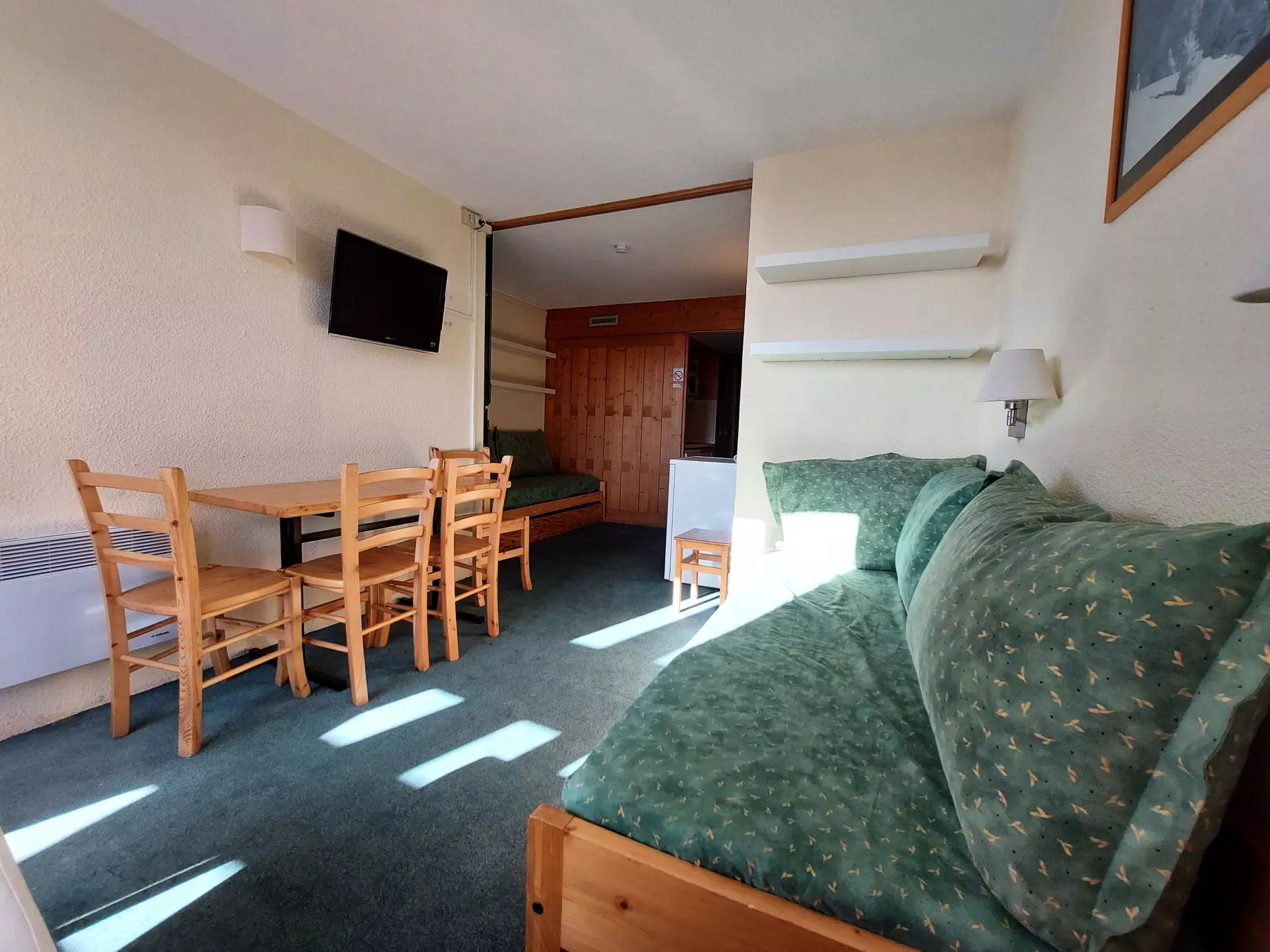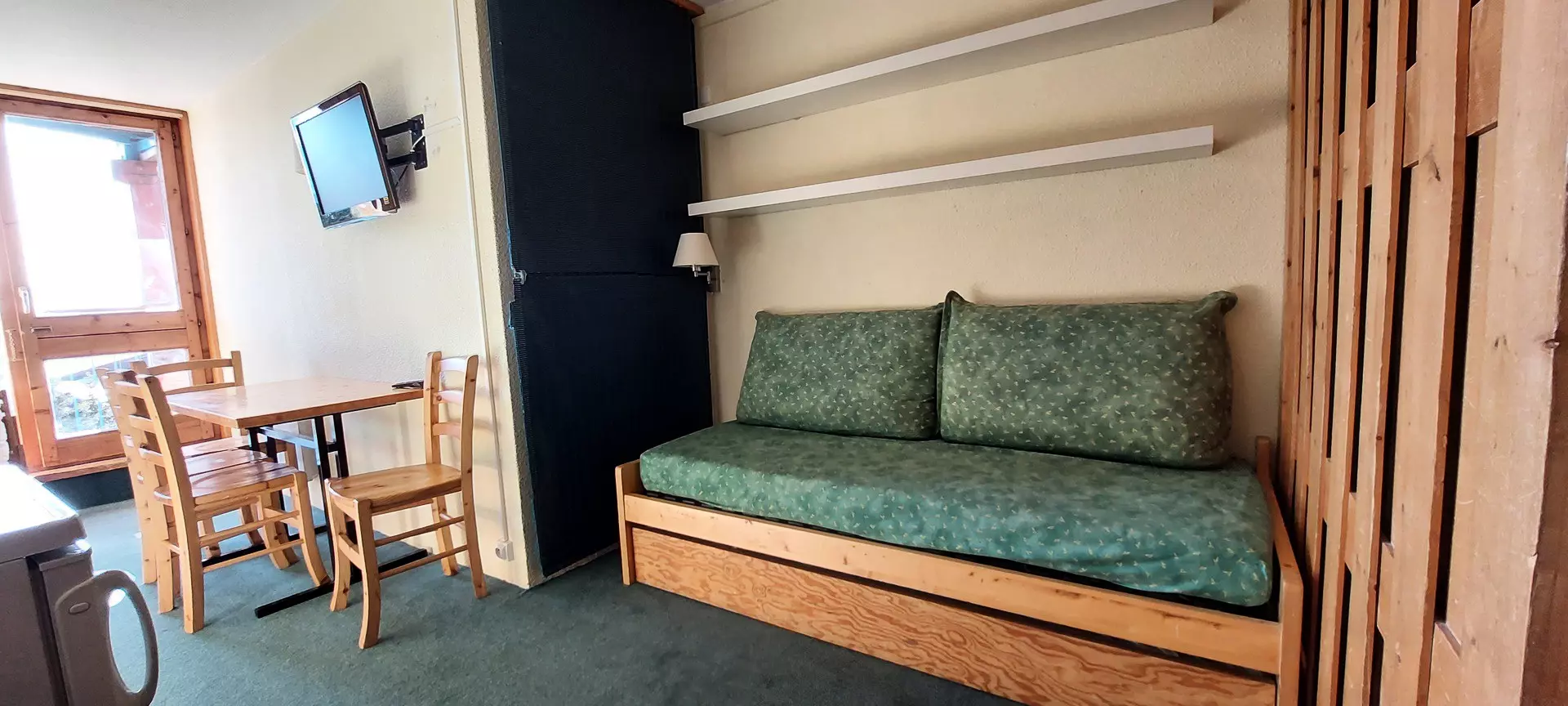 This 25m² studio, which can accommodate up to 4 people, is located on the 10th floor of the Belles-Challes residence, a residence with elevator.