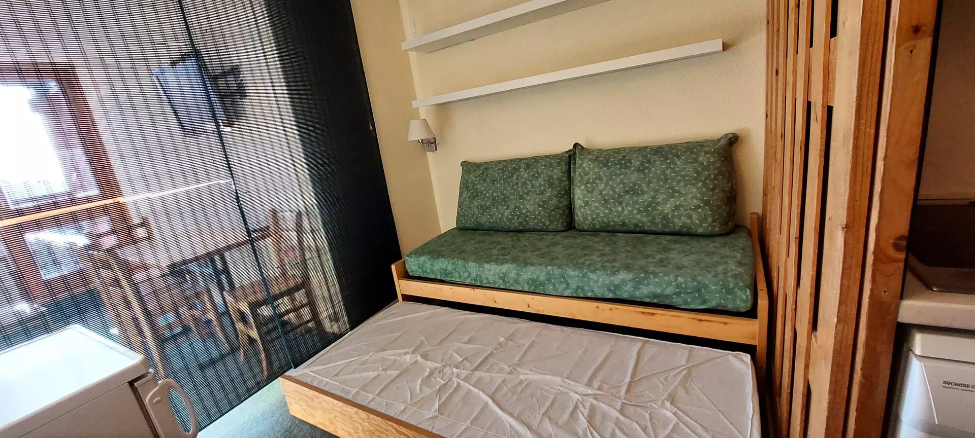 In the living room there is a single bed and an 80 cm trundle bed.