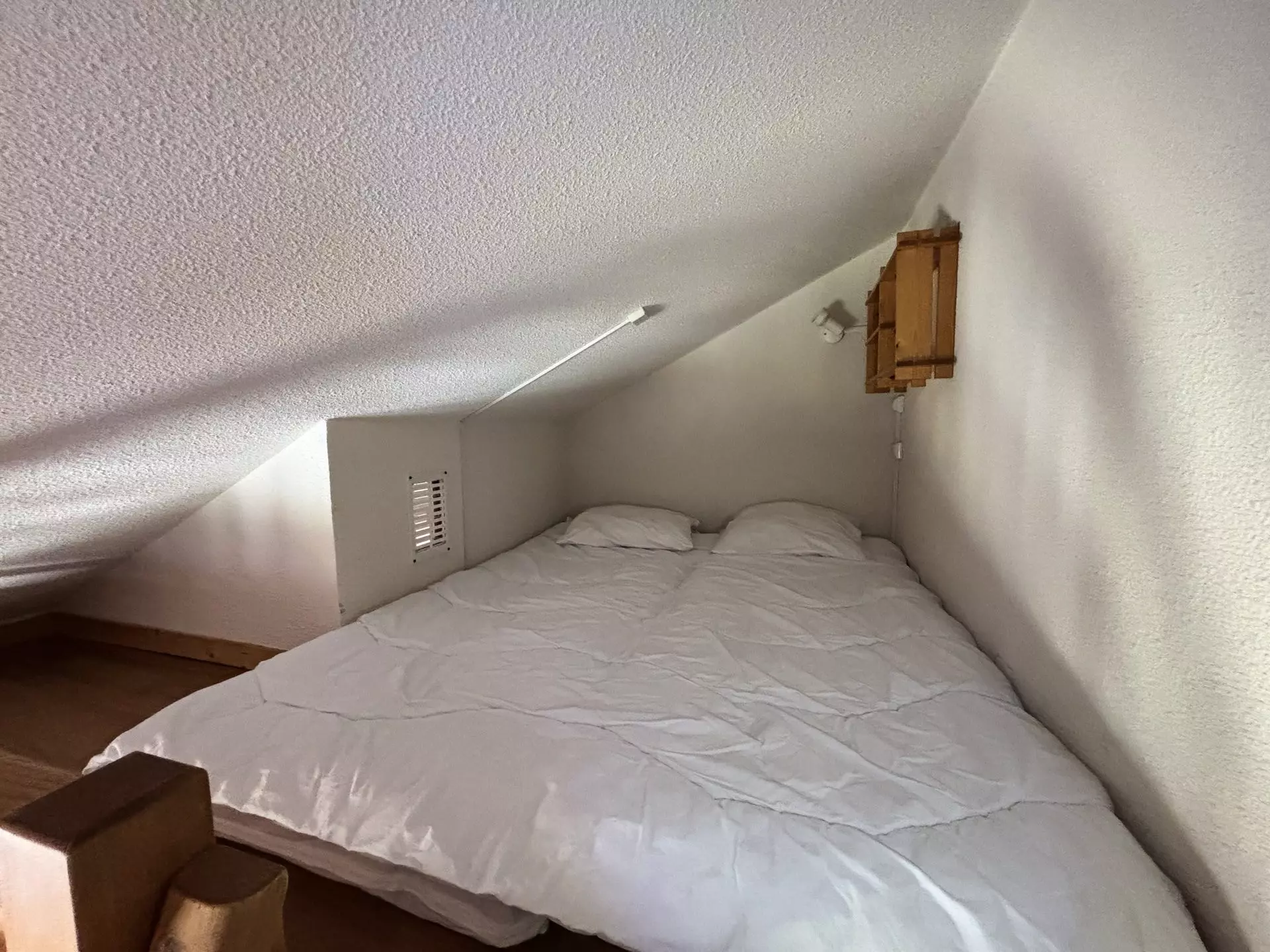 On the mezzanine 2 single mattresses on a double bed base.
