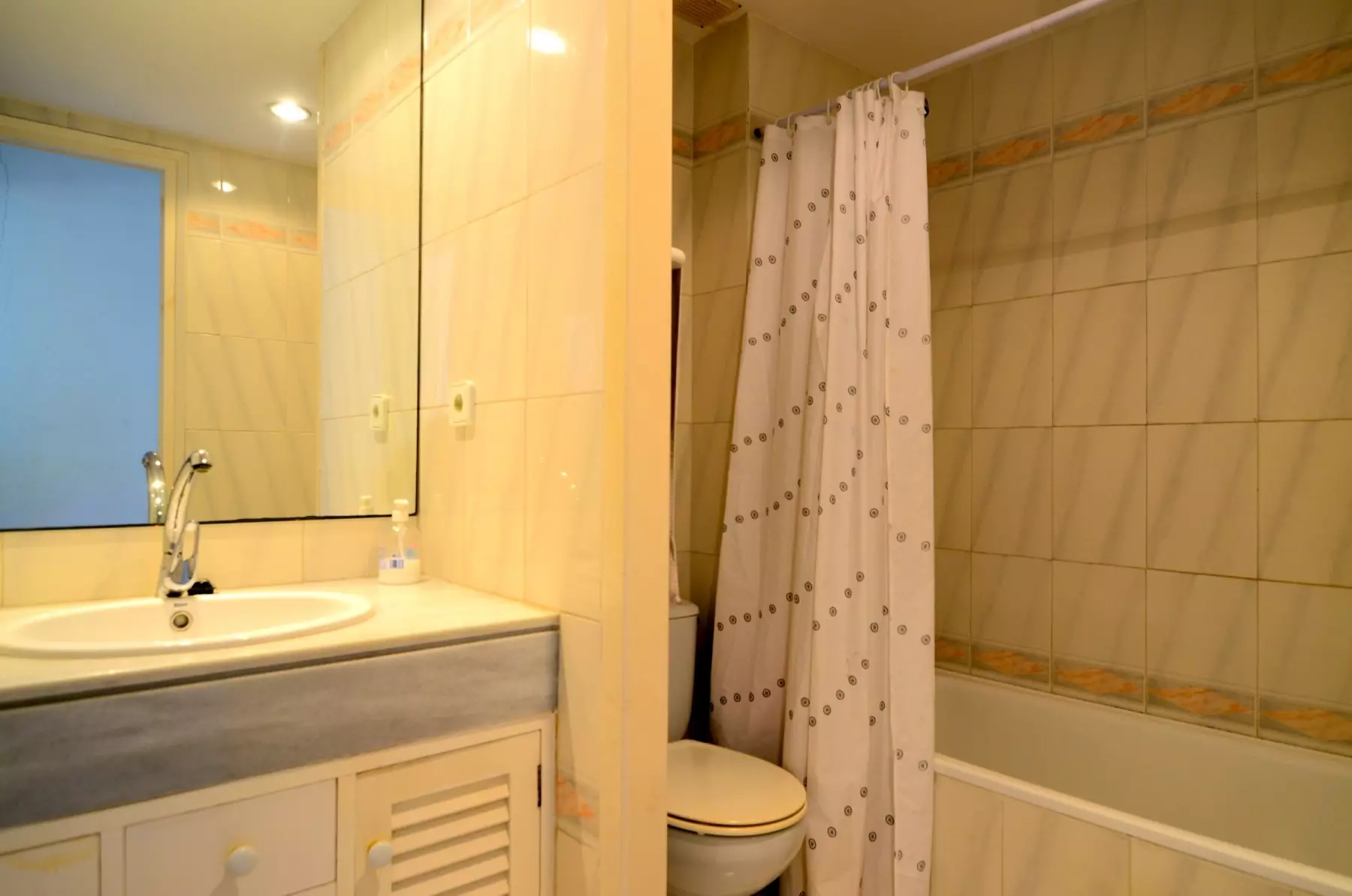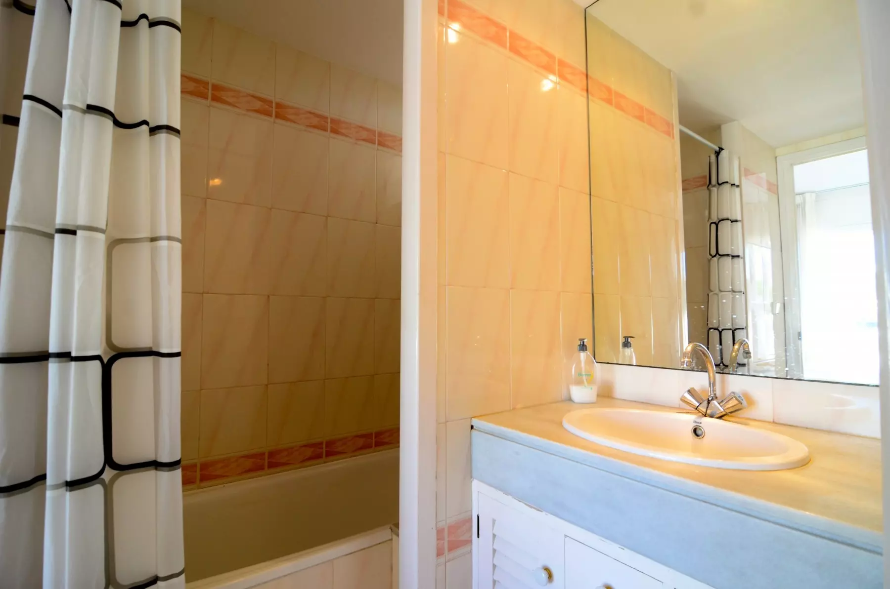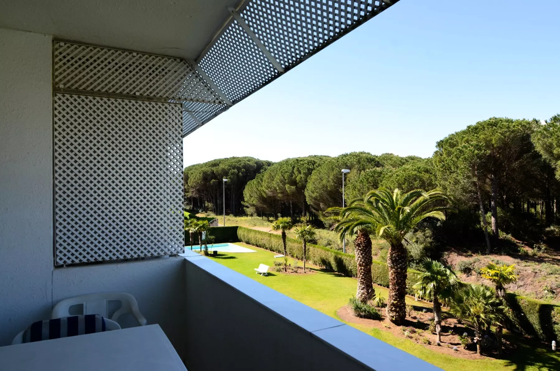 It has a terrace, washing machine, iron, air conditioning throughout, communal swimming pool + children's pool, outdoor parking in the same building, 1 TV.
