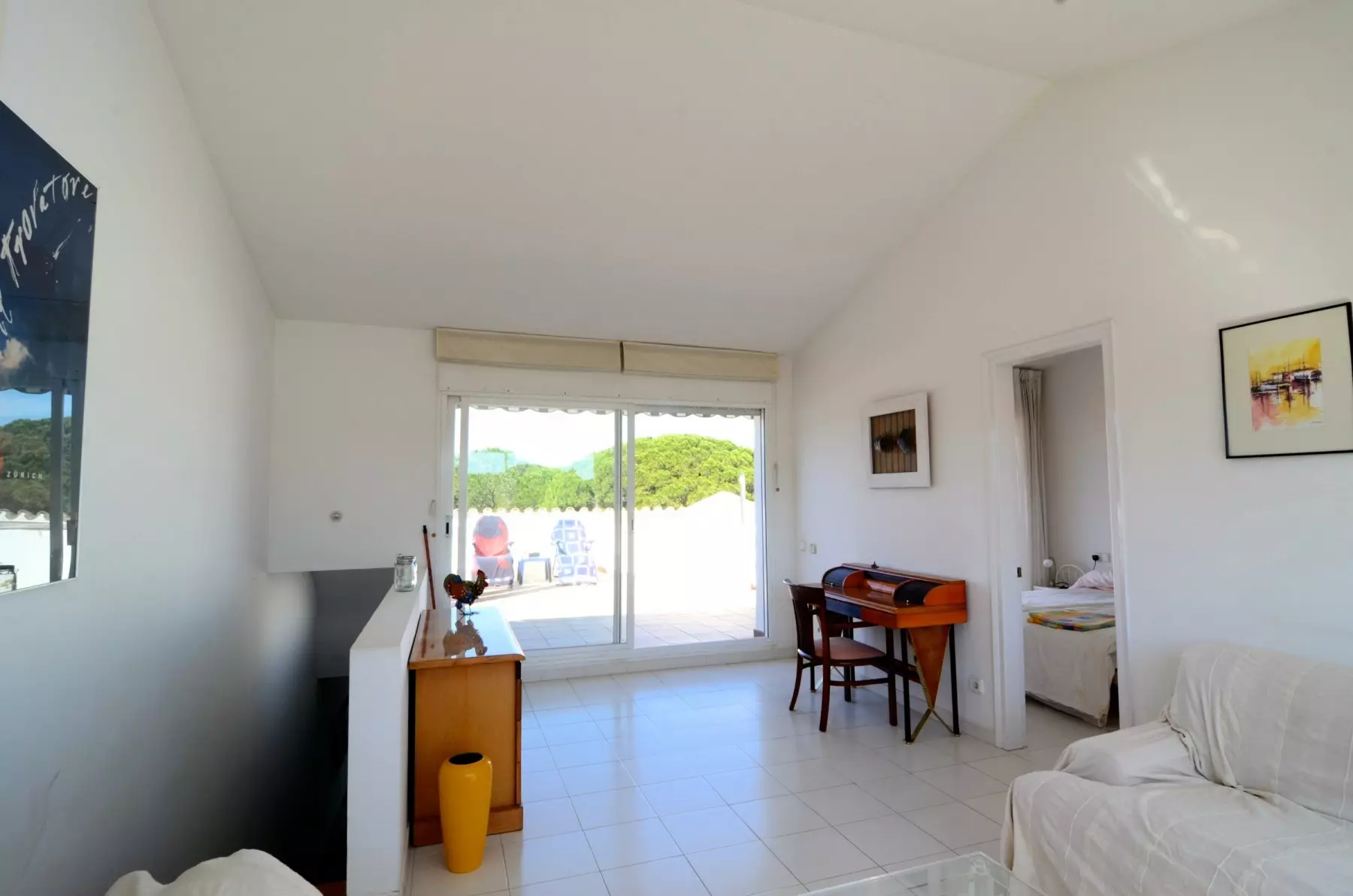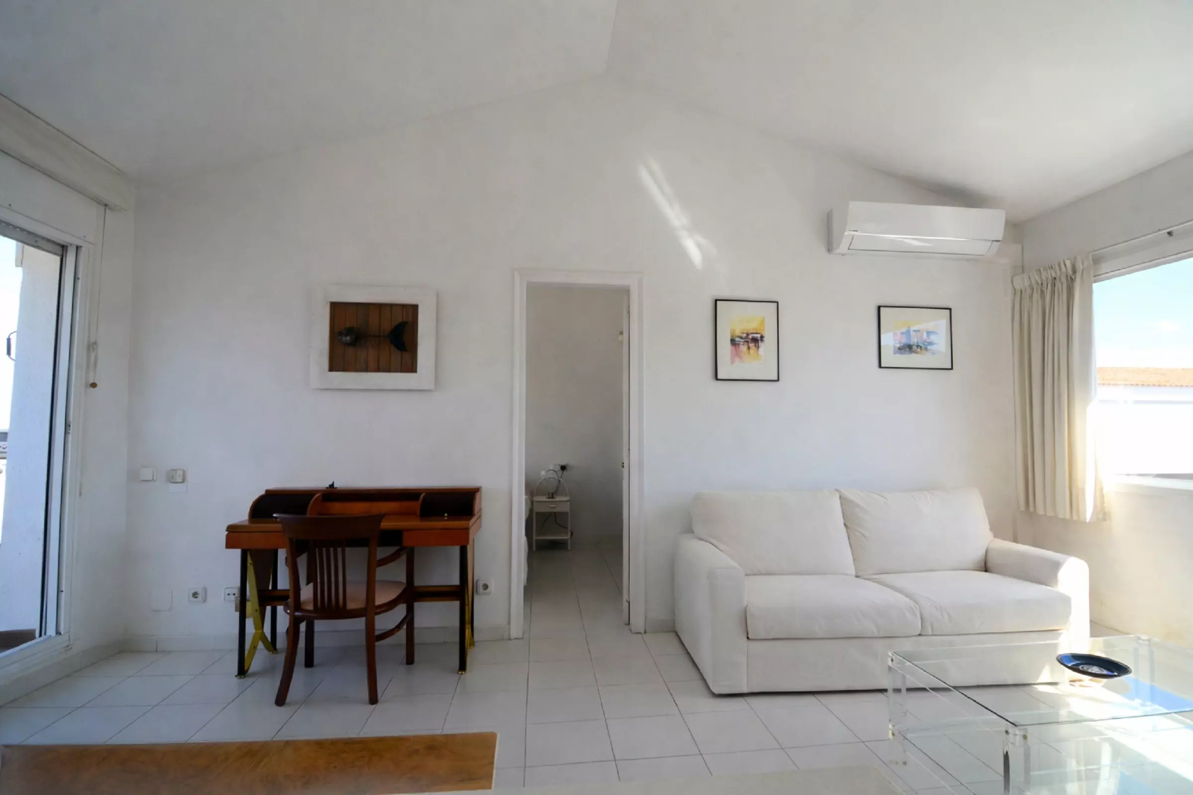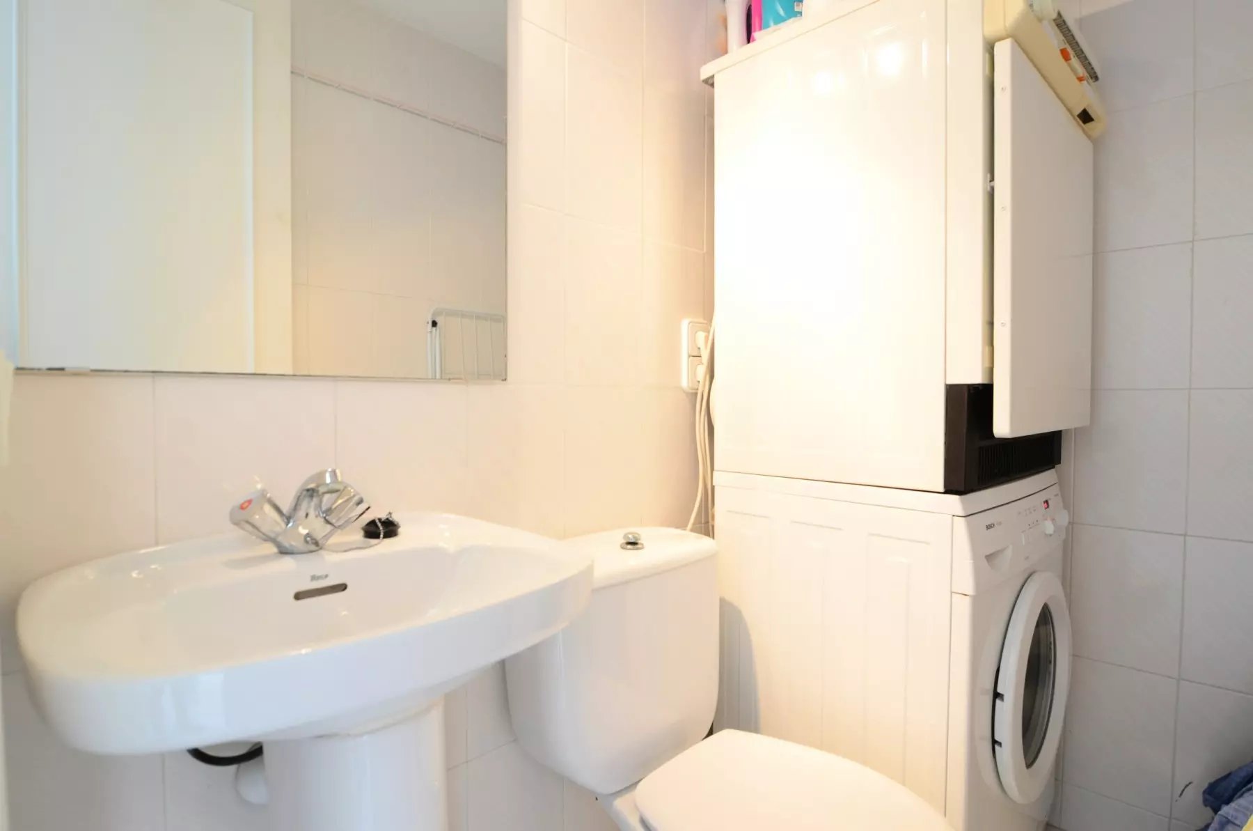 It has a terrace, washing machine, iron, air conditioning throughout, communal swimming pool + children's pool, outdoor parking in the same building, 1 TV.