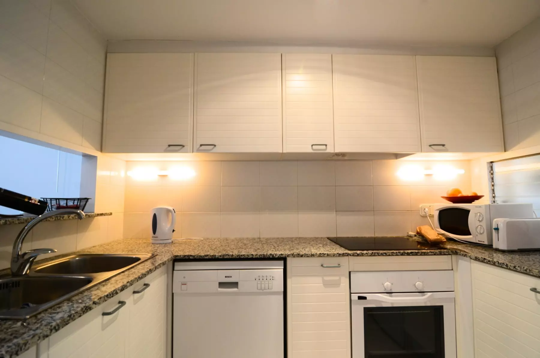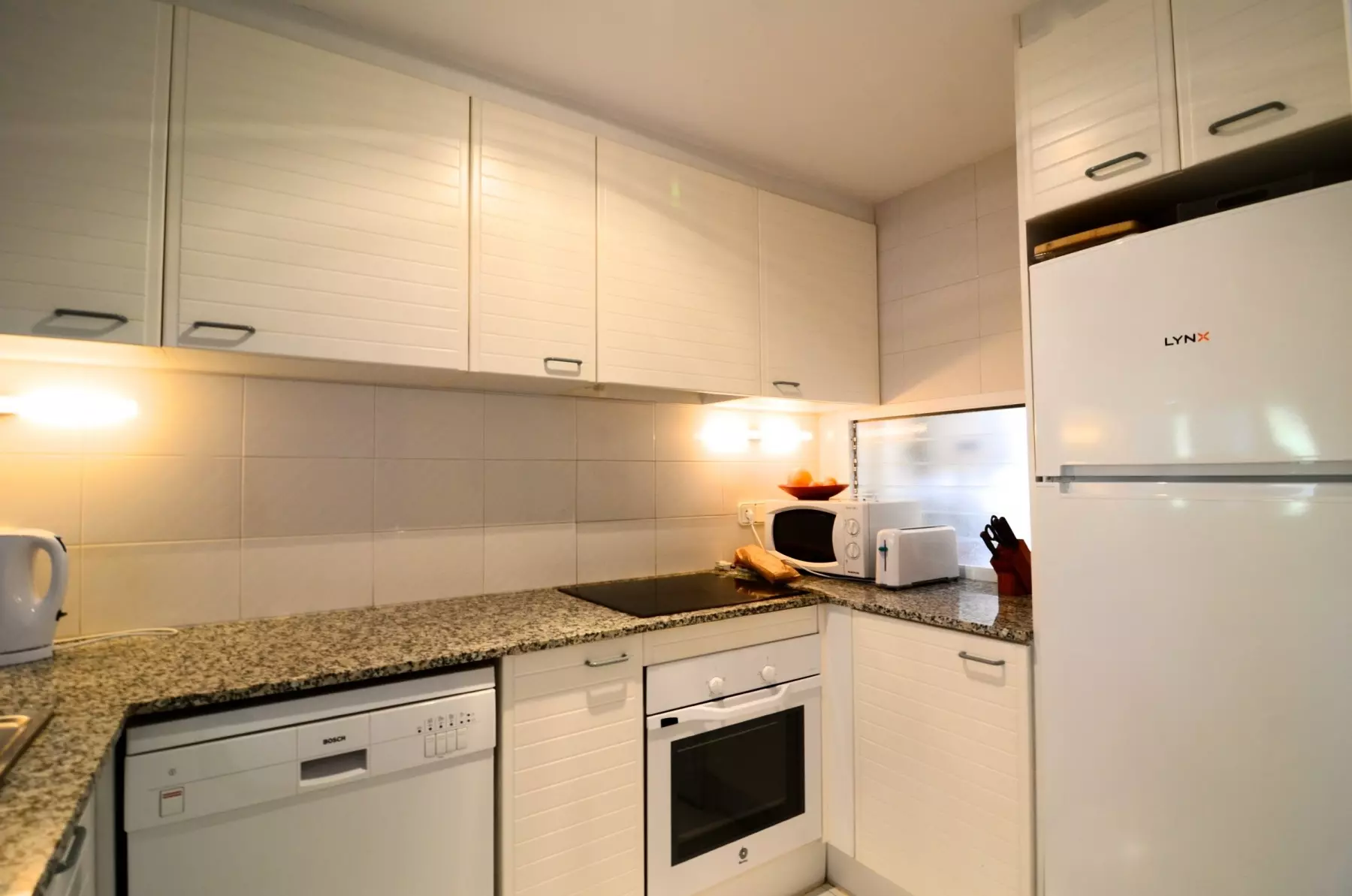 The independent kitchen, with vitroceramic hob, is equipped with refrigerator, microwave, oven, freezer, dishwasher, dishes/cutlery, kitchen utensils, coffee maker, toaster and kettle.