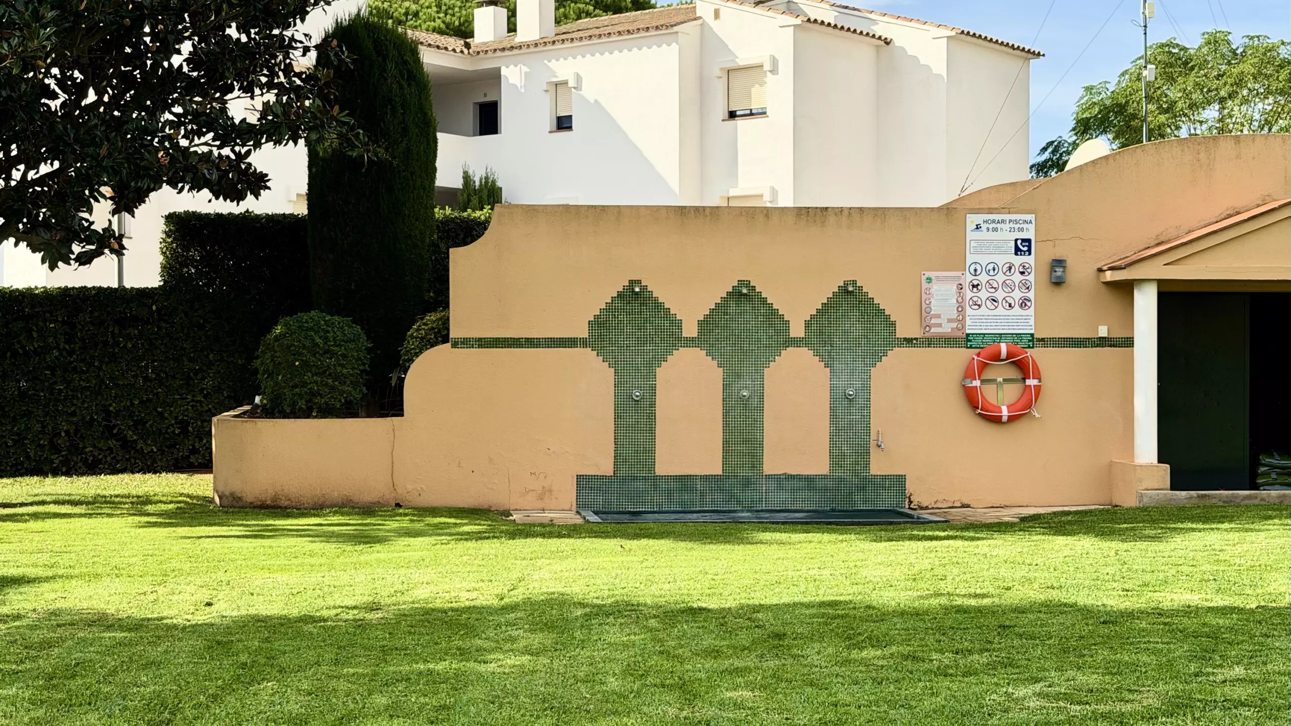 The apartment has covered parking, a community garden and a swimming pool.