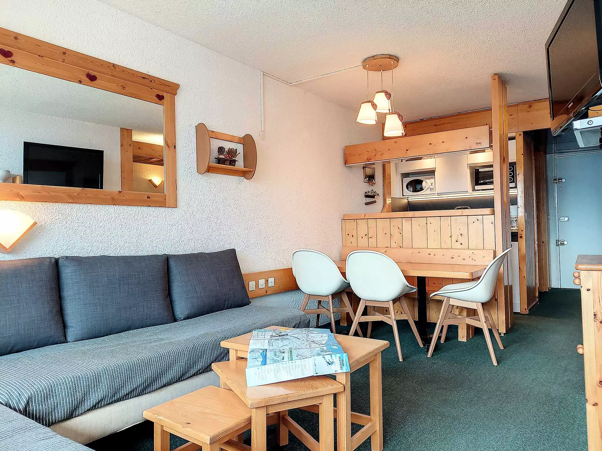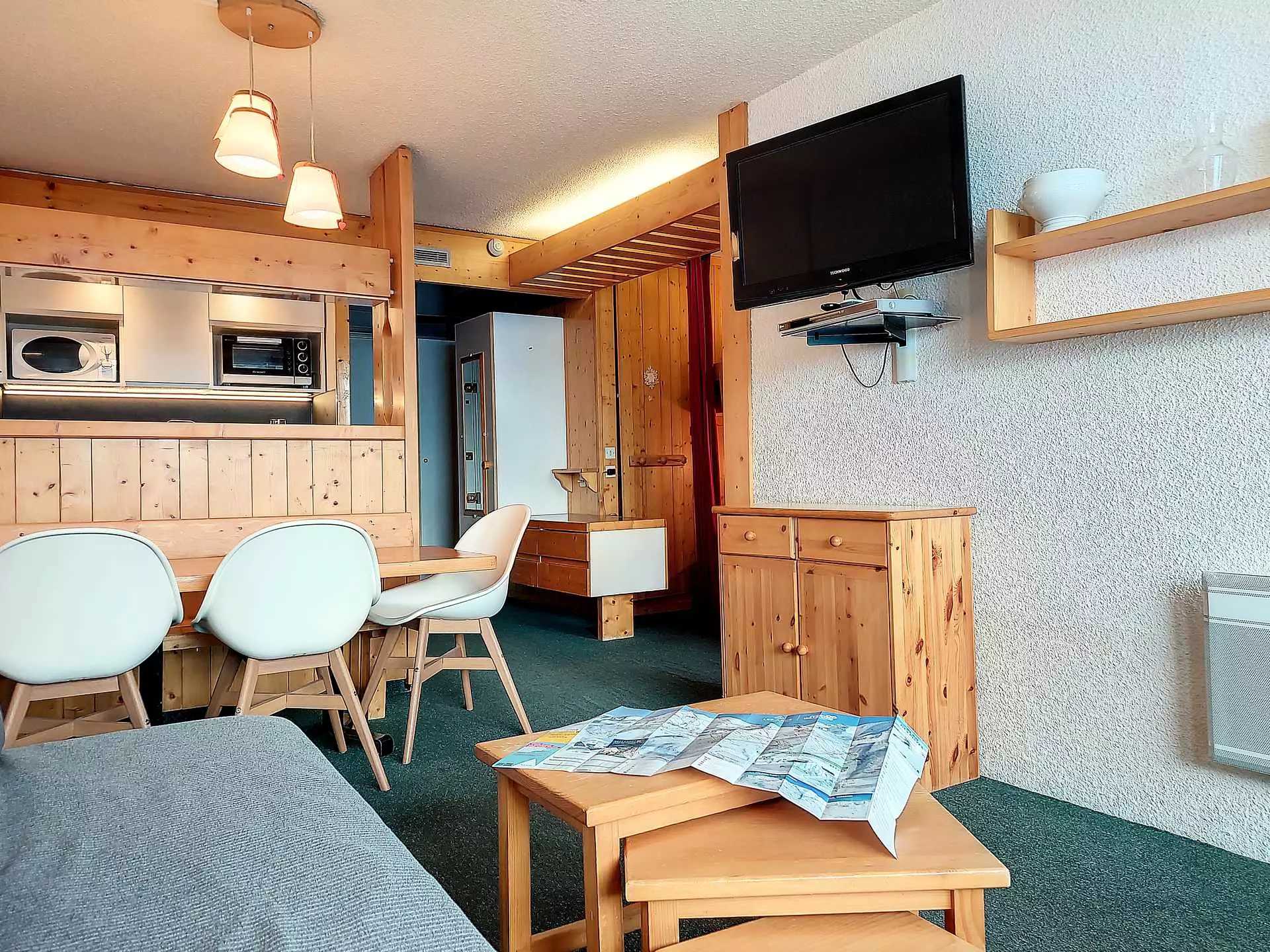 Living room equipped with 2 80cm sofa beds and TV