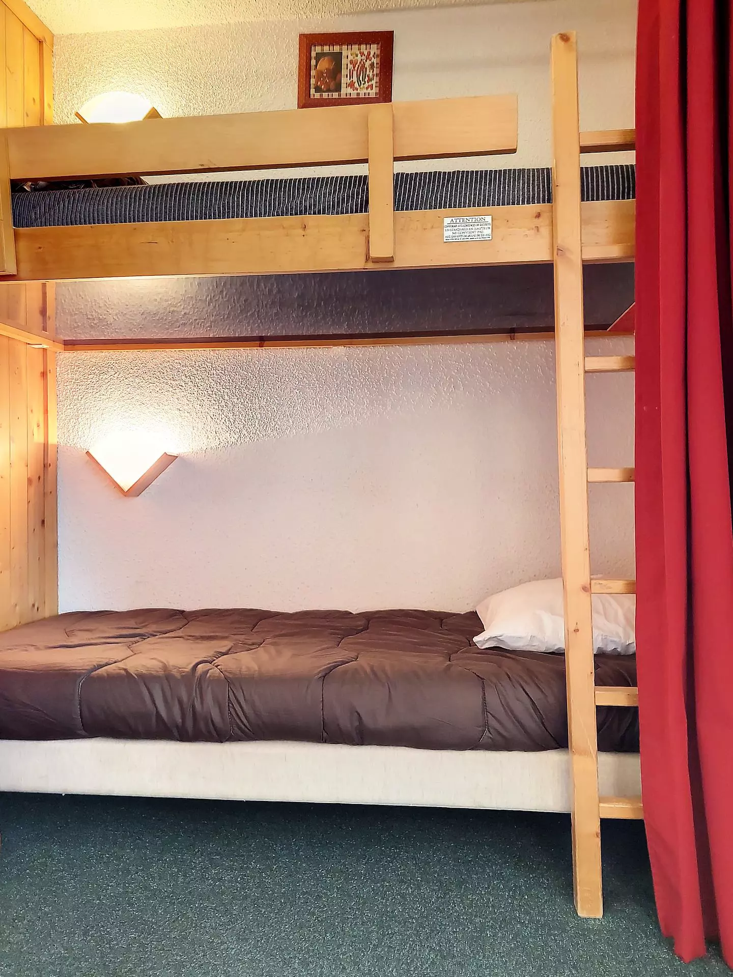 Cabin area with 2 bunk beds (80cm) (the upper bunk is not suitable for children under 6 years old)