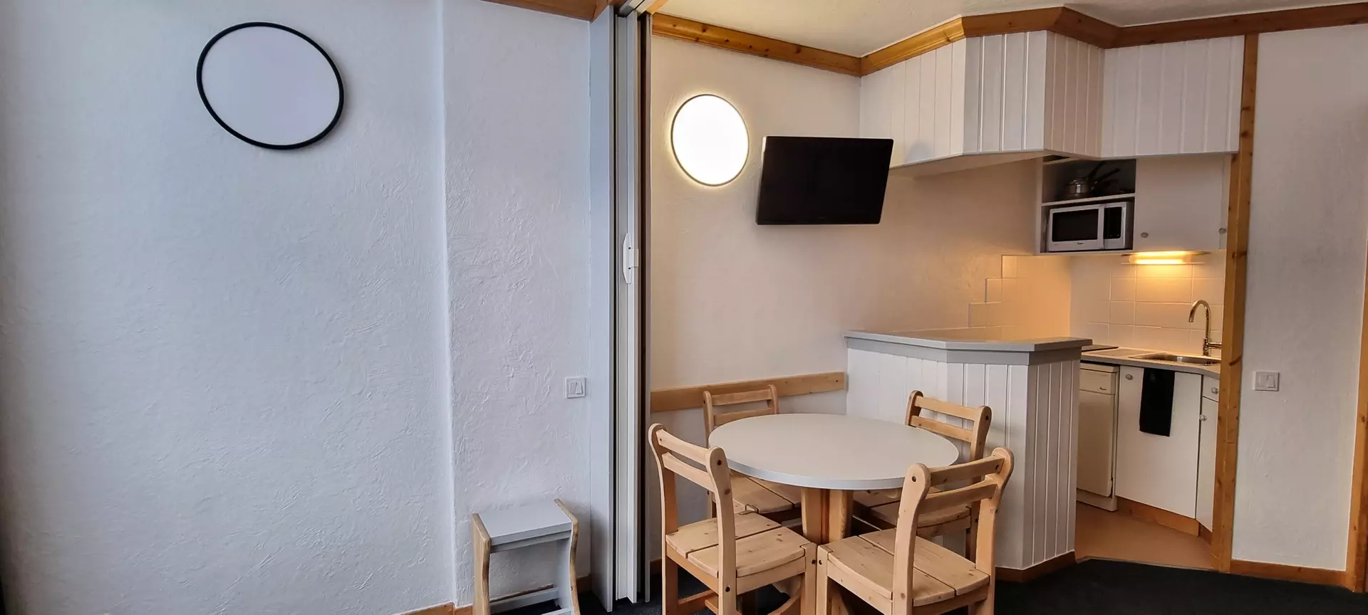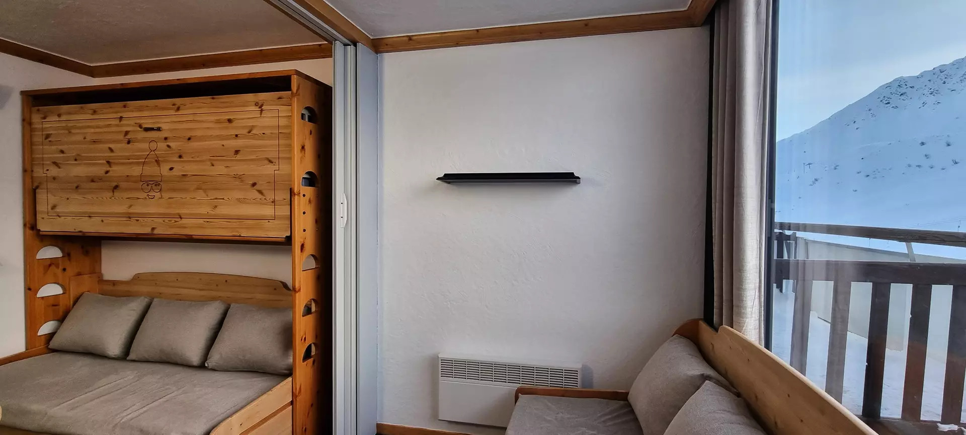 This studio is located on level "G" of the Paquebot des Neiges and is accessible by the "Etoile" elevator. It consists of a kitchen open to the living room and a bathroom with a separate toilet. Its south-facing balcony offers a beautiful view of the Aime 2000 slopes.