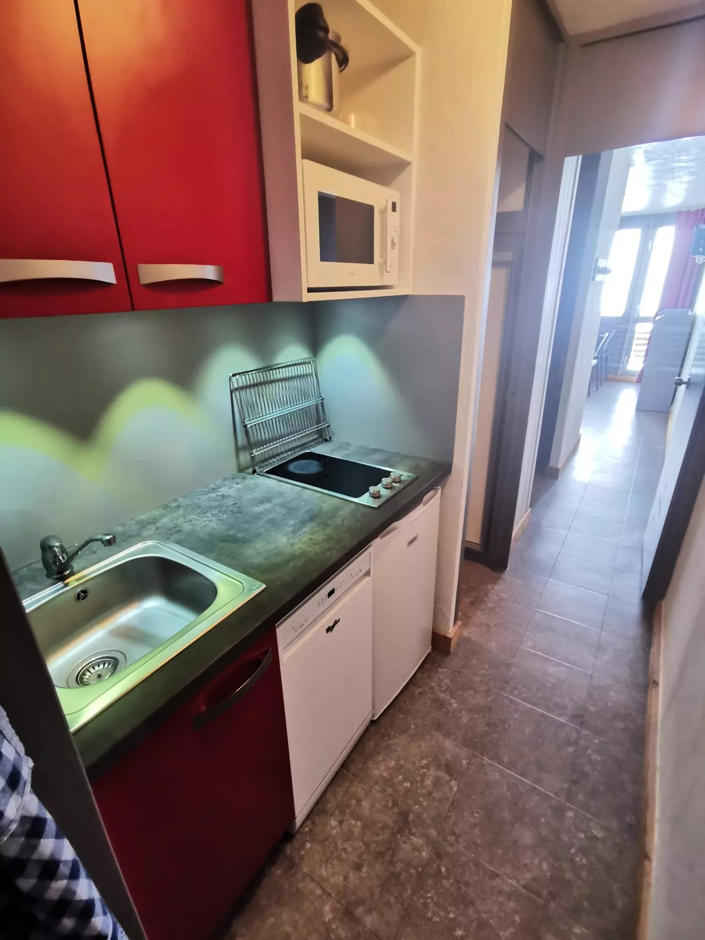 This studio is located on level "H" of the Paquebot des Neiges and is accessible by the "Diamant" elevator. It consists of a living room, a separate kitchen, a bathroom, and a separate toilet. Its south-facing balcony offers a lovely view of the slopes.
