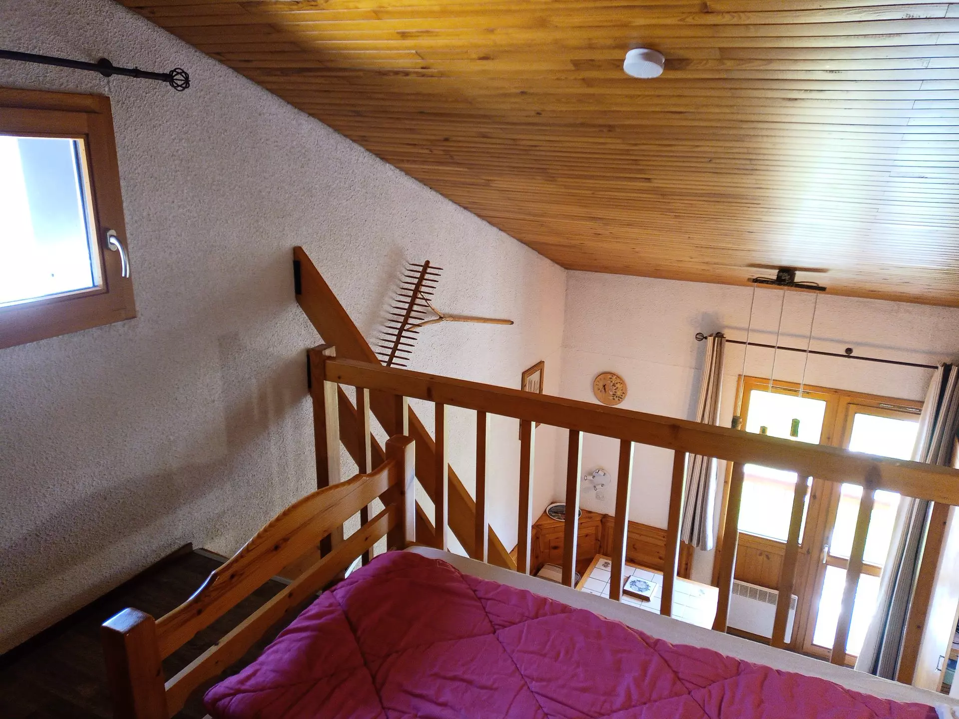 The mezzanine opens onto the living room and is equipped with 2 bunk beds.