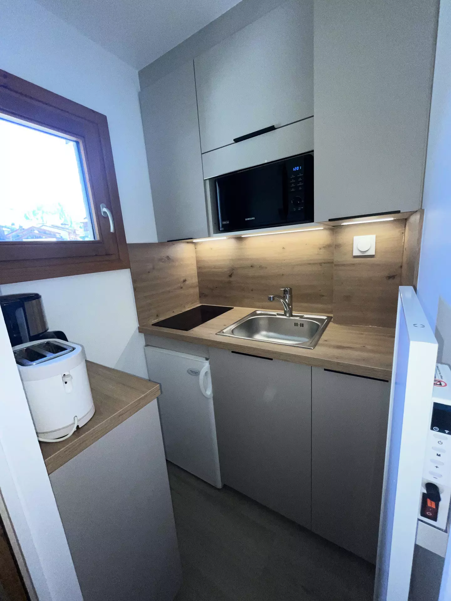 28m² mezzanine studio for 4 people located in the Les Hameaux I residence in Plagne Village.