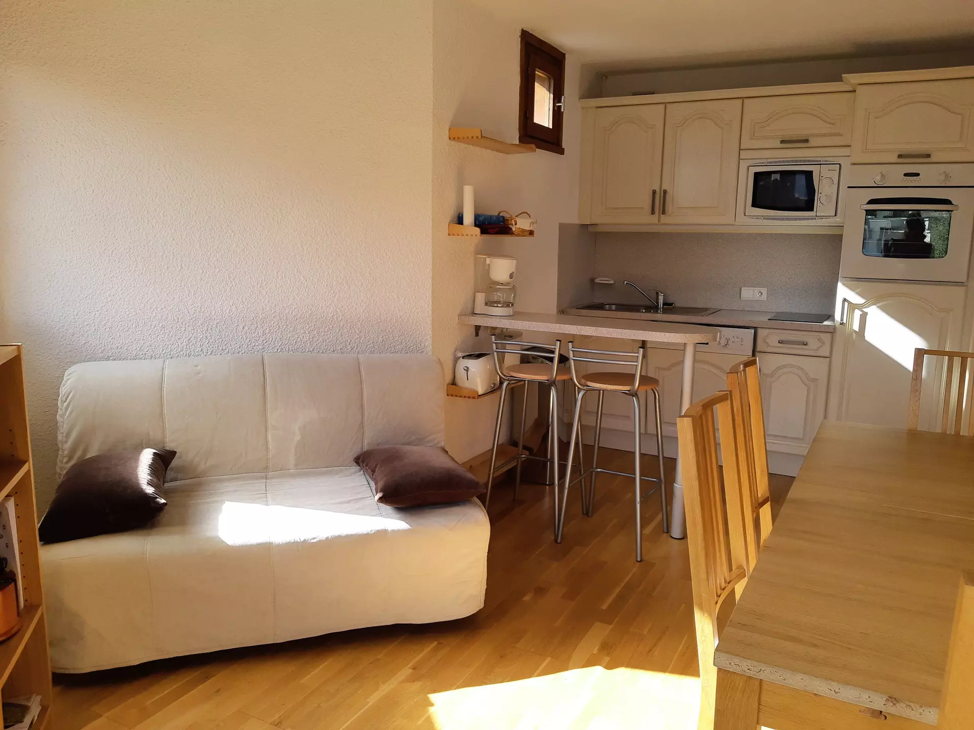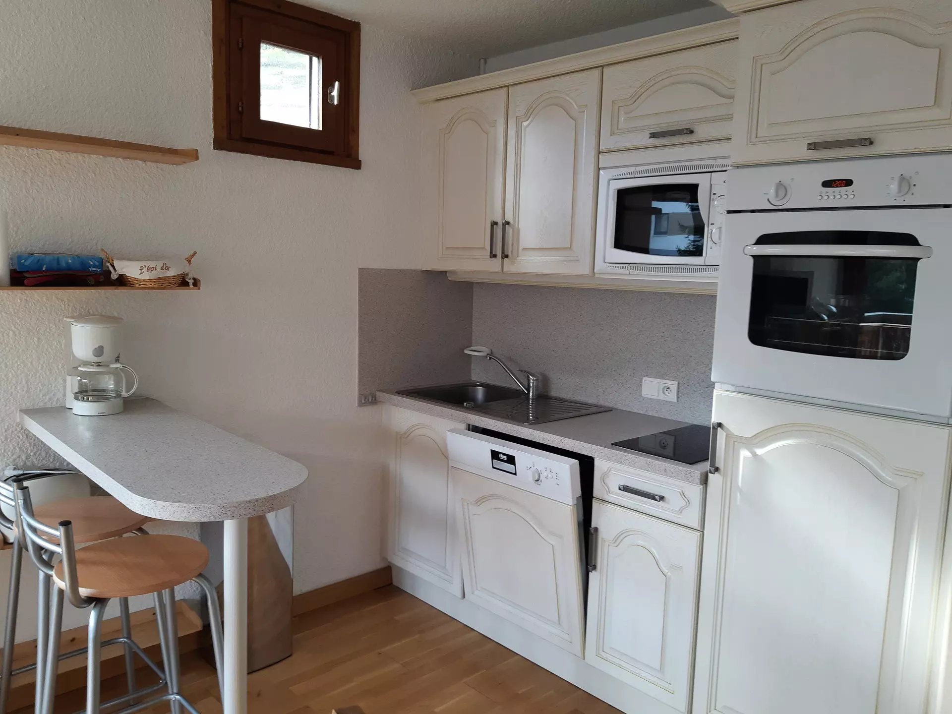 Equipment: 2 induction hobs, oven, microwave, refrigerator, dishwasher, coffee maker, kettle, toaster, raclette machine.