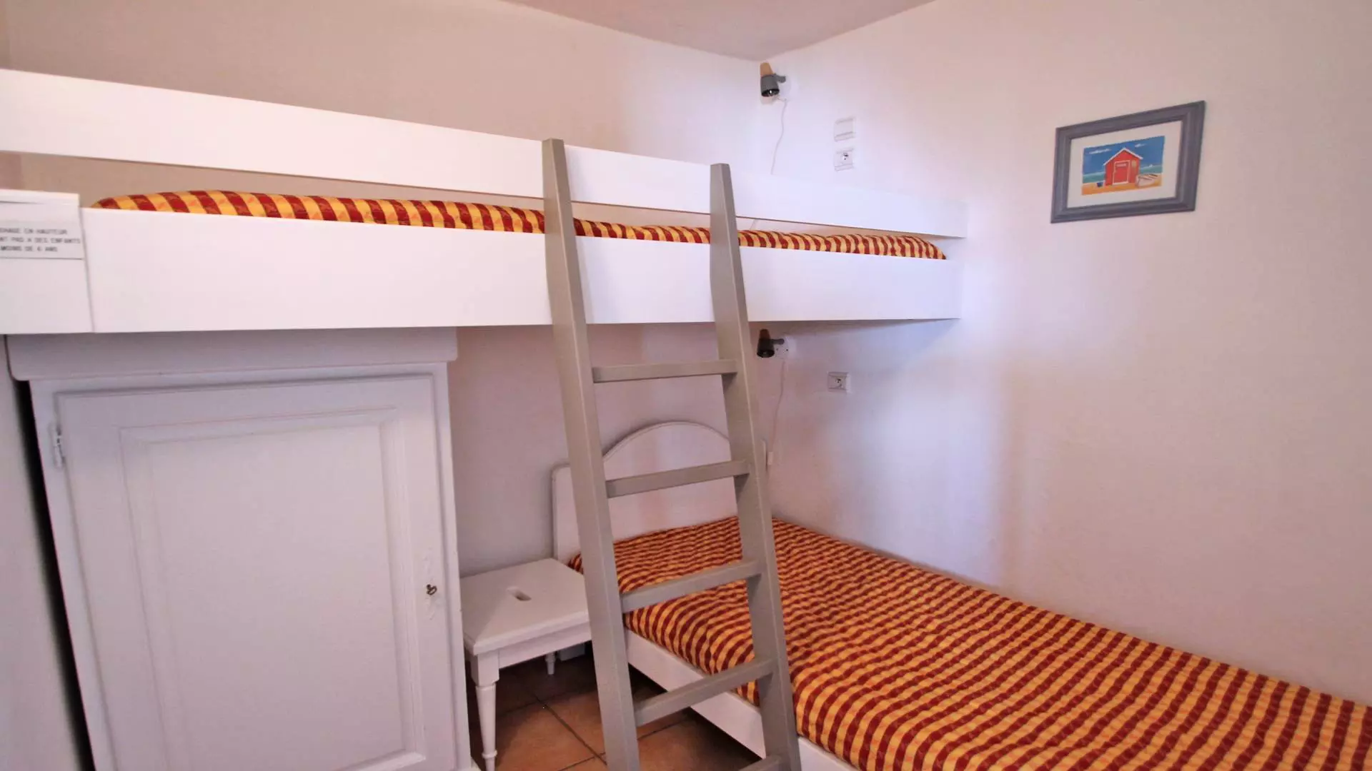 - Air-conditioned bedroom/cabin with bunk bed (2x80cm) with closet