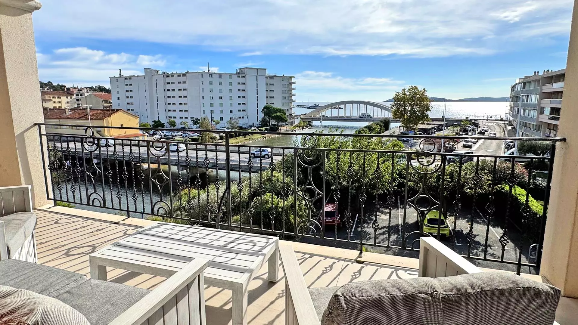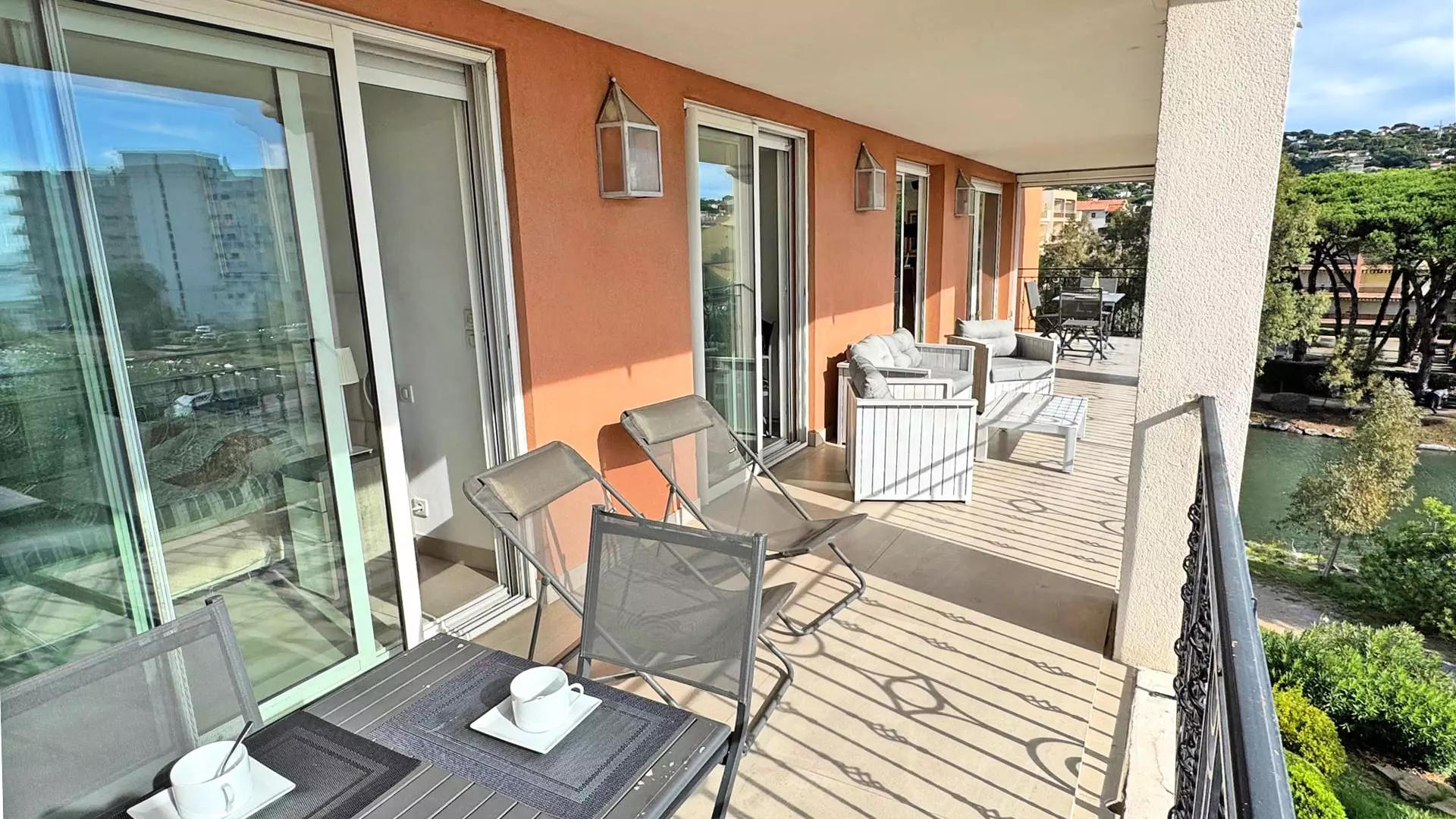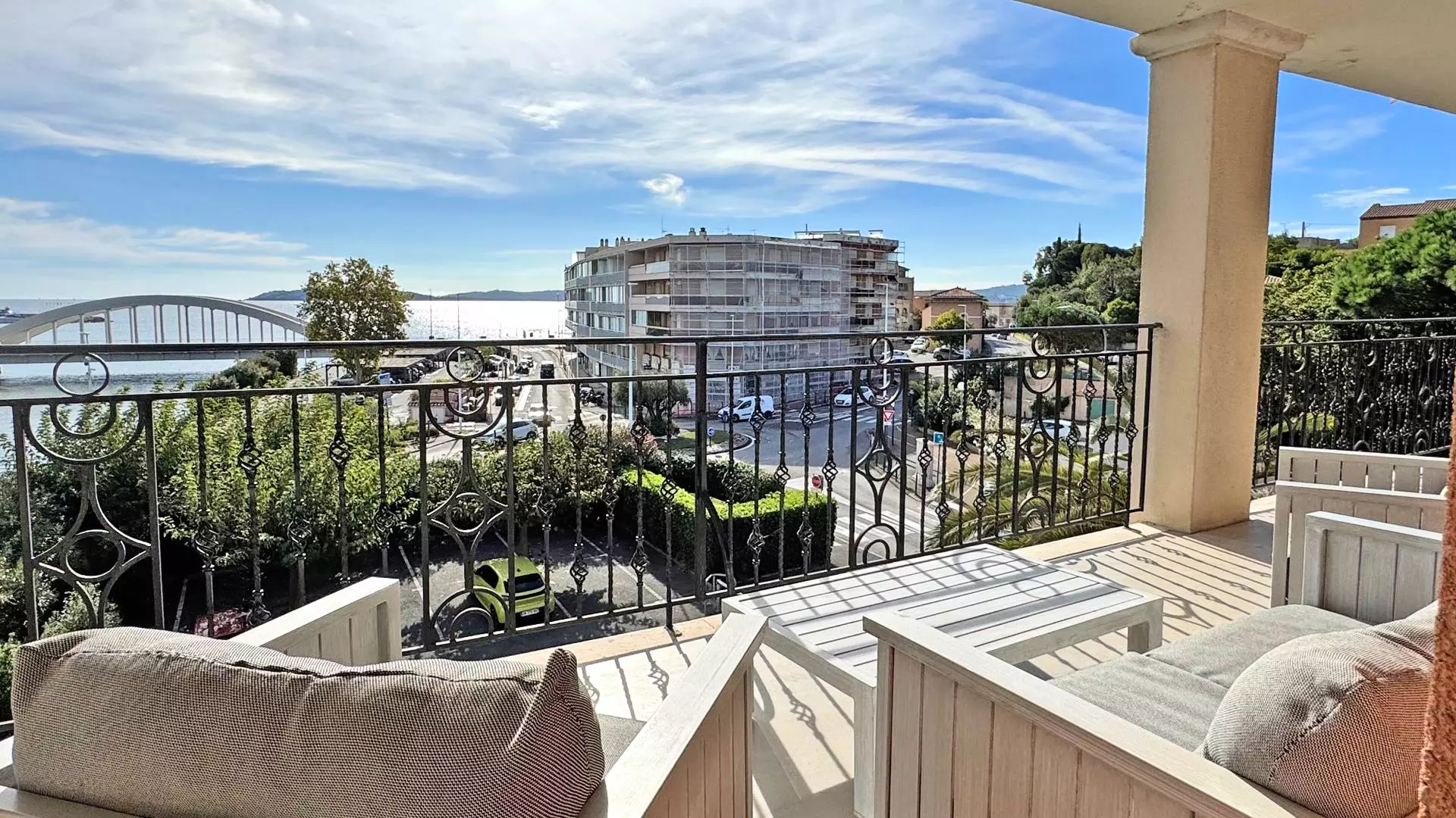 - Large 28m² terrace with garden furniture and river and sea view