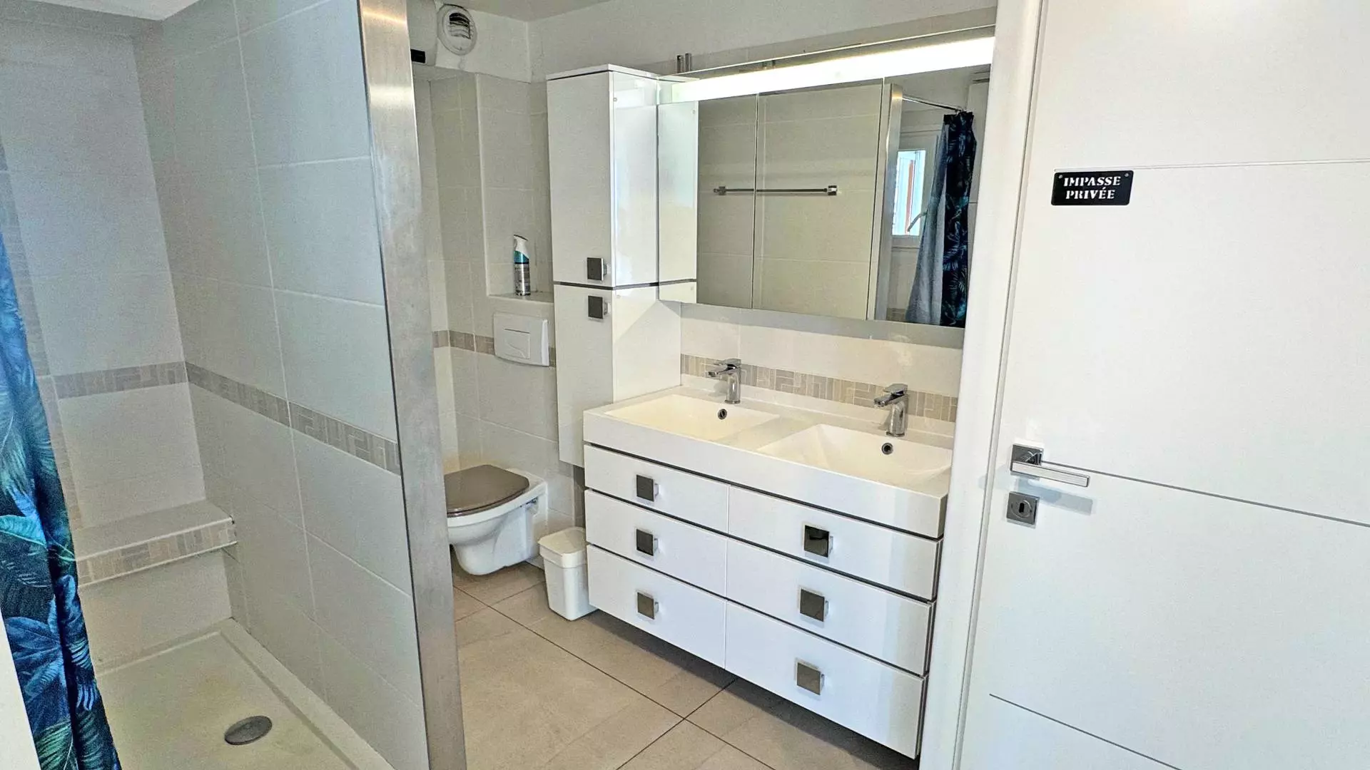 - Master suite: bedroom with 160cm double bed, opening onto the terrace, private bathroom with walk-in shower, WC and double sink unit