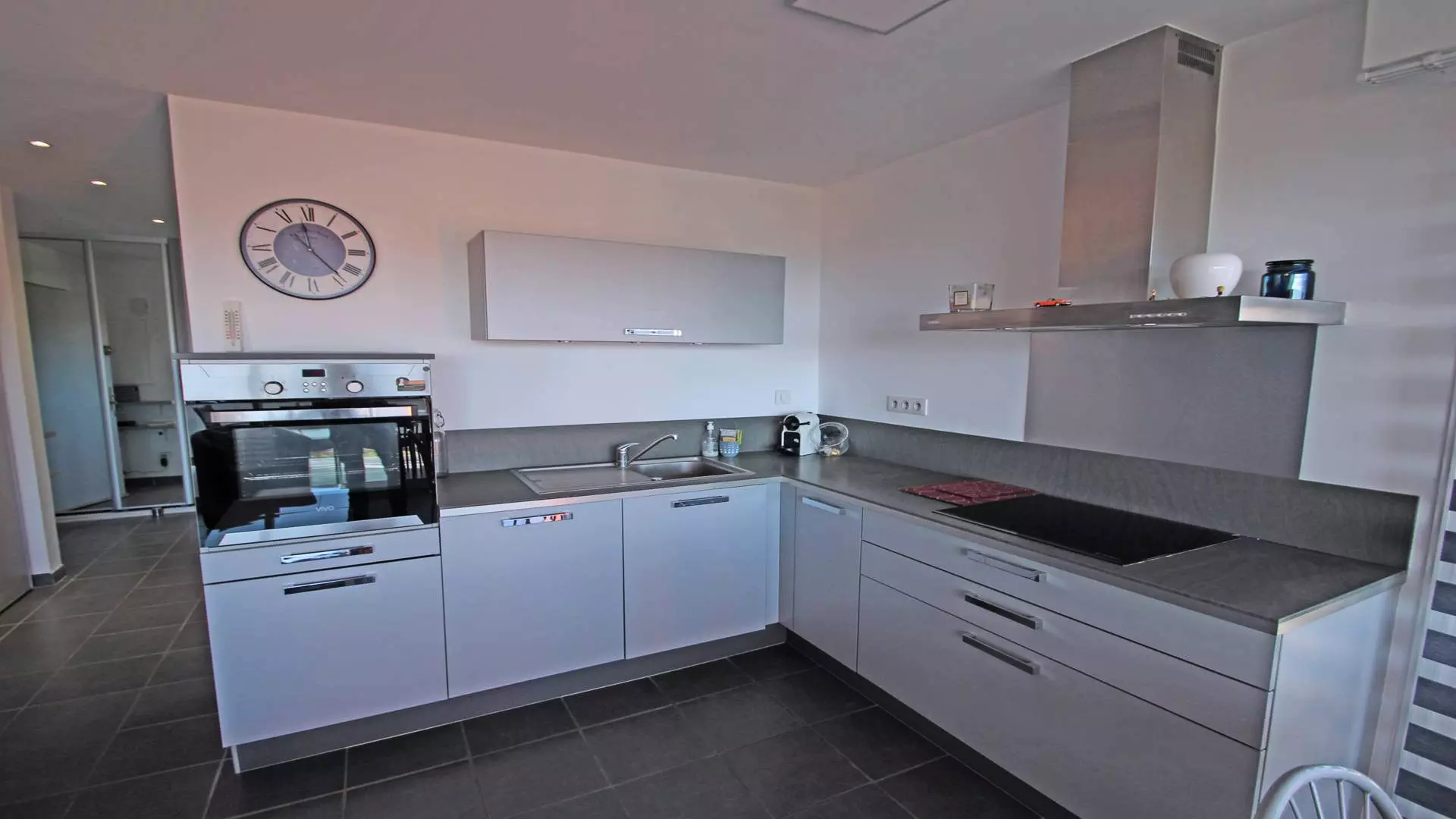 - Air-conditioned main room with lounge: sofa, flat-screen TV and open-plan fitted kitchen with dining area: refrigerator, oven, 4-burner hob, toaster, Nespresso coffee maker, etc. Terrace access