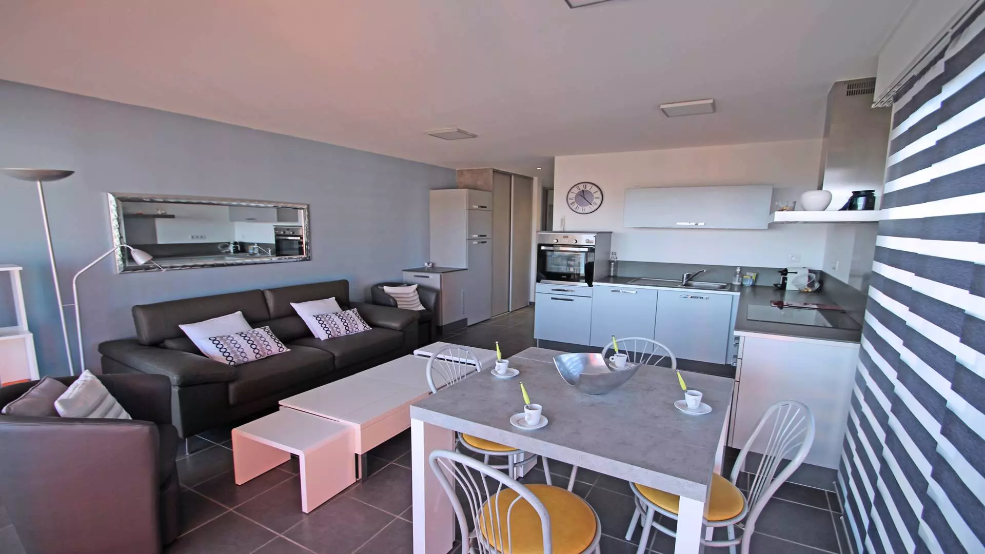 Superb 2-bedroom apartment in a residence with swimming pools and tennis courts, close to shops and approximately a 10-15 minute walk from the town center and the beach. Ideal for a family stay.